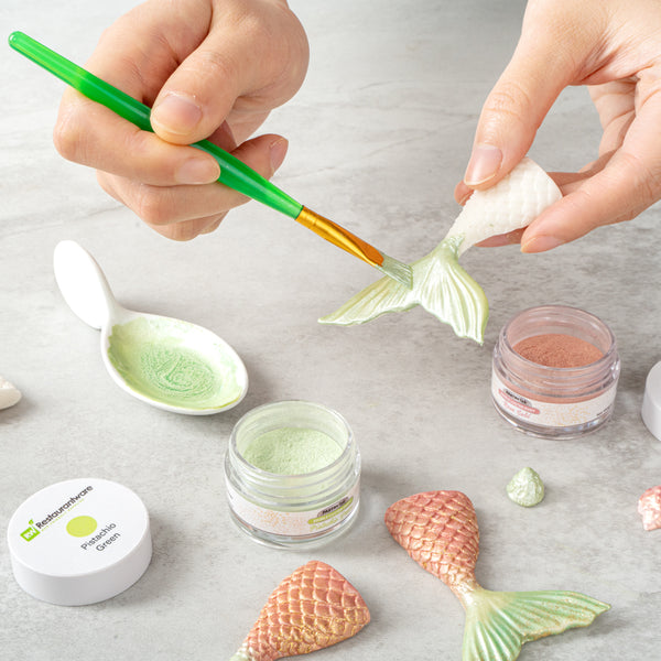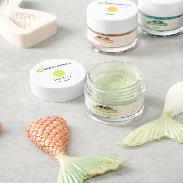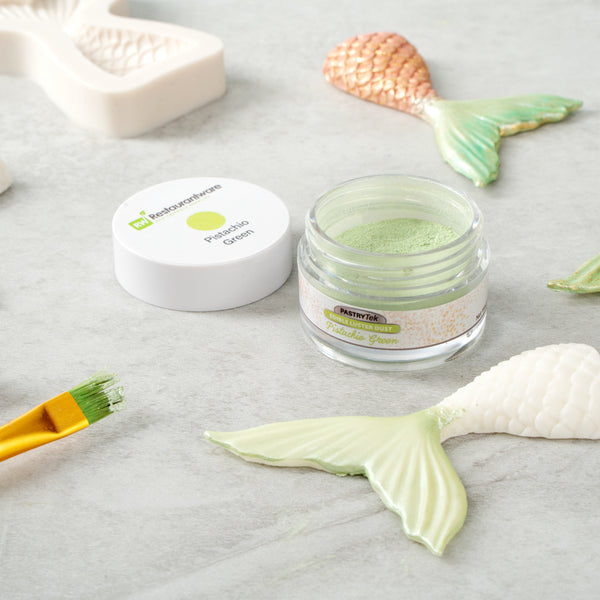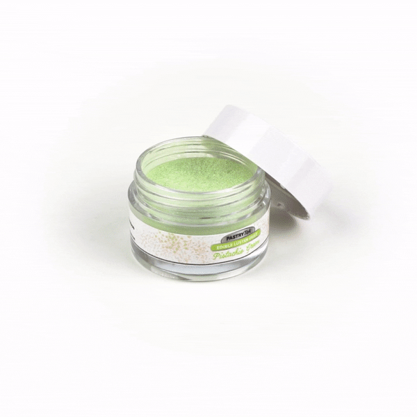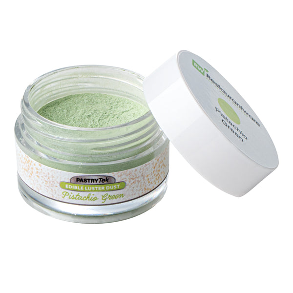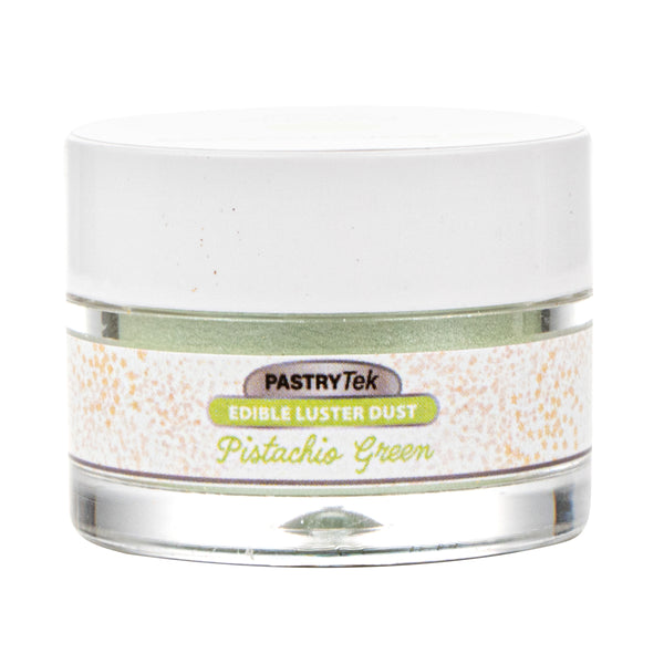 Leave a lasting impression on your guests with our Pastry Tek 5-gram Pistachio Green Edible Luster Dust. Consisting of kosher-certified and FDA-approved ingredients, this edible glitter is perfect to use in all types of foods and beverages. This luster dust has a water-soluble composition to mix into wet recipes or brush onto dry treats. To avoid tampering and messy spills, this edible luster dust is equipped with a tamper-evident, inner protective seal. Featuring a pistachio green shimmer finish, this dessert glitter enhances the look of every cake or cookie. This food-grade food glitter has a capacity of 5 grams. Sold in a 1 count box. Store in a cool, dry place away from direct sunlight to preserve the quality of this cake glitter.