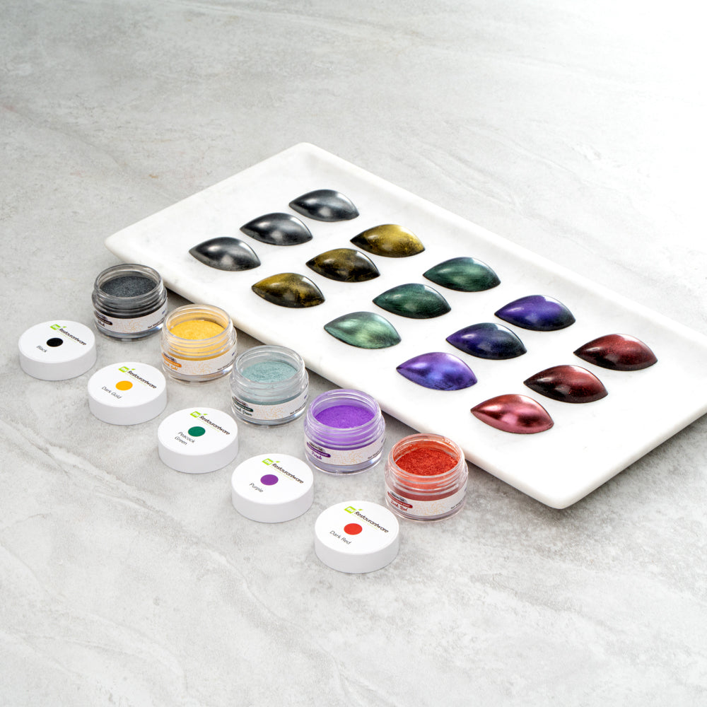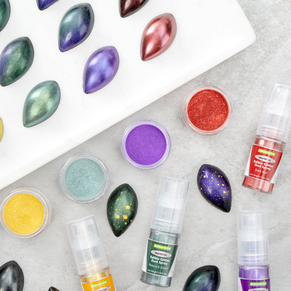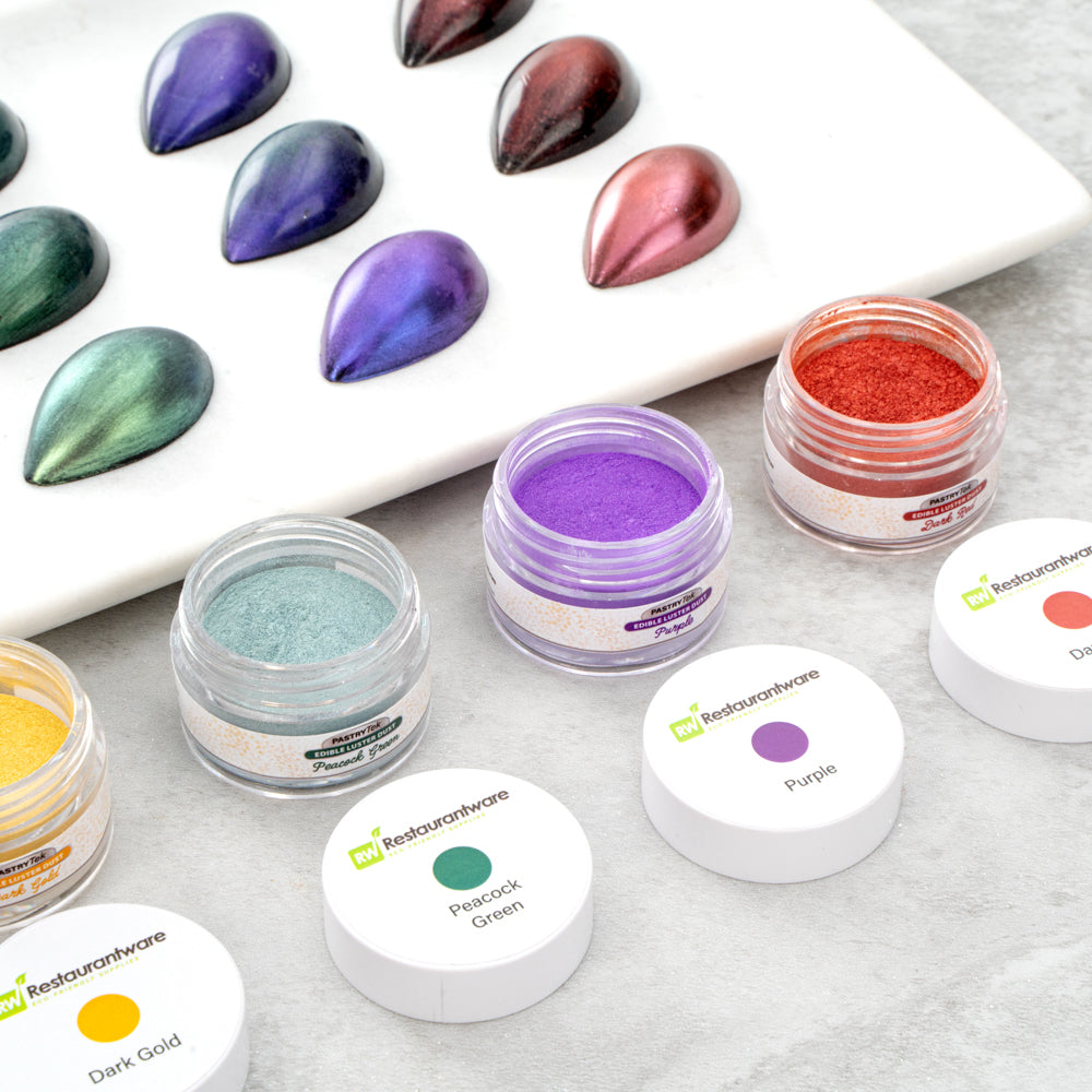 Enhance your culinary creations with dazzling color and shine. Pastry Tek Kosher-Certified Edible Luster Dust provides a safe, FDA-approved powder that ensures worry-free food preparation, making it an ideal choice for chefs seeking edible luster dust. Its water-soluble design seamlessly blends with sauces and soups, allowing for versatile use across various dishes, perfect for those searching for edible shimmer powder to elevate presentations. The inner protective seal maintains the dust's optimal quality and freshness, ensuring that each sprinkle of this pearl dust for cakes results in consistent color and texture. This 100% edible, iodine-free, vegan, lactose-free, and gluten-free dust is crafted with precision, offering a reliable solution for diverse culinary needs. With a 5-gram capacity, it brings brilliance to your dishes effortlessly. Each order includes 1 Pastry Tek Kosher-Certified Edible Luster Dust.