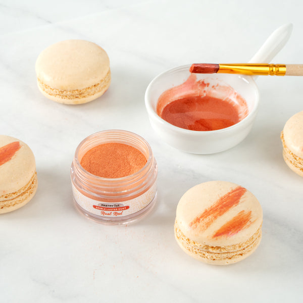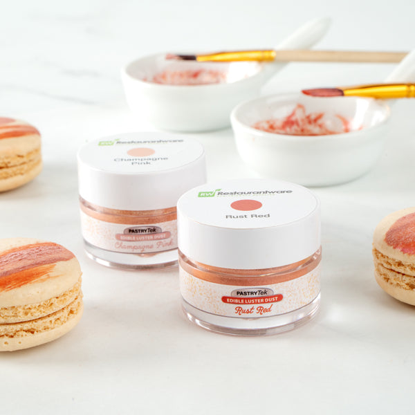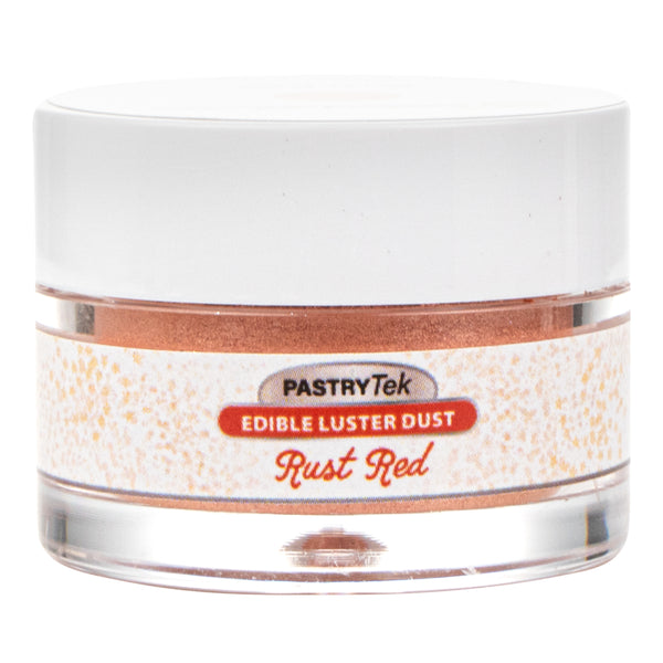 Add a gorgeous shimmer to cakes, chocolates, or cocktails using our Pastry Tek 5-gram Rust Red Edible Luster Dust. This luster dust is FDA-approved and kosher-certified to easily use on any hot or cold food. To prevent altering the taste of your treats or drinks, this edible red luster dust is unflavored and food grade. This glitter drink dust is water-soluble to easily mold or blend into any pastry or drink. Constructed with a tamper-evident, inner protective seal, this cake dust avoids messes. This luster dust has a red shimmer finish for a vibrant touch to any pastry or beverage. This edible dusting powder has a 5-gram capacity. Sold in a 1 count box. To maintain its high quality, store in a cool, dry environment away from direct sunlight.