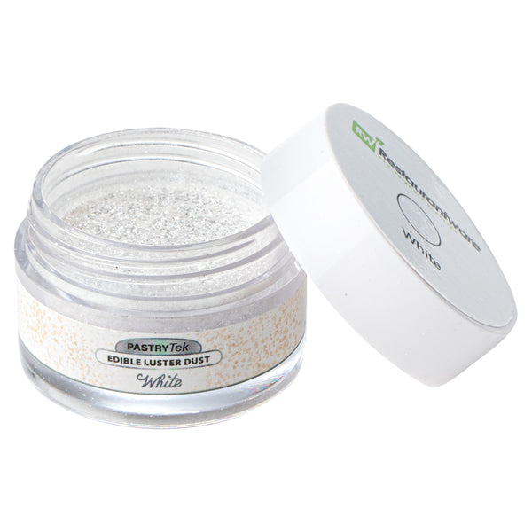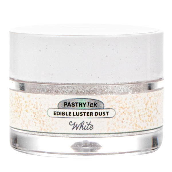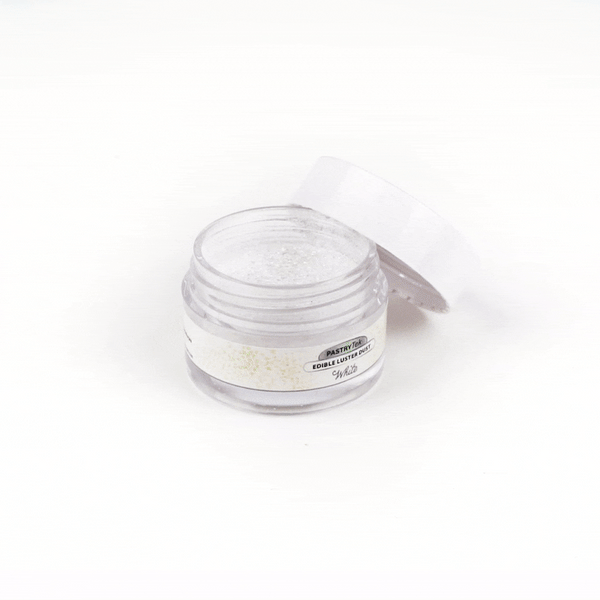 Add a touch of magic to any drink or pastry with our Pastry Tek 5-gram White Edible Luster Dust. This luster dust is FDA-approved and kosher-certified to safely use on any kind of cocktail or treat. To avoid losing the original flavor of your dish or cocktail, this edible luster dust is flavorless. For worry-free decorating, this white luster dust is easily water-soluble to dissolve into drinks or paint onto cake surfaces. Constructed with a tamper-evident, inner protective seal, this cake dust stays secure to maintain optimal quality. This luster dust has a white shimmer finish that suits all kinds of dishes or beverages. This edible dusting powder has a 5-gram capacity. Sold in a 1 count box. To maintain its high quality, store in a cool, dry environment away from direct sunlight.