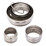 Bake elegant cookies with our Pastry Tek 6-Piece Double-Sided Metal Fluted Round Cookie Cutter Set. This round cookie cutter set is designed to be fluted on one side to make cookies with grooved edges, while the other side is plain to make classic cookie shapes. With six individual pieces included, this fluted cookie cutter set comes in different sizes for creating large or small butter cookies, sugar cookies, or chocolate chip cookies. This set of nesting double-sided cookie cutters are linked together by a removable metal ring for easy storage and to prevent cutters from getting lost. Constructed from high-quality metal, this set of circle cookie cutters can cut into thick doughs or other foods. This food cutter set is great for bakeries, restaurants, and catering businesses. From smallest to largest, the diameters of the cutters are as follows: 2.04 inches, 2.56 inches, 2.95 inches, 3.46 inches, 4.05 inches, and 4.52 inches. Each 1 count box includes a set of 6 cookie cutters.