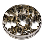 7-PIECE METAL LEAF COOKIE CUTTER SET IN ROUND TIN BOX
