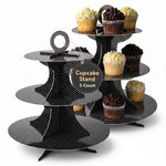 BLACK CARDBOARD CUPCAKE STAND - 3-TIER, WHITE POLKA DOTS