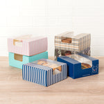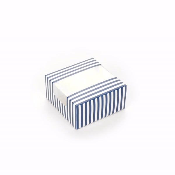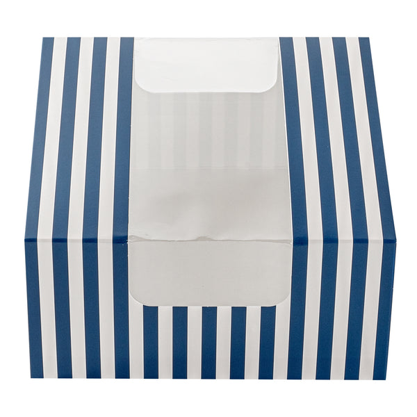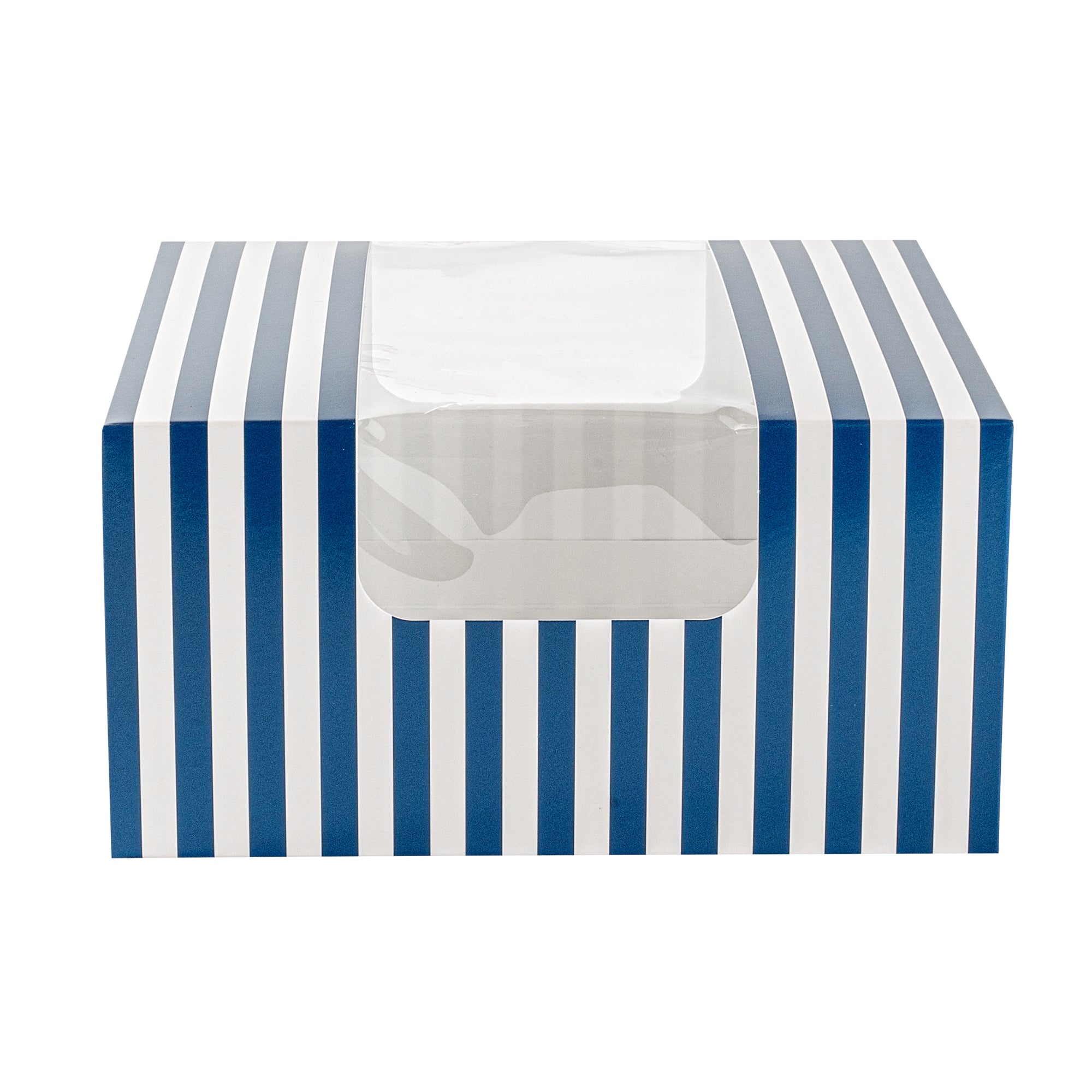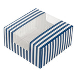 BLUE AND WHITE STRIPE PAPER PASTRY / CAKE BOX - WITH WINDOW