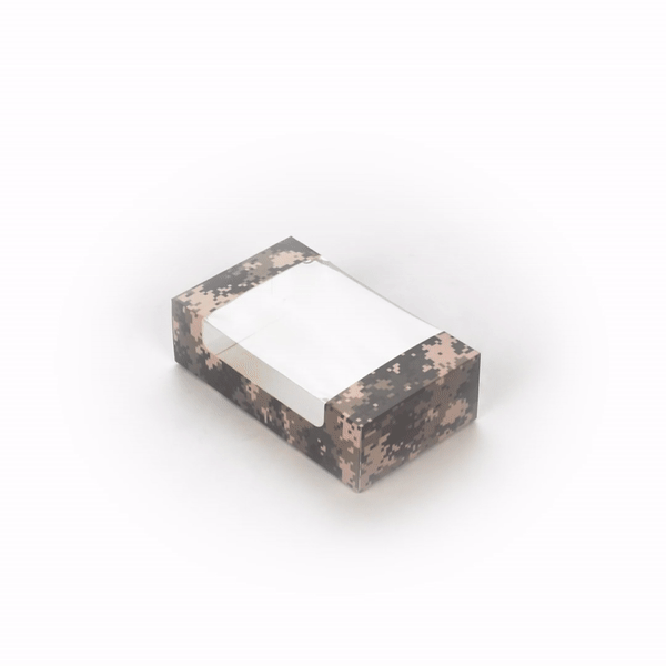 - Camouflage finish elevates the presentation and makes the packaging more attractive