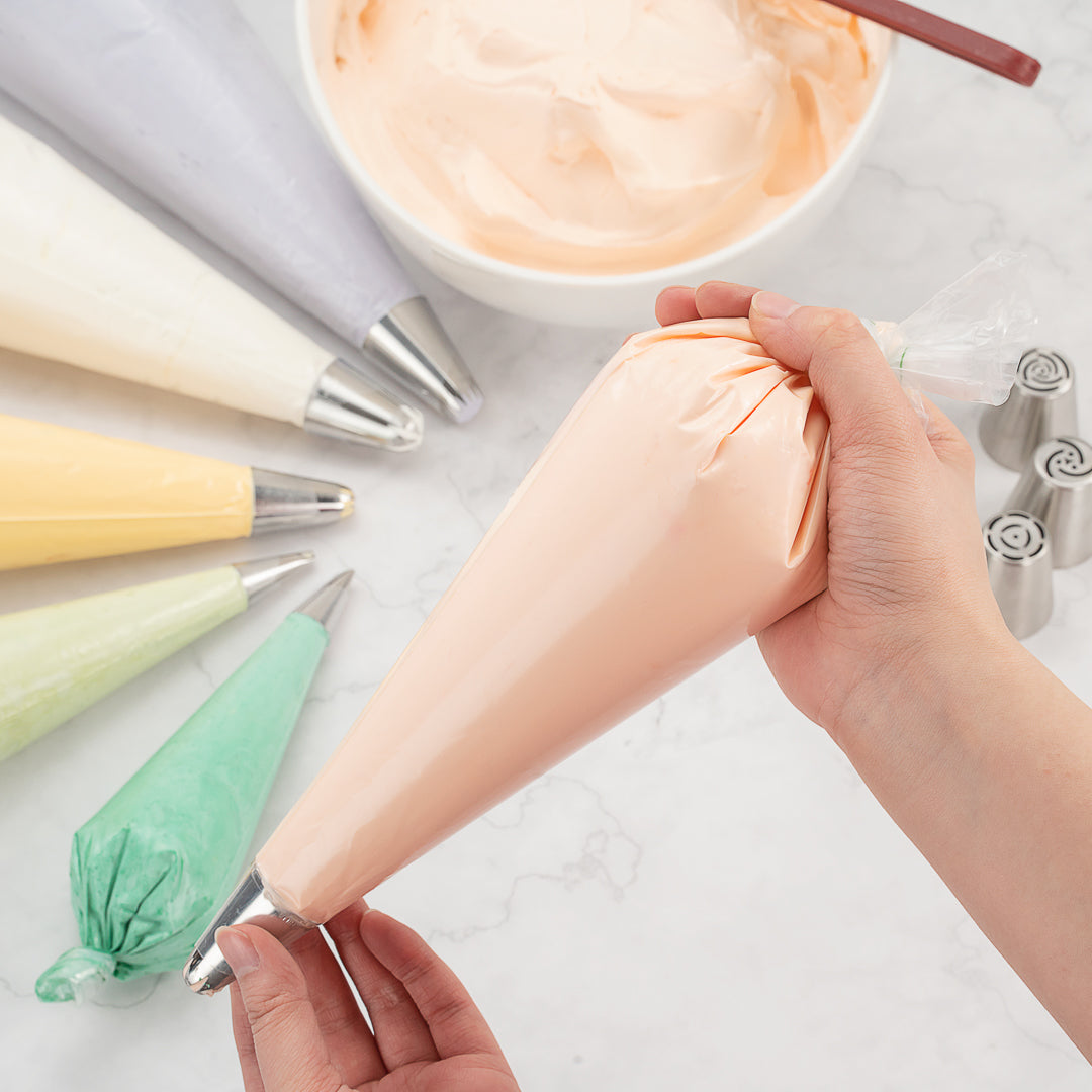 With a transparent finish, these decorating bags allow you to see the colors inside to avoid confusion while piping different types of icing. Plus, you can keep track of how much buttercream is left so you can refill them when running low.