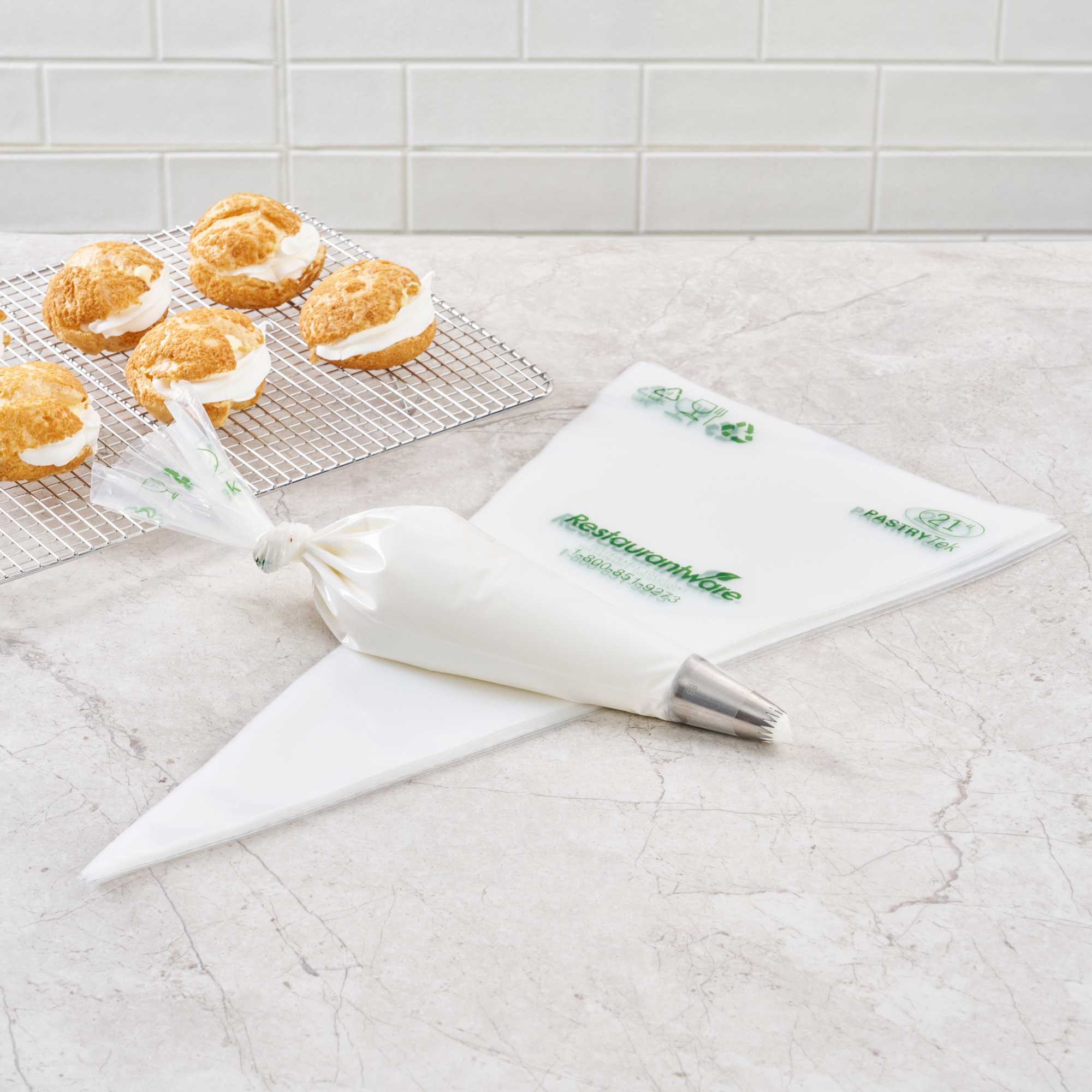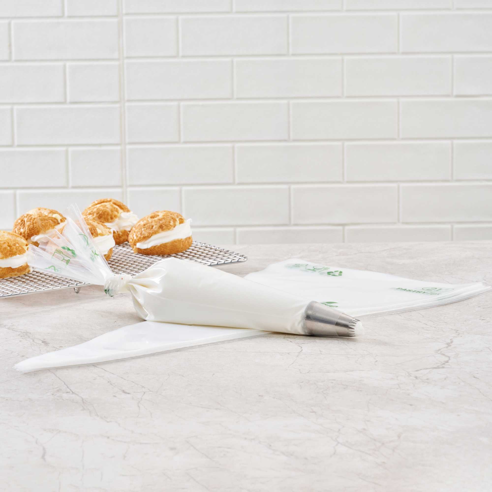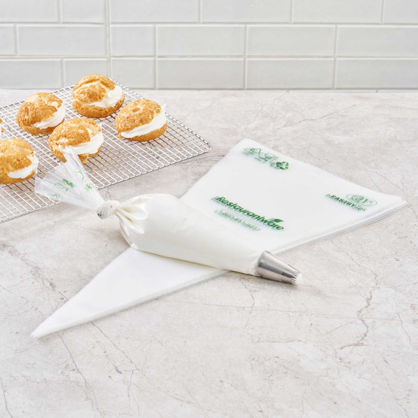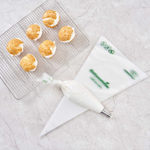Made from premium plastic, these icing bags are conveniently disposable for quick cleanup after decorating desserts. These decorating bags are green alternatives to traditional piping bags.