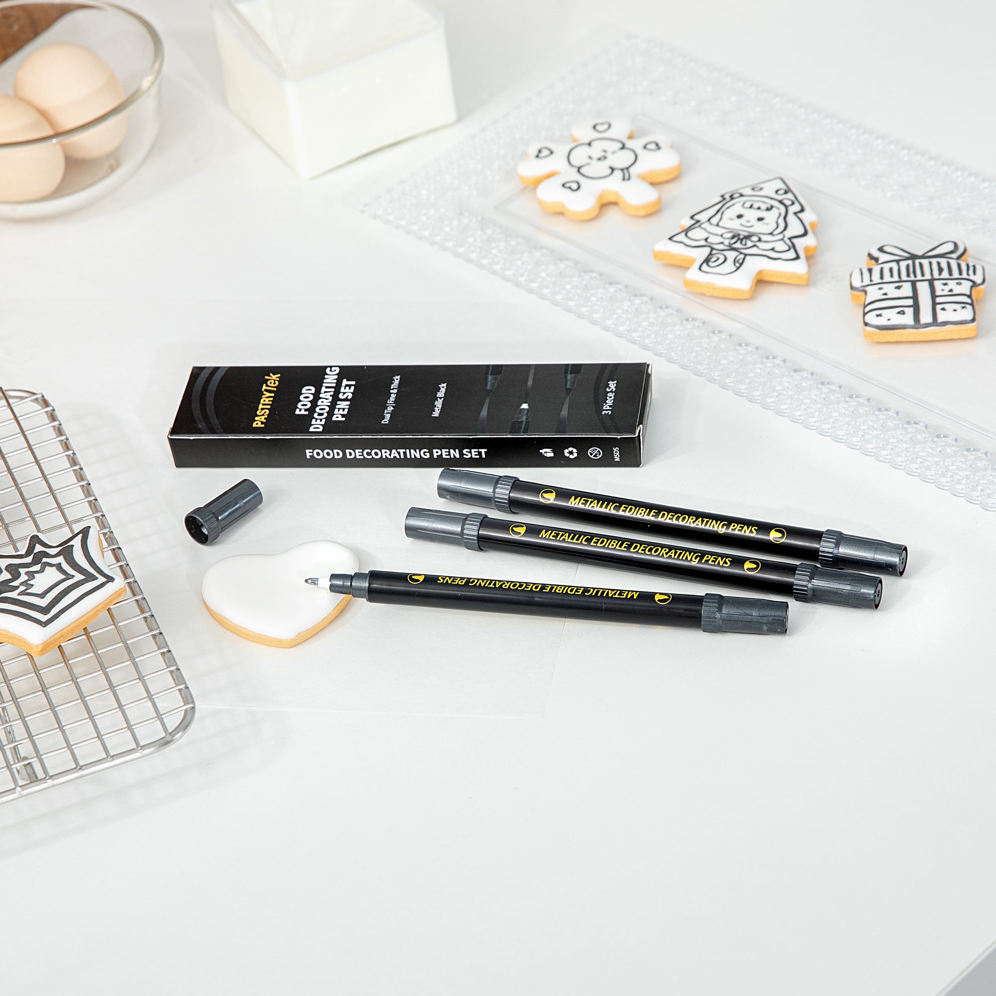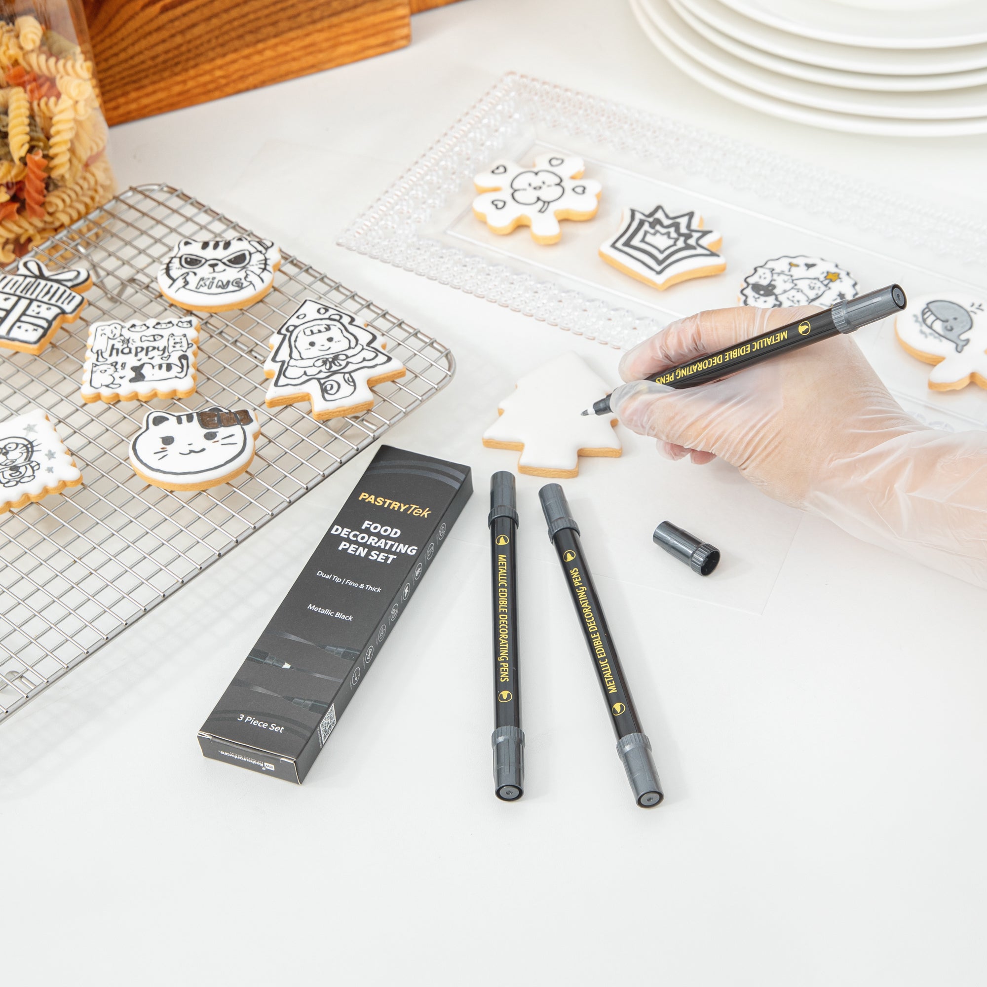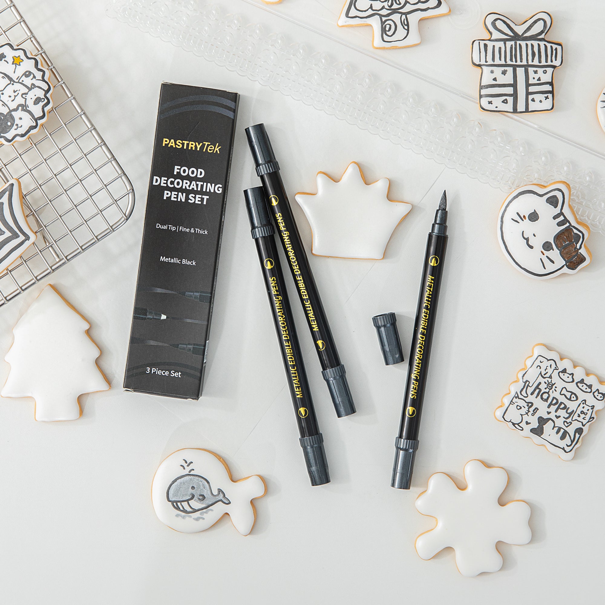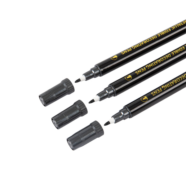 DUAL-TIP METALLIC 3 BLACK FOOD DECORATING PEN SET