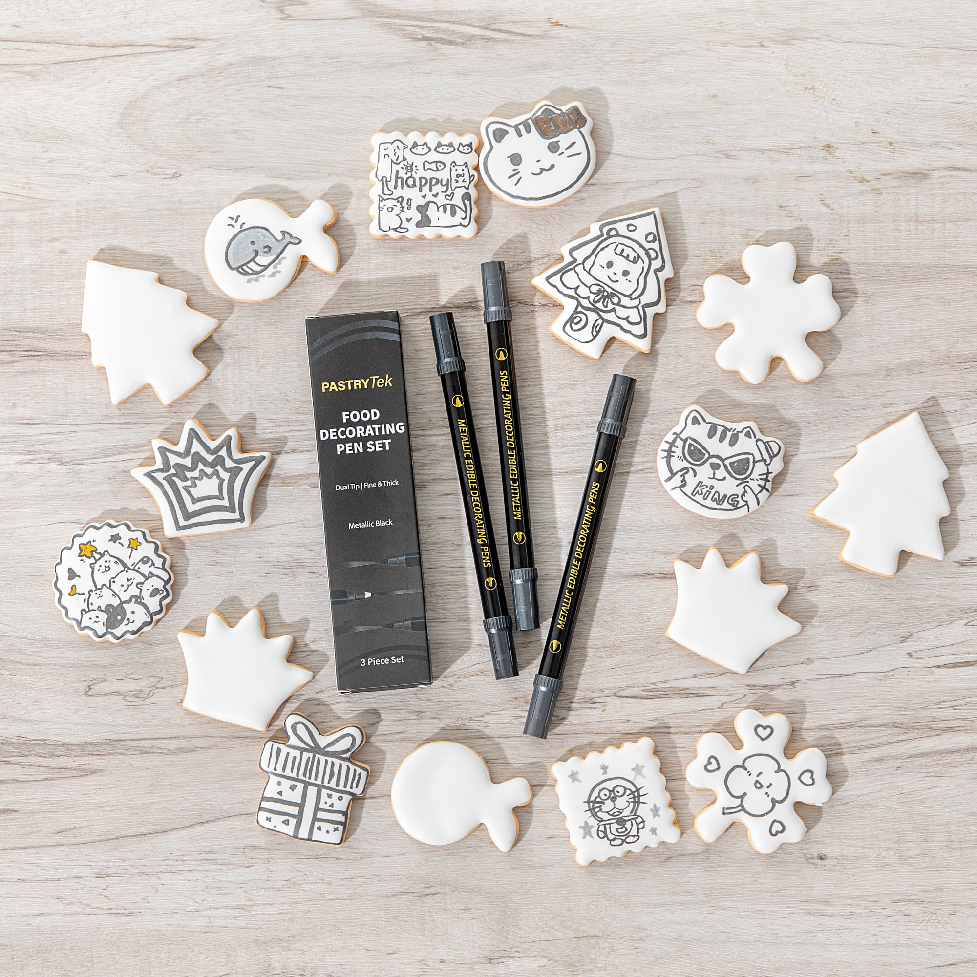 - Double-sided fine tip creates detailed cookie designs