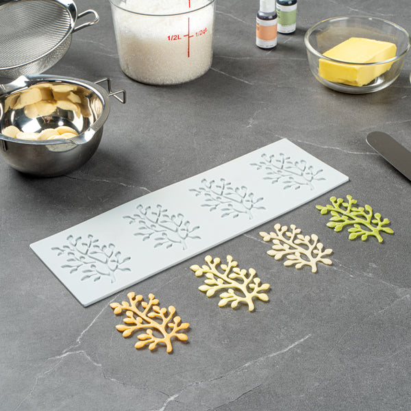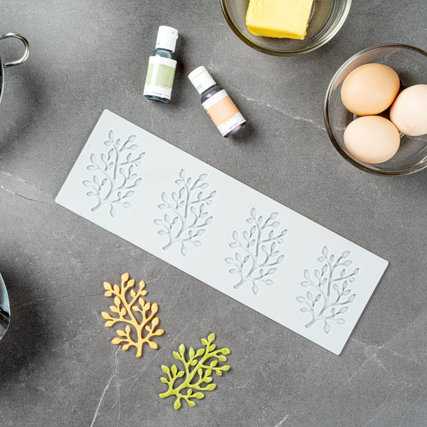 GRAY SILICONE BRANCH WITH LEAVES FONDANT IMPRESSION MAT