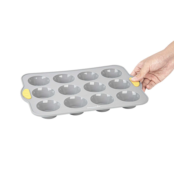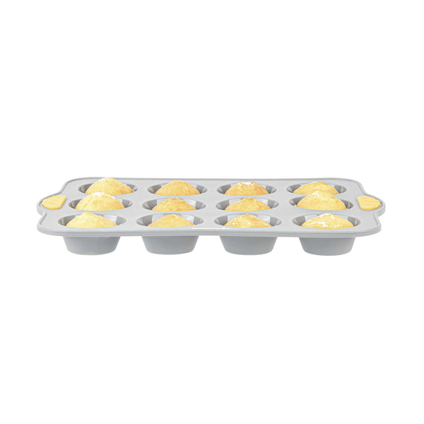 GRAY SILICONE MUFFIN / CUPCAKE PAN - NON-STICK, WITH HANDLES
