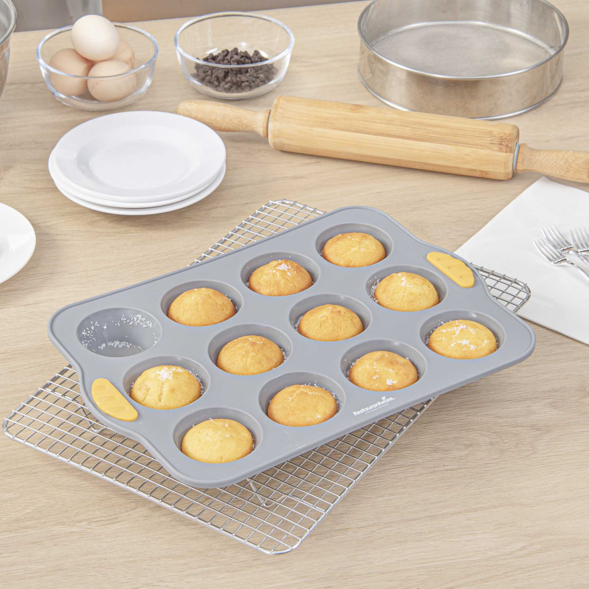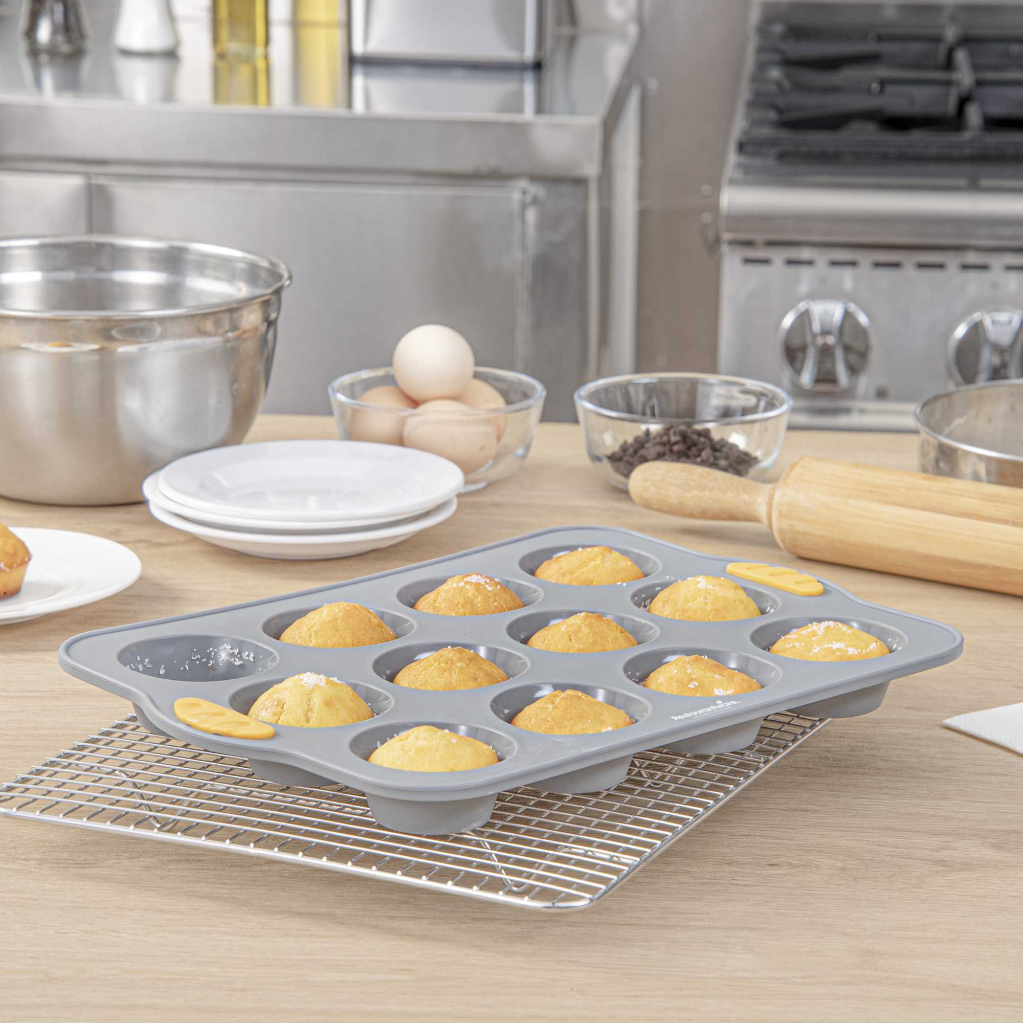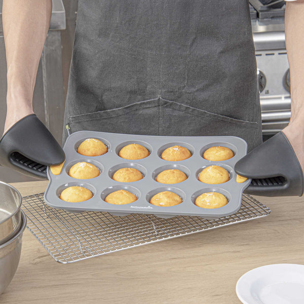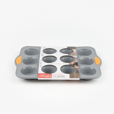 GRAY SILICONE MUFFIN / CUPCAKE PAN - NON-STICK, WITH HANDLES