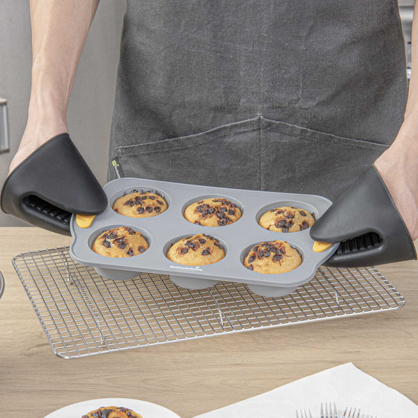 GRAY SILICONE MUFFIN / CUPCAKE PAN - NON-STICK, WITH HANDLES