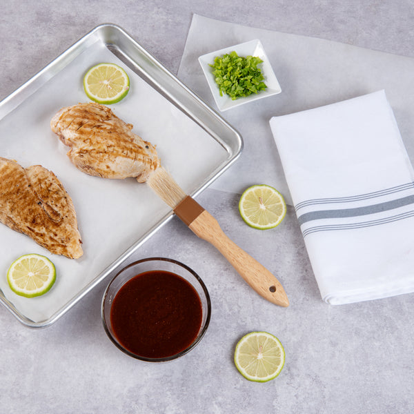Dip, coat, or glaze pies with thin egg washes to achieve the perfect pie crust with our Pastry Tek Natural Wood 1" Wide Pastry / Basting Brush. The soft, boar bristles of this baking brush are flexible and retain fluid to coat fluffy fresh baked pastries with butter. The polished rubber wood handle of this basting brush is sturdy and comfortable to hold, allowing you to coat pastries with precision. For convenient storage and access, this grill basting brush comes with a hanging hole. Featuring a plastic ferrule, this wood basting brush avoids the shedding of the bristles from the brush. This ergonomic marinating brush is durable for everyday use. For long-lasting durability, this oiling brush can be hand washed after every use. Measuring 8.5 inches in length by 1 inch in width, this boar bristle pastry brush is ideal for giving a perfect finishing touch to all your pastry and basting needs. Shipped in a 1 count box.