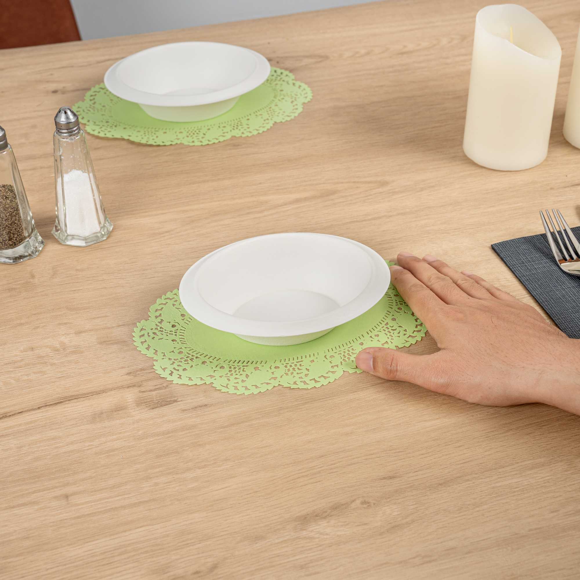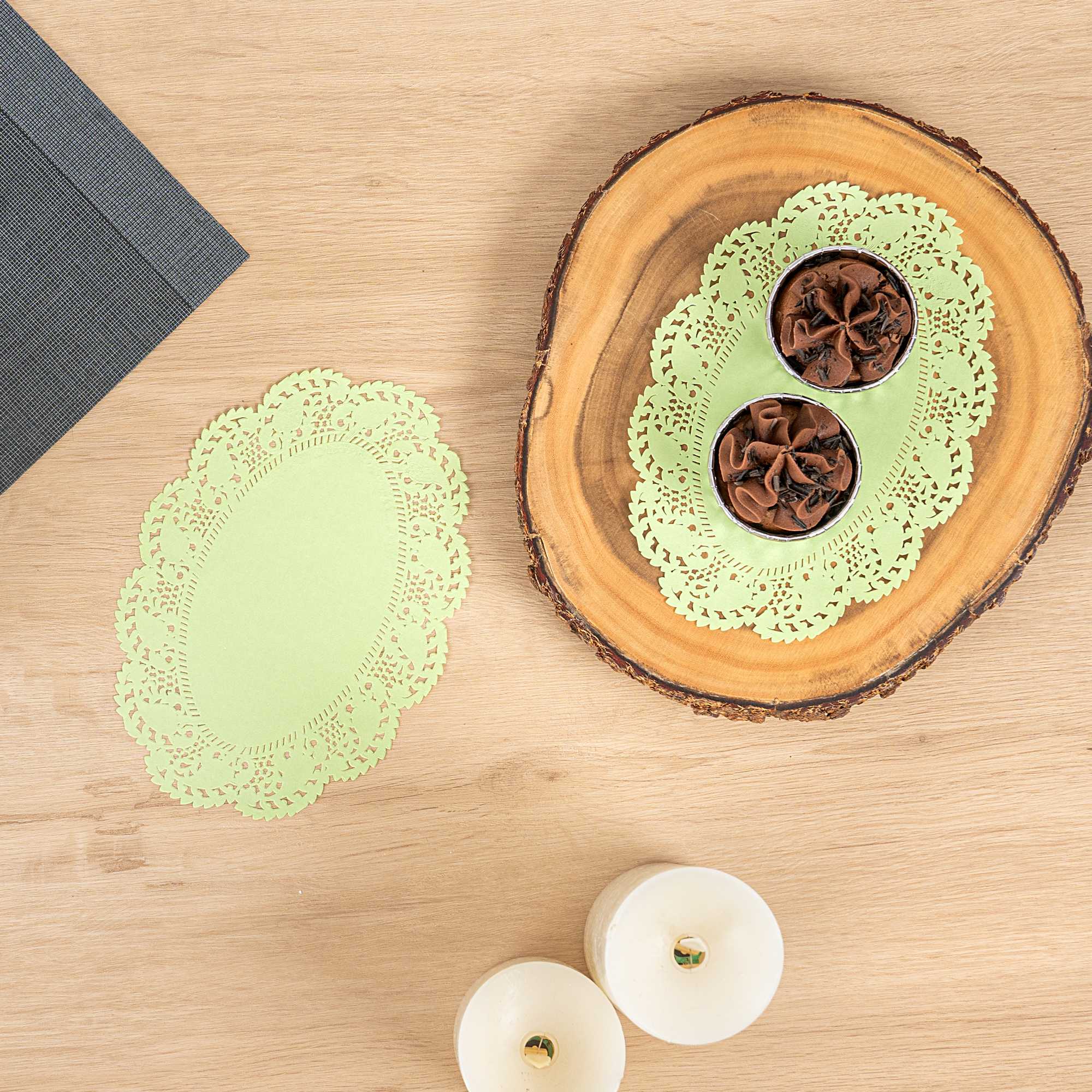 OVAL GREEN PAPER DOILIES - LACE -