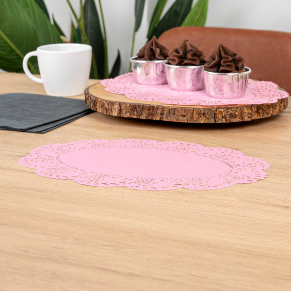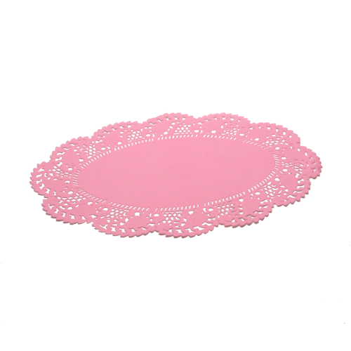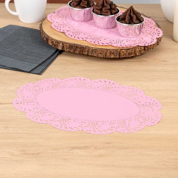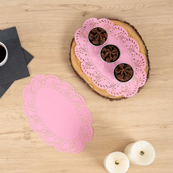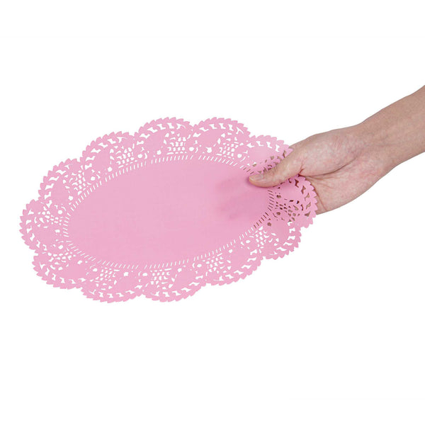 OVAL PINK PAPER DOILIES - LACE - 12 1/2" X 8 1/2" - 100 COUNT BOX