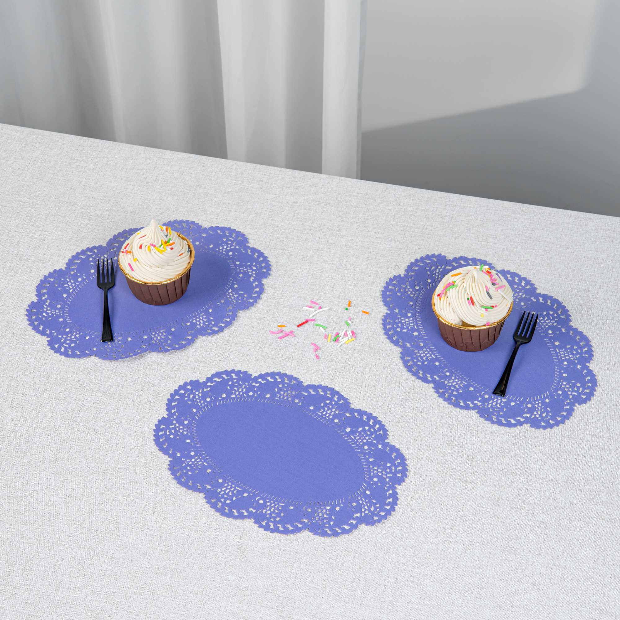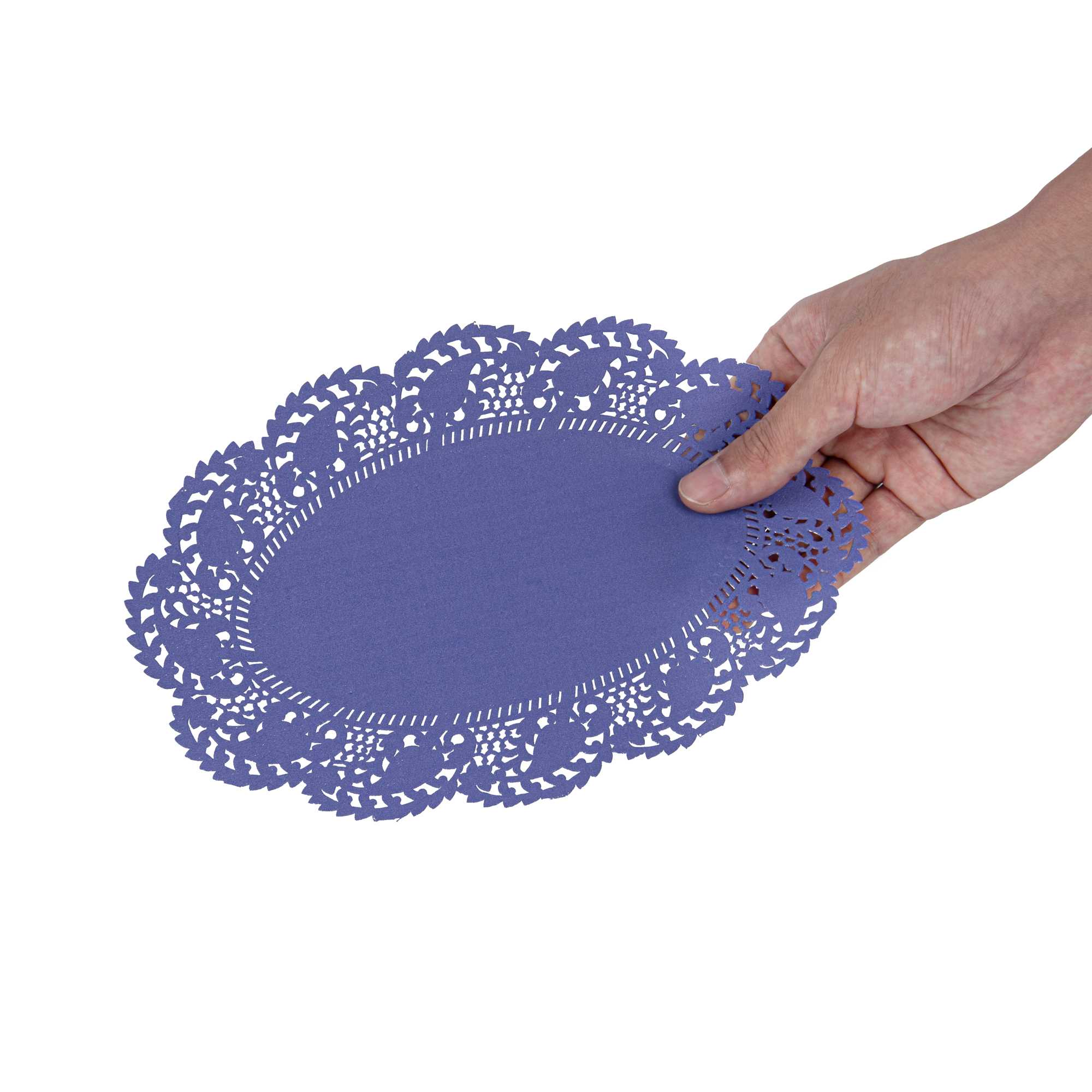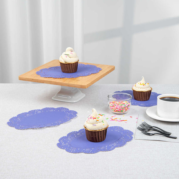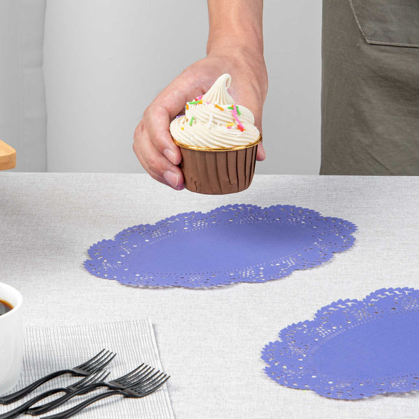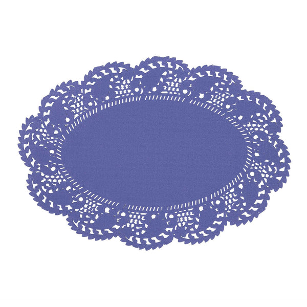 Elevate your dessert displays with our Pastry Tek Oval Purple Paper Doilies. Crafted from high-quality paper, these lace doilies provide durability while showcasing desserts at bakeries without tearing or losing their structural integrity. These lace-like details enhance the visual appeal of food presentations, serving as functional barriers that protect surfaces and absorb moisture. Designed with a pink colored finish, these versatile paper doilies seamlessly complement a wide range of table settings and themes, making them an ideal choice for various events and occasions. Additionally, these disposable small doilies eradicate the hassle of post-event cleanup, offering a convenient and time-saving solution for busy cafes and food establishments. Perfect for use under cupcakes, petit fours, macarons, and other small treats, these table doilies add an elegant touch to any dessert display. Measuring 9 inches in length by 6.5 inches in width, these colored paper doilies are the perfect size for your needs. Sold in a 4,000 count box.