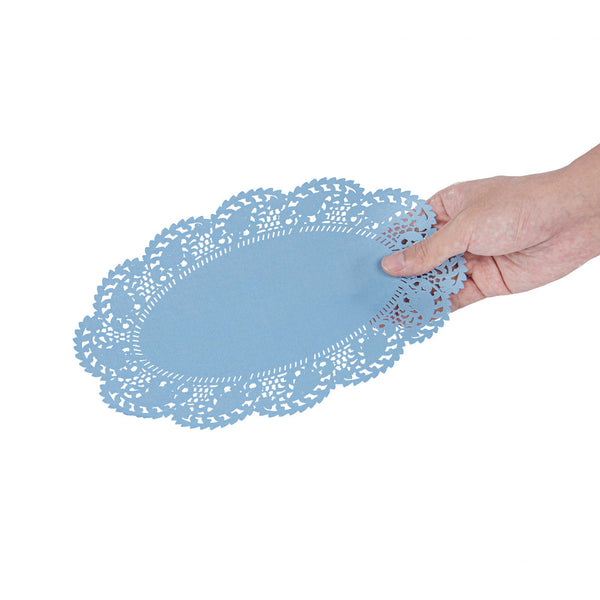 OVAL SKY BLUE PAPER DOILIES - LACE -
