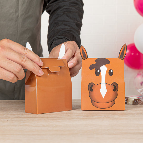 Package your party gifts in fun packaging with our Pastry Tek Paper Happy Pony Candy and Gift Boxes. Constructed of premium paper, these party favor containers are sturdy to hold ample amounts of candies. These party gift boxes are equipped with a resealable tab that tucks into a slit to securely enclose your delicious candies, truffles, or gifts. The brown finish of these horse gift boxes charmingly complements the horse design and enhances its overall look. These favor containers are shipped flat for space-saving storage and can be easily assembled before delivery. To reduce your carbon footprint at large events, these fun party packages are recyclable and commercially compostable. After large events, these candy gift boxes can be easily disposed of. Each biodegradable favor box measures 4 inches in length by 2 inches in width by 5 inches in height. Available for shipping in a 100 count box. This item will only degrade outside of the traditional solid waste stream.