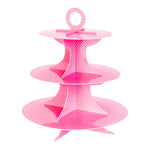 PINK CARDBOARD CUPCAKE STAND - 3-TIER, WHITE POLKA DOTS