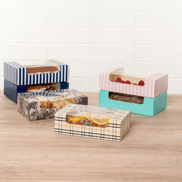 PLAID PAPER PASTRY / CAKE BOX - WITH WINDOW