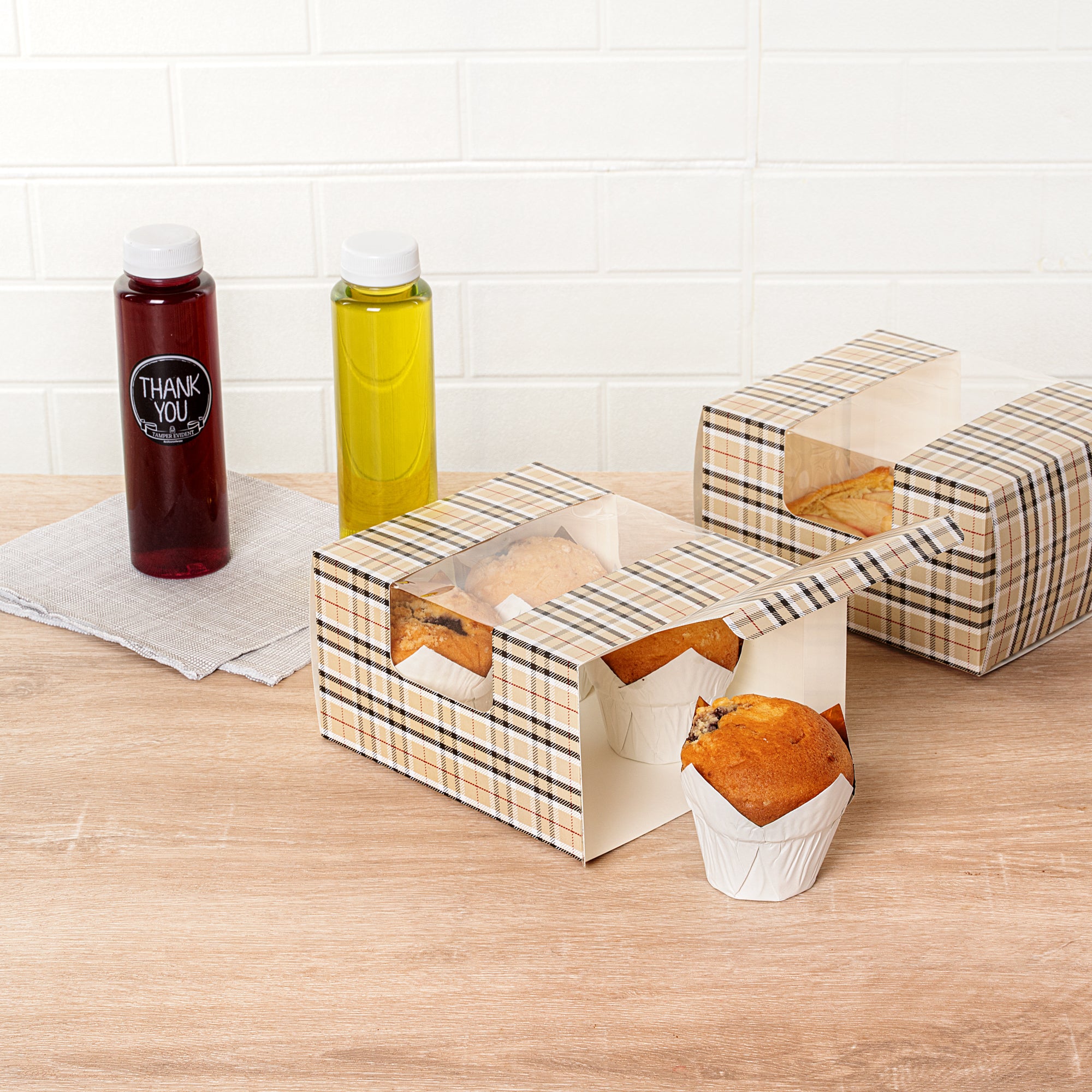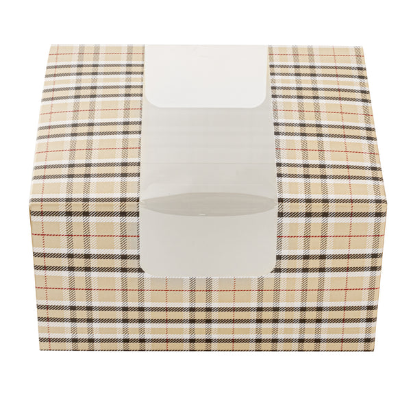 PLAID PAPER PASTRY / CAKE BOX - WITH WINDOW