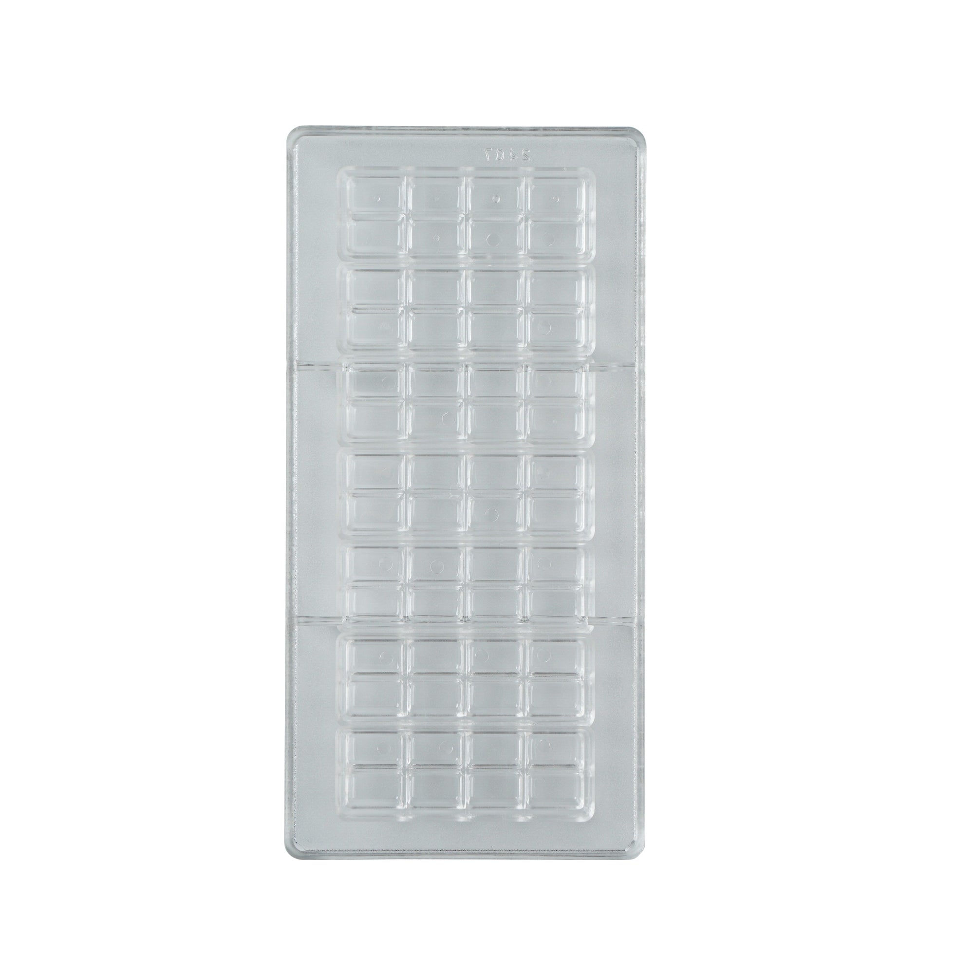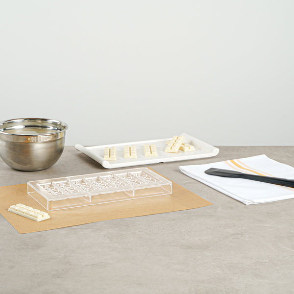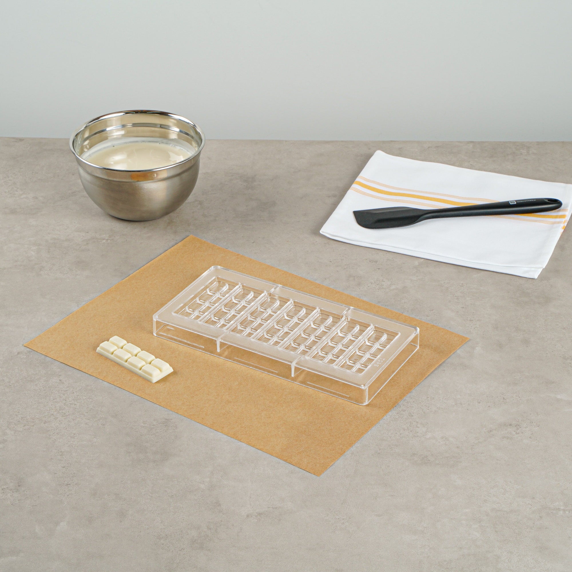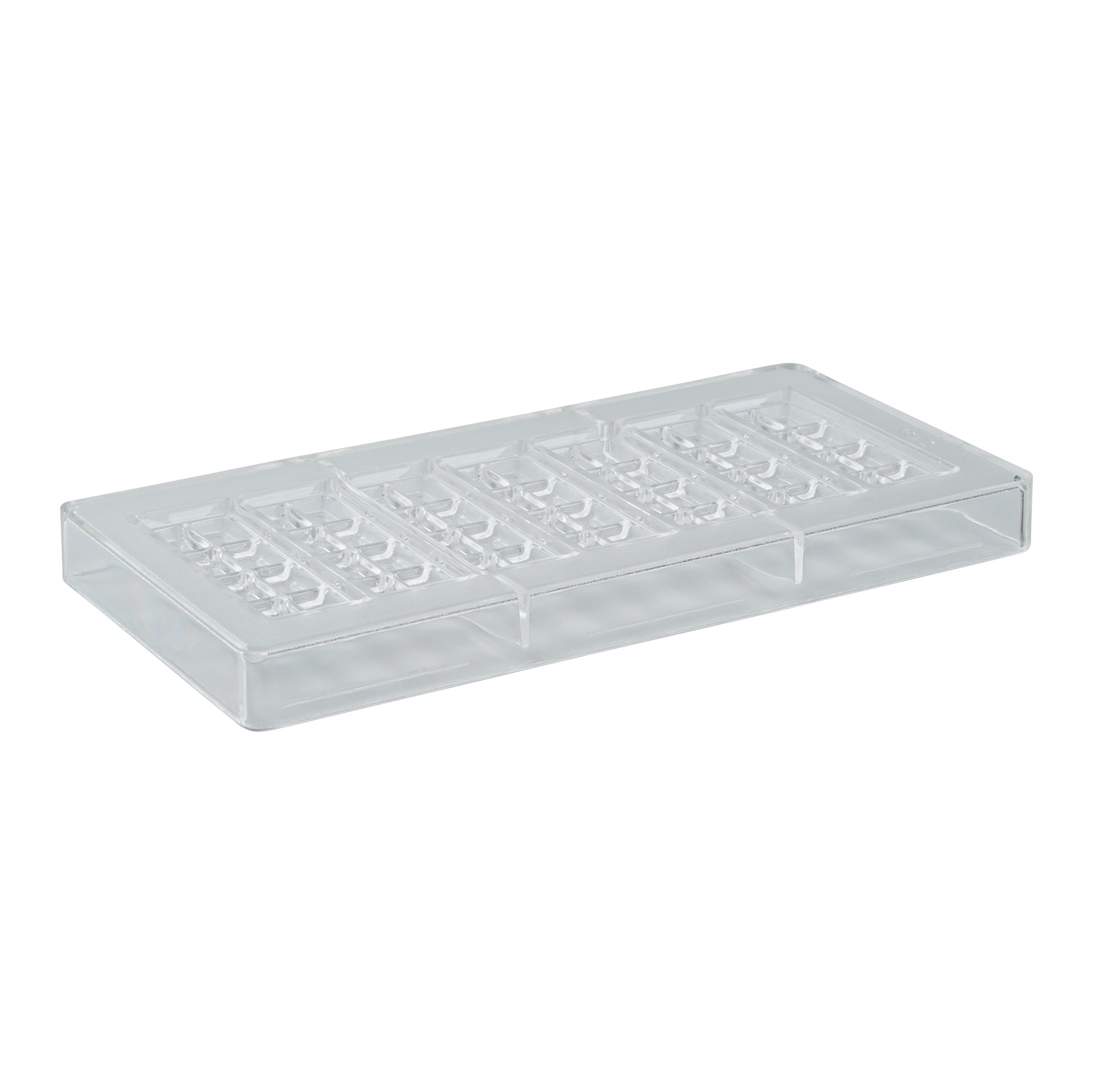 Unleash your culinary creativity with our Pastry Tek Polycarbonate Break-Apart Candy / Chocolate Mold. Crafted from durable polycarbonate, this clear mold is designed to withstand frequent use without cracking, making them a reliable choice for your bustling bakery or restaurant. Featuring 7 compartments, this rectangle chocolate mold is designed to create perfect candy bars, making them an essential addition to your candy-making or baking supplies. The clear finish of this candy bar mold provides a sleek aesthetic and makes it easy to monitor your creations as they set. This candy mold is freezer-safe, allowing you to cool and set your confections quickly and efficiently. Cleaning up after your culinary creativity is a breeze as this polycarbonate chocolate mold is dishwasher-safe, providing you with more time to focus on your next delicious creation. This break-apart mold measures 10.75 inches in length by 5.25 inches in width, fitting effortlessly into any kitchen space. Each cavity of this mold tray measures 3.6 inches in length by 1.2 inches in width by 0.5 inches in depth. Sold in a 1 count box.