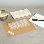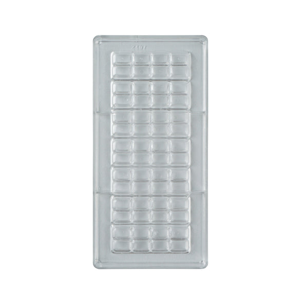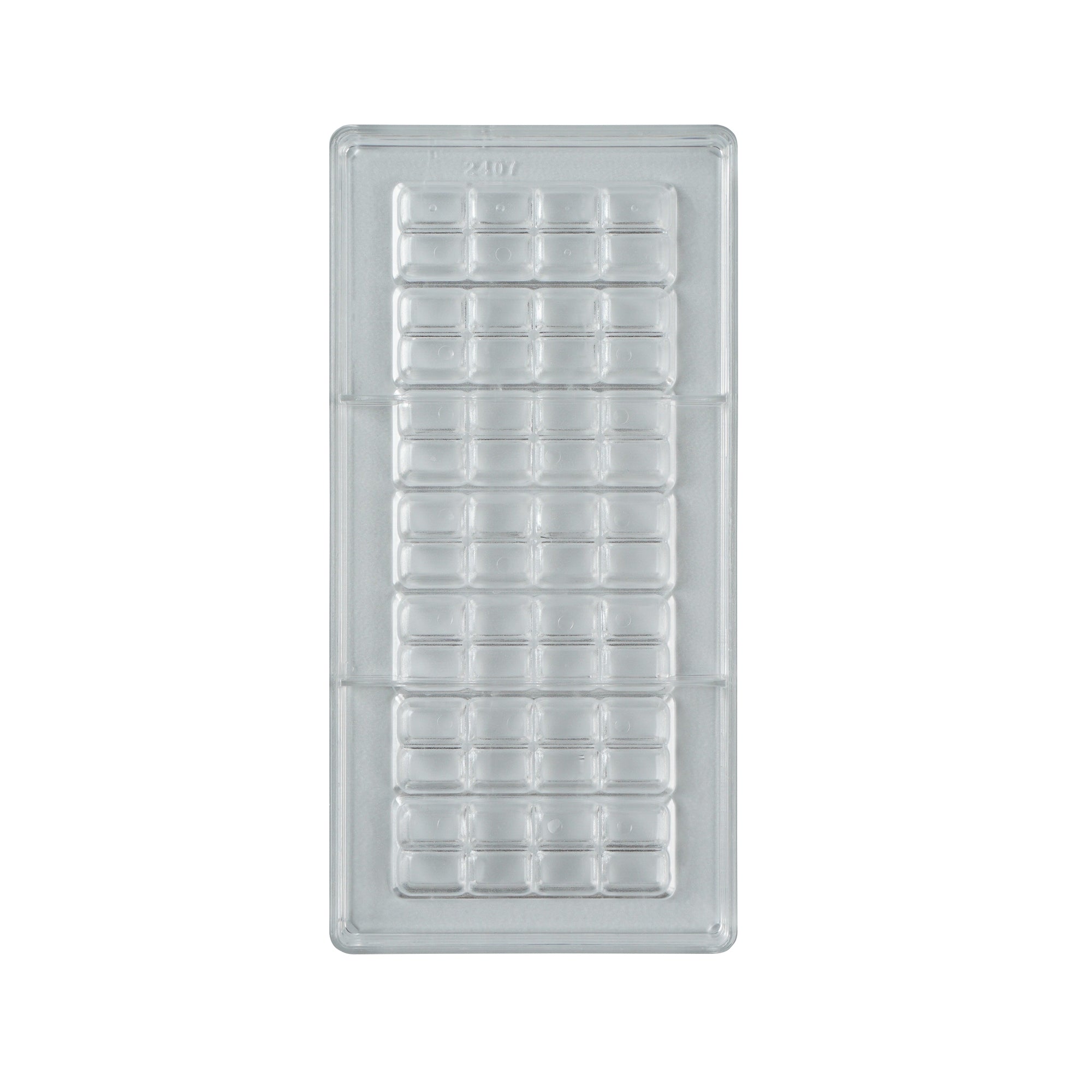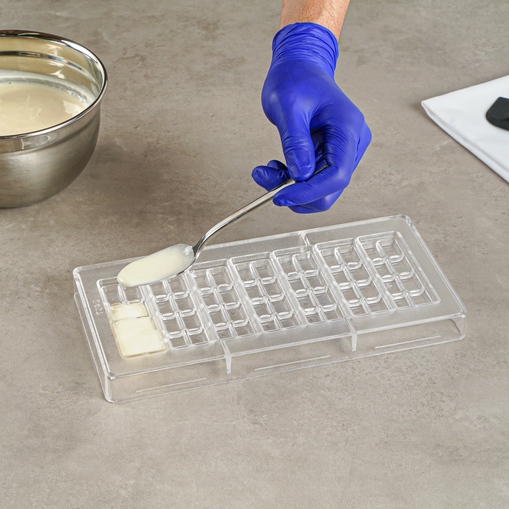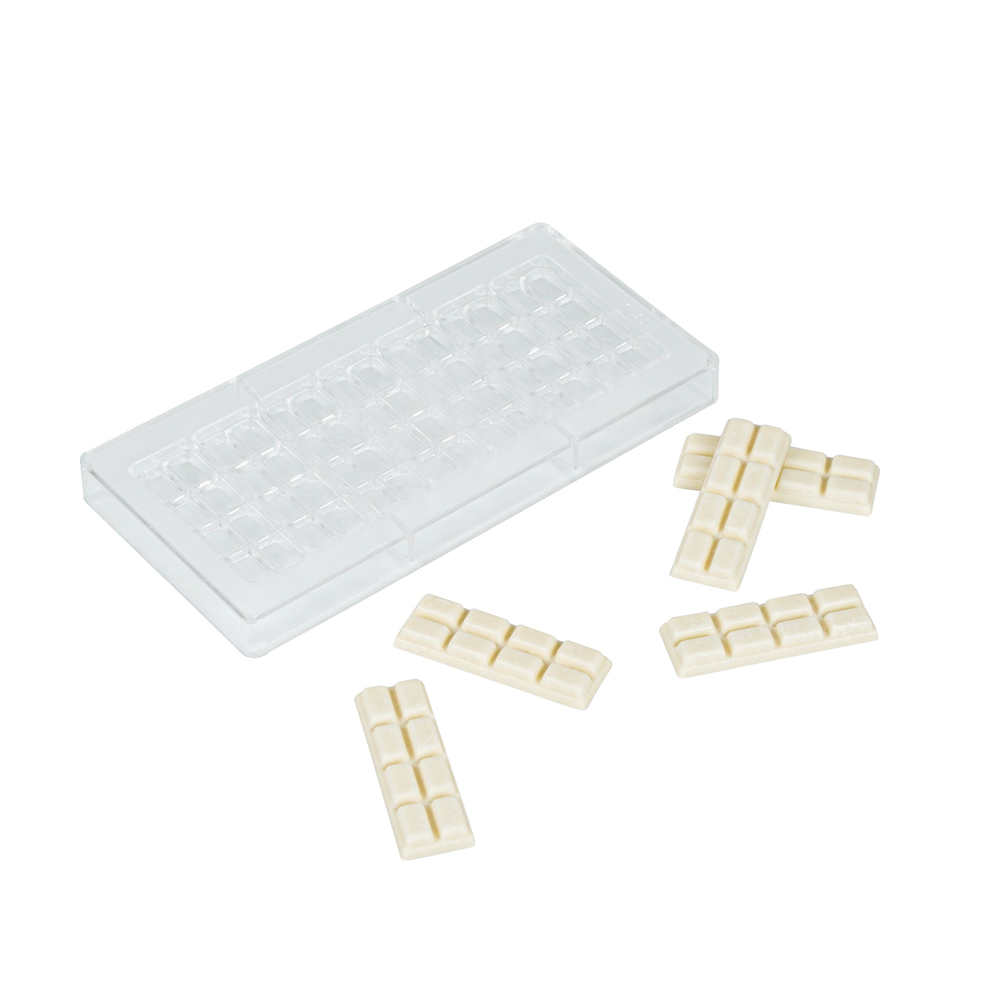 Unleash your culinary creativity with our Pastry Tek Polycarbonate Break-Apart Candy / Chocolate Mold. Crafted from durable polycarbonate, this clear mold is designed to withstand frequent use without cracking, making them a reliable choice for your bustling bakery or restaurant. Featuring 7 compartments, this rectangle chocolate mold is designed to create perfect candy bars, making them an essential addition to your candy-making or baking supplies. The clear finish of this candy bar mold provides a sleek aesthetic and makes it easy to monitor your creations as they set. This candy mold is freezer-safe, allowing you to cool and set your confections quickly and efficiently. Cleaning up after your culinary creativity is a breeze as this polycarbonate chocolate mold is dishwasher-safe, providing you with more time to focus on your next delicious creation. This break-apart mold measures 10.75 inches in length by 5.25 inches in width, fitting effortlessly into any kitchen space. Each cavity of this mold tray measures 3.6 inches in length by 1.2 inches in width by 0.5 inches in depth. Sold in a 1 count box.