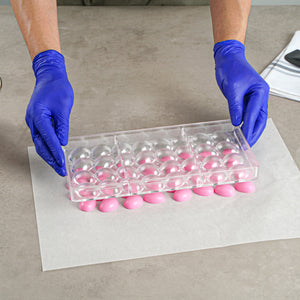 Unleash your creativity with our Pastry Tek Polycarbonate Egg Candy / Chocolate Molds. With 32 compartments, these chocolate molds allow you to produce large quantities of egg-shaped candies or chocolates in one go. These candy molds are designed with a clear finish, providing an easy way to monitor your creations as they set. Made from high-quality polycarbonate, these candy bar molds don't crack under pressure, ensuring long-lasting even under heavy use. These polycarbonate chocolate molds are freezer-safe, allowing you to speed up the setting process without any damage to the mold or the shape of your treats. For an easy cleanup, simply place these clear molds in the dishwasher-safe. Each cavity in these egg candy molds measures 1.3 inches in length by 1 inch in width by 0.5 inches in height. These polycarbonate chocolate molds measure 10.75 inches in length by 5.25 inches in width, perfect for any professional kitchen. Sold in a 10 count box.