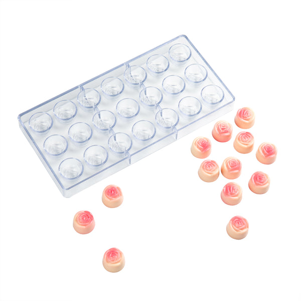 POLYCARBONATE ROSE CANDY / CHOCOLATE MOLD - 21-COMPARTMENT