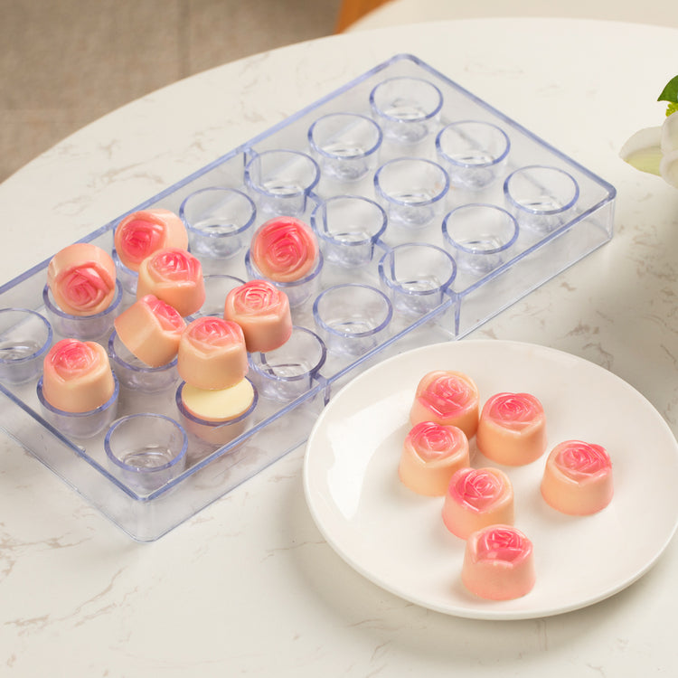 POLYCARBONATE ROSE CANDY / CHOCOLATE MOLD - 21-COMPARTMENT