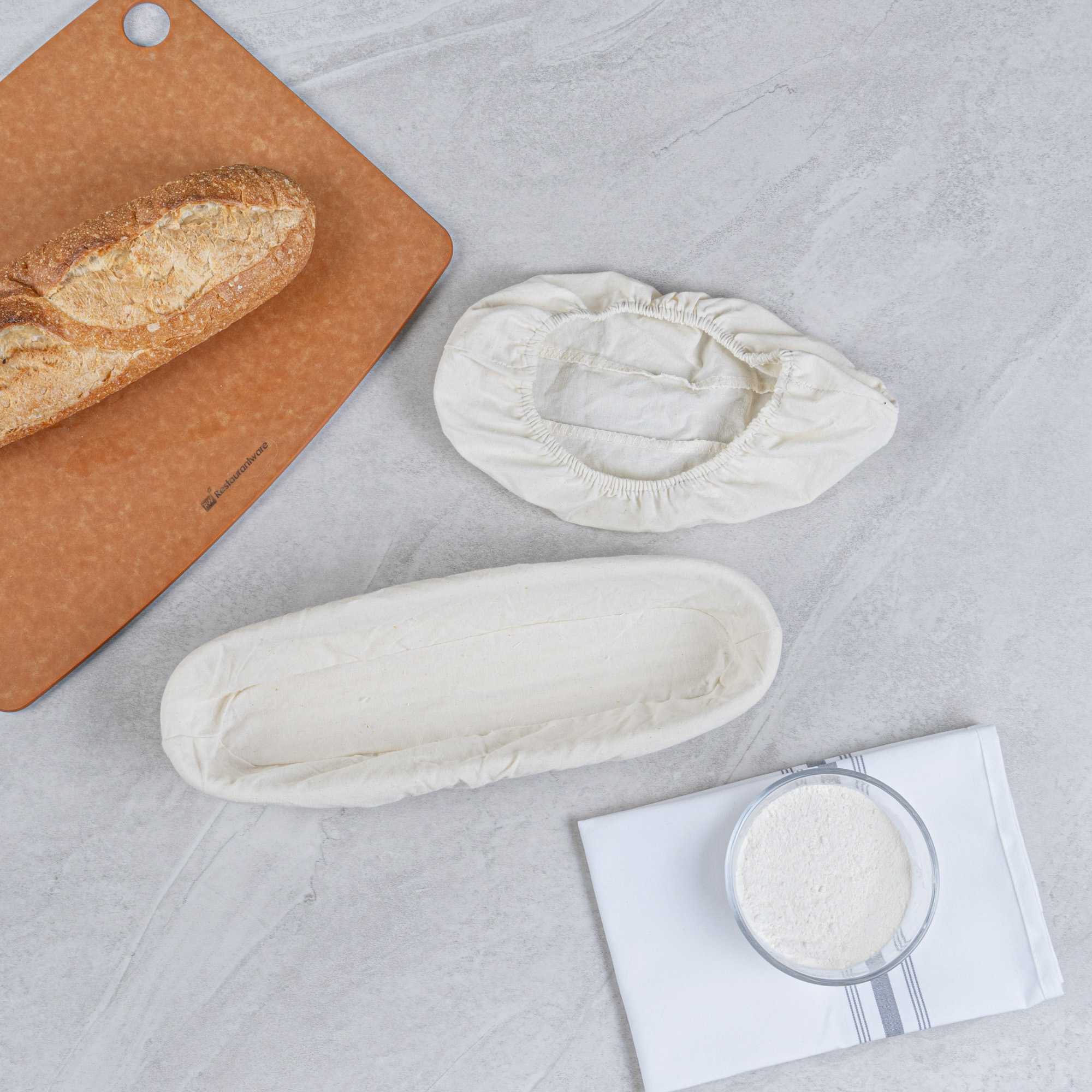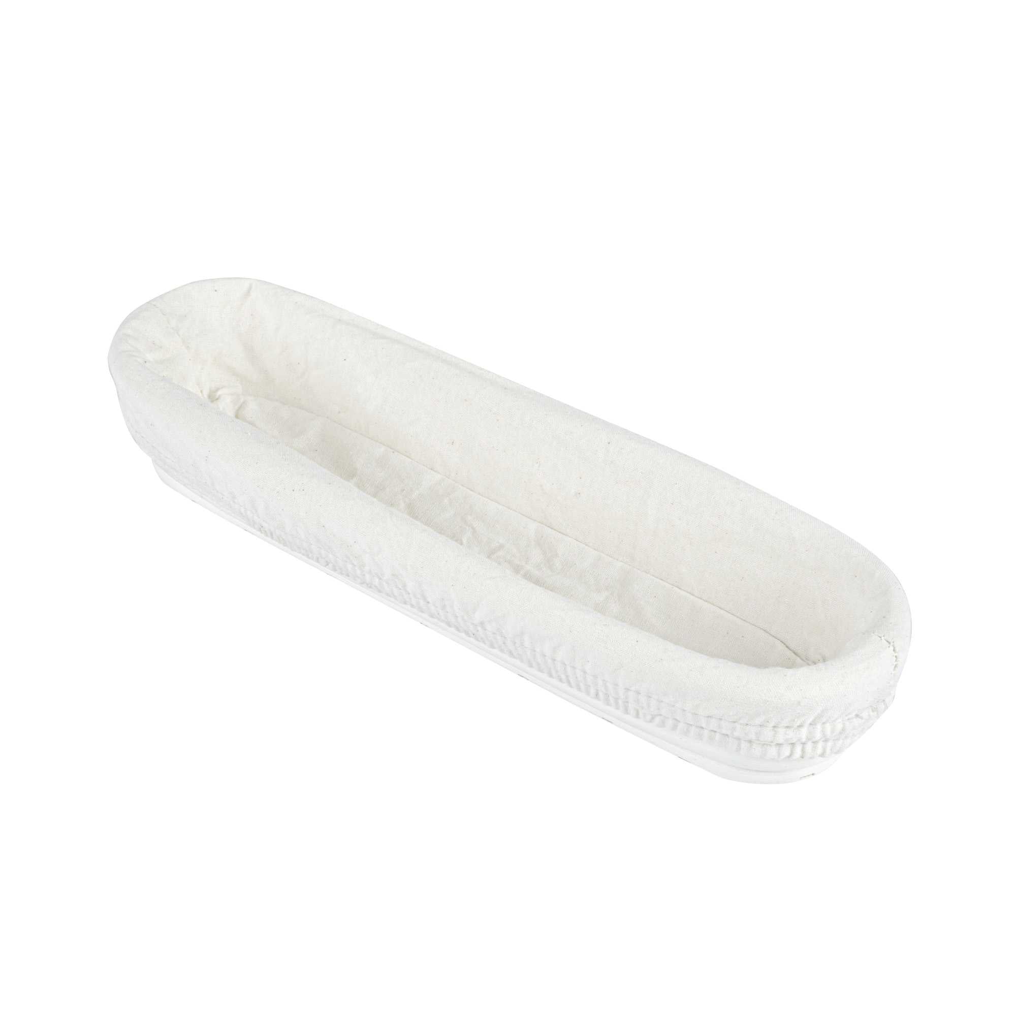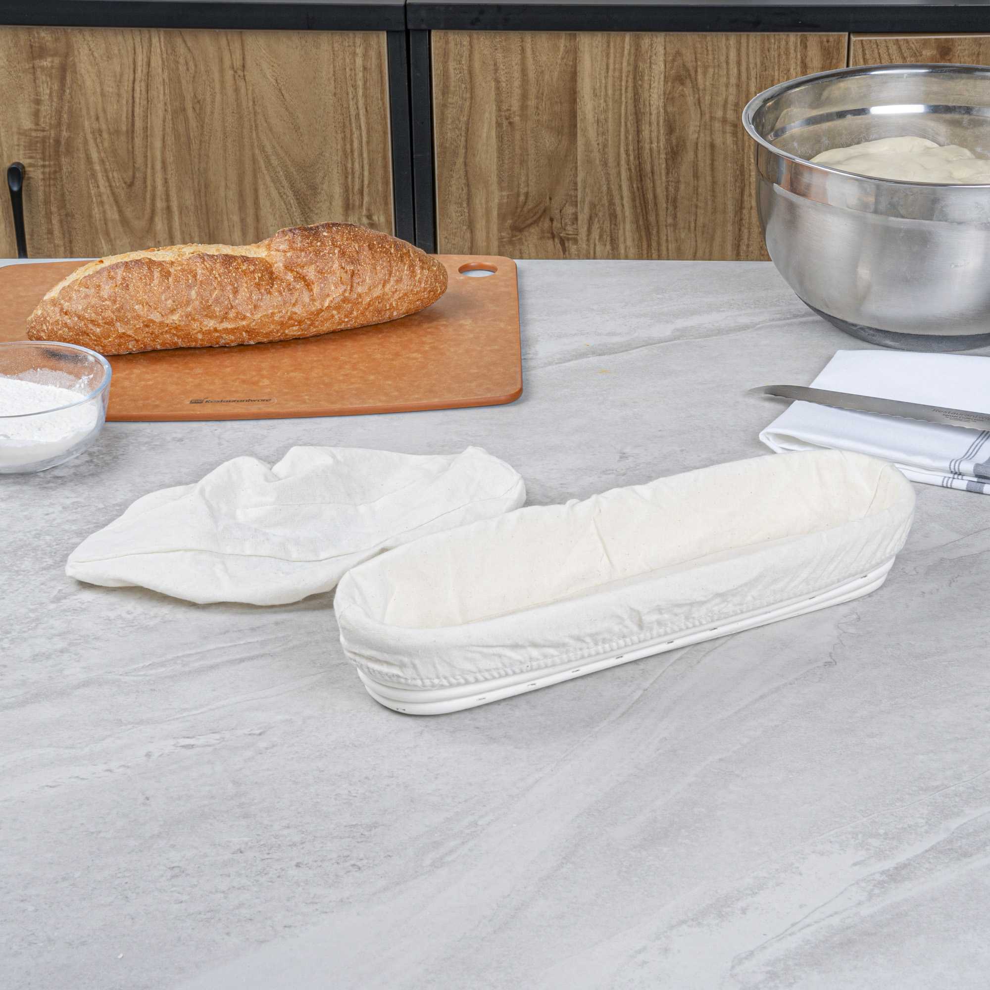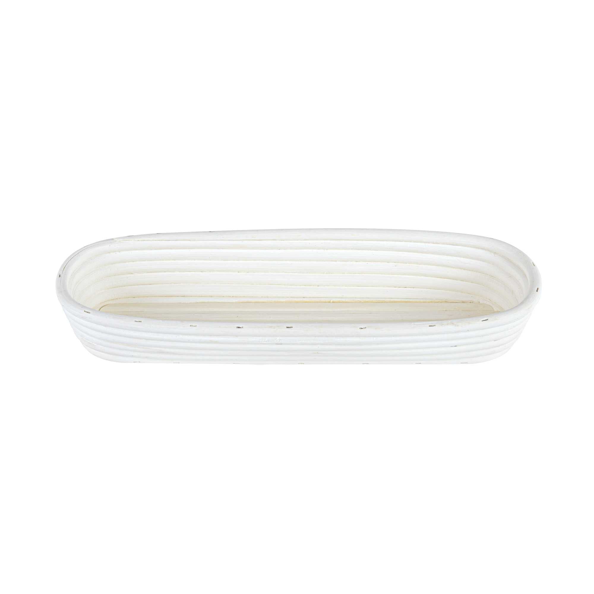 Effortlessly elevate your baking processes with this Pastry Tek Rattan Long Oval Natural Banneton Proofing Basket. This basket is meticulously designed to help you perfect artisan loaves with its 13.39" length and 3.94" width. Crafted from natural rattan, this bread proofing basket aids in healthy fermentation, allowing bakers to achieve the perfect rise every time. The included cotton liners enable easy dough transfer to baking sheets, safeguarding the shape and integrity of your loaves. This banneton bread basket is cold food friendly, making it an ideal choice for eco-conscious bakeries. Simplify cleanup with a quick tap or rinse under water, then place it over a warm oven to dry. Experience improved texture and taste in every loaf you prepare. Sold in a 1 count box.