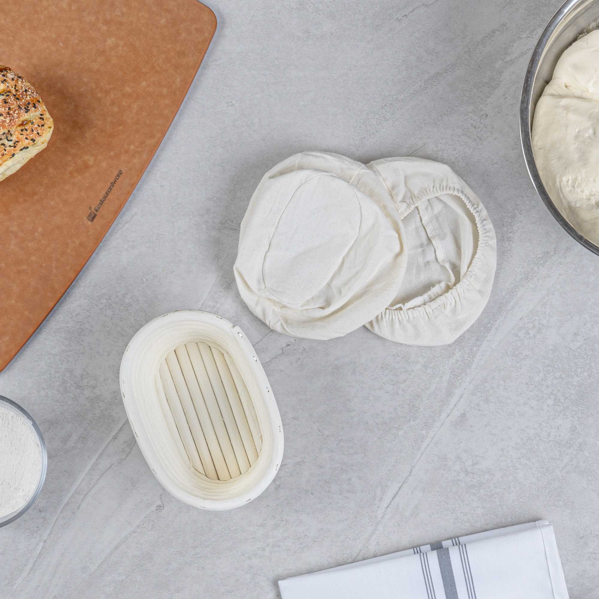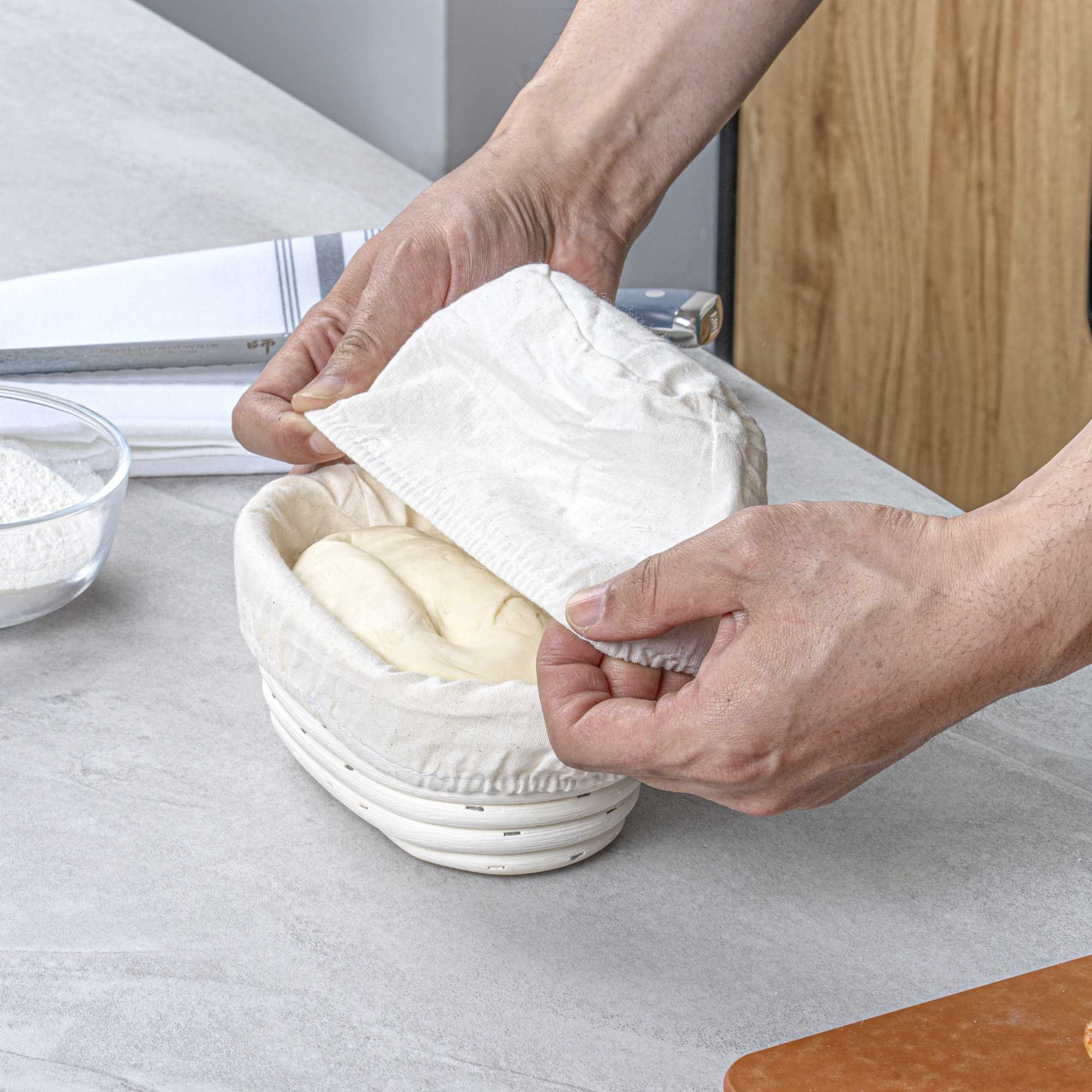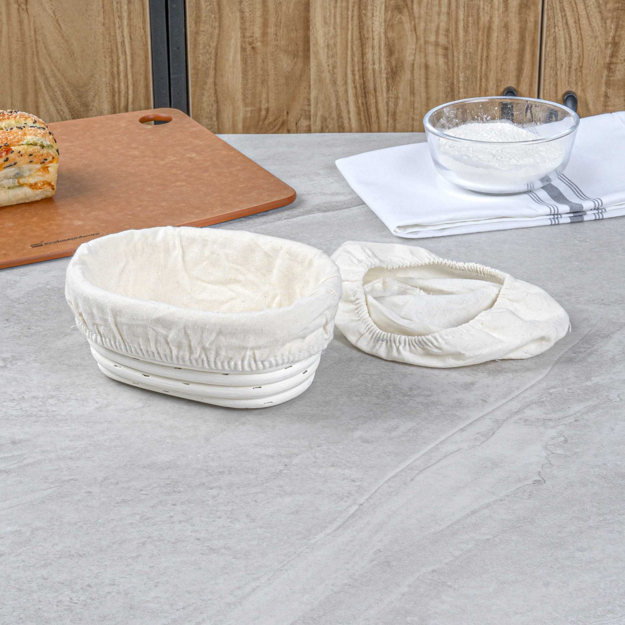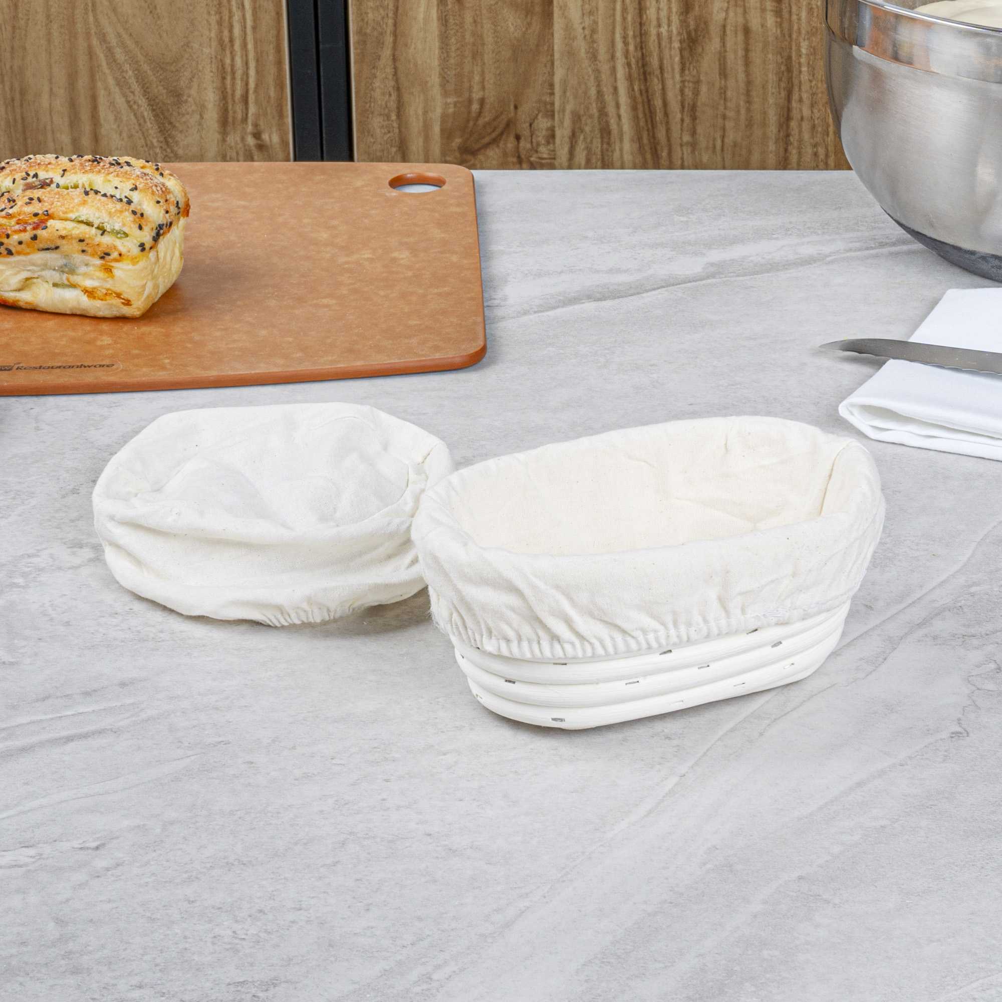 Foster the perfect rise for your dough with the Pastry Tek Rattan Oval Natural Banneton Proofing Baskets. These non-stick banneton proofing baskets are crafted from natural rattan to enhance dough breathing, supporting a smooth, artisanal bread crust. Their compact size of 6.7 inches in length, 4.7 inches in width, and 3.2 inches in height fits snugly in standard sourdough proofing basket spaces, optimizing your kitchen’s workflow. The included cotton liners ensure effortless dough transfer to your baking sheet, saving time and keeping the dough intact. Rely on these artisan bread baskets for clean and convenient proofing, especially when prepping large batches of bread in busy kitchens. Sold in a 10 count box.