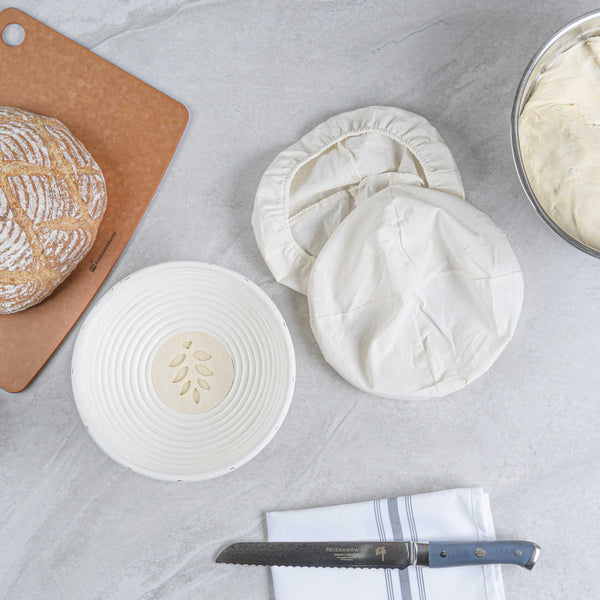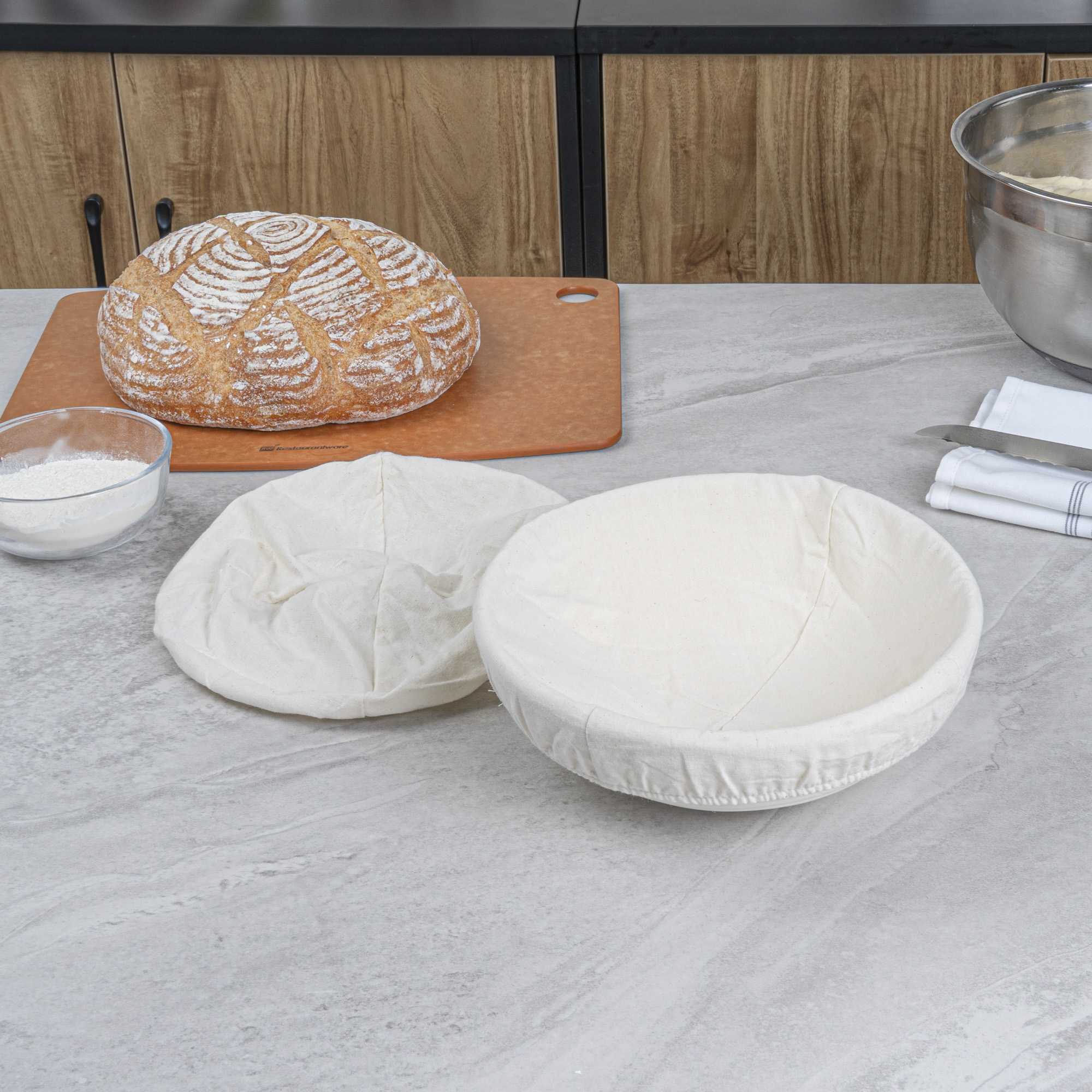 Achieve beautifully artisan loaves with our Pastry Tek Rattan Round Natural Banneton Proofing Basket. The 9.1-inch dimension boasts a rattan construction, enhancing dough's texture while maintaining its shape, ideal for your bread proofing basket needs. Designed to facilitate flawless baking, this sourdough proofing bowl includes cotton liners that ensure convenient dough transfer, minimizing the mess in your kitchen workflow. This rattan dough bowl is cold food friendly and freezer-friendly, providing sustainable and flexible dough storage solutions. Enjoy seamless cleaning with a simple tap or a rinse under hot water, and it dries efficiently in a warm oven, offering practicality for busy kitchen environments. Experience superior reliability and sustainability in each bread-making task with this exceptional tool. Sold in a 1 count box.