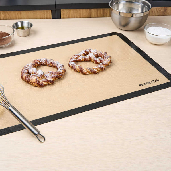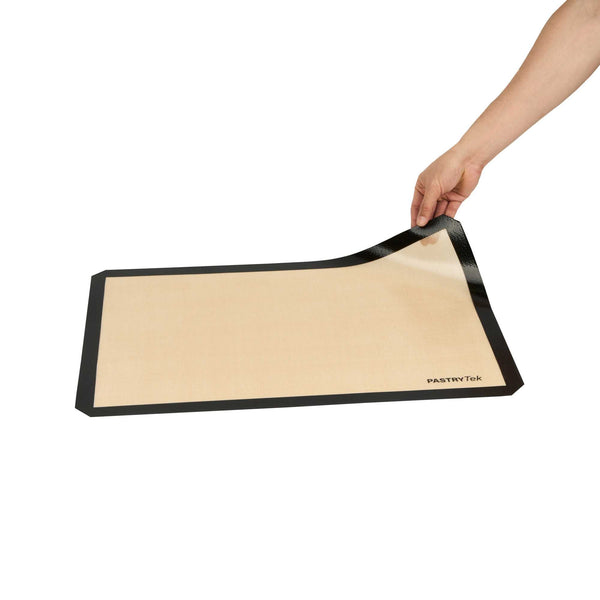 Experience seamless baking with a versatile non-stick baking mat. The Pastry Tek Black Silicone Non-Stick Baking Mat combines a food-grade silicone construction with a generous 15.7 inches by 23.6 inches size, ensuring safe oven use while accommodating a variety of baking applications. Its non-stick and greaseproof surface, coupled with an anti-slip grip, facilitates effortless kneading and rolling, making it a favorite among professional bakers. Designed to be a reusable baking mat, it supports high-volume kitchens, reducing reliance on single-use alternatives and promoting sustainability. Additionally, its easy-to-clean, dishwasher-safe construction ensures quick turnaround times, enhancing kitchen efficiency. The heat-resistant design of this food-grade silicone mat makes it ideal for both hot and cold applications, offering unmatched versatility. Enhance your baking setup with this indispensable tool. Each order includes 1 Pastry Tek Black Silicone Non-Stick Baking Mat.