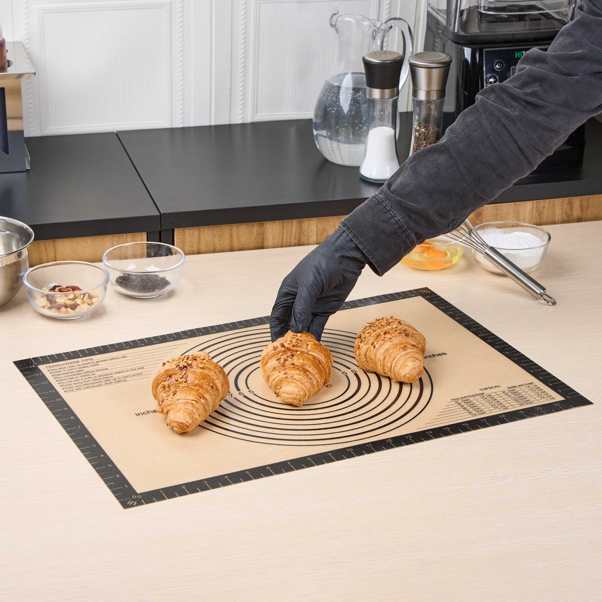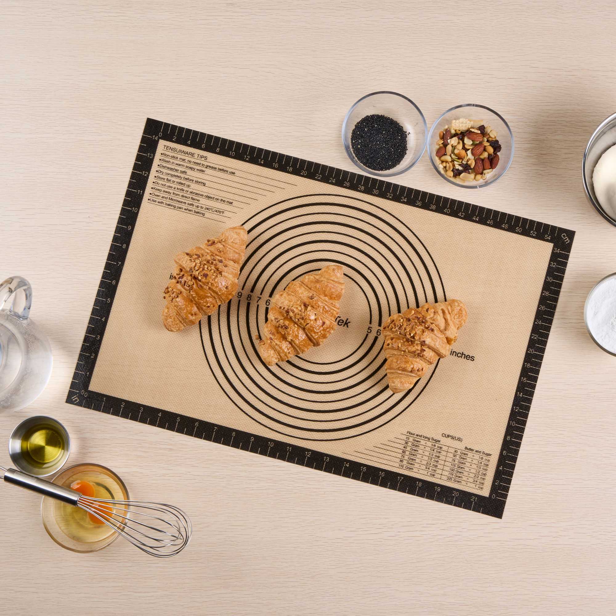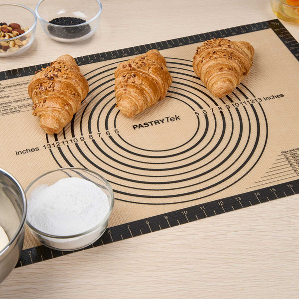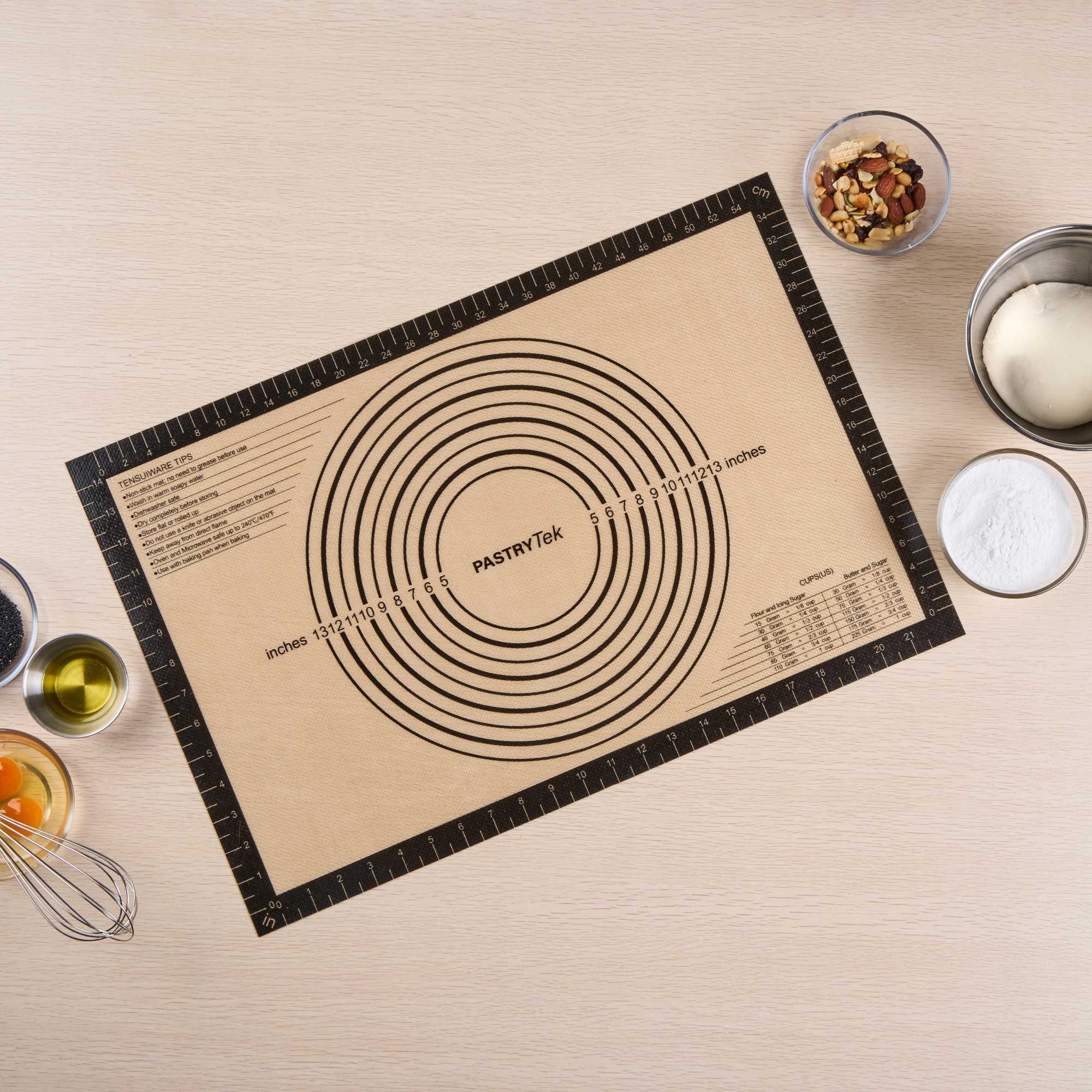 Streamline your pastry preparation with ease and precision. The Pastry Tek Non-Stick Silicone Baking Mat provides a reliable, non-stick surface that ensures fast, easy food release, making it ideal for busy commercial kitchens. Crafted from food-grade silicone, this mat withstands temperatures from -113 degrees Fahrenheit to 446 degrees Fahrenheit, ensuring safe oven use for versatile baking applications. Its anti-slip base maintains stability during prep work, while measurement guides printed on the mat simplify portioning and rolling precision, ensuring consistent results every time. As a reusable silicone liner, it reduces single-use waste, making it perfect for eco-conscious bakeries and pastry shops. Designed to fit seamlessly into your daily operations, this dishwasher-safe mat streamlines cleanup and reduces labor time after service. Upgrade your baking process with this silicone baking mat and experience enhanced efficiency in your kitchen. Each order includes 1 Pastry Tek Non-Stick Silicone Baking Mat.