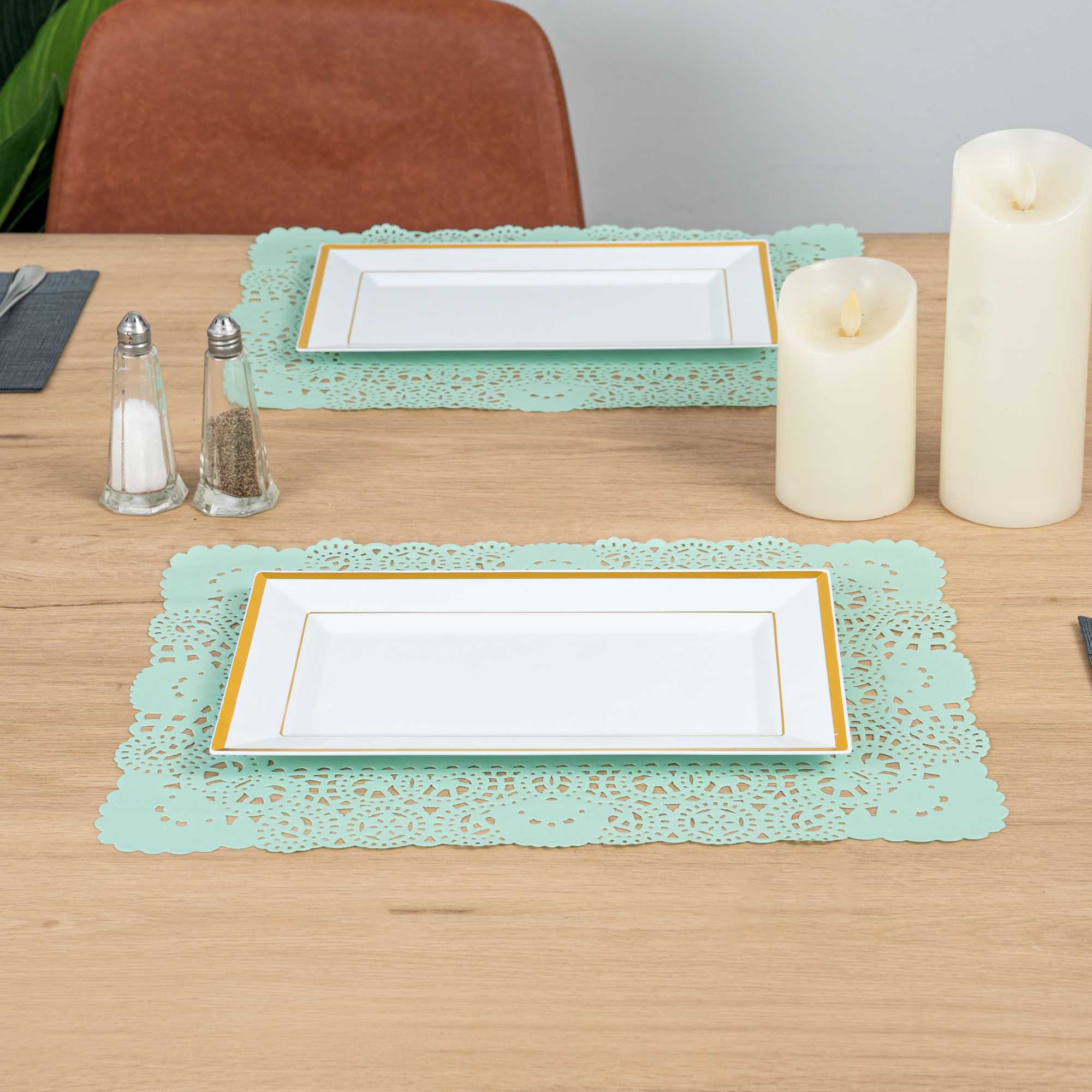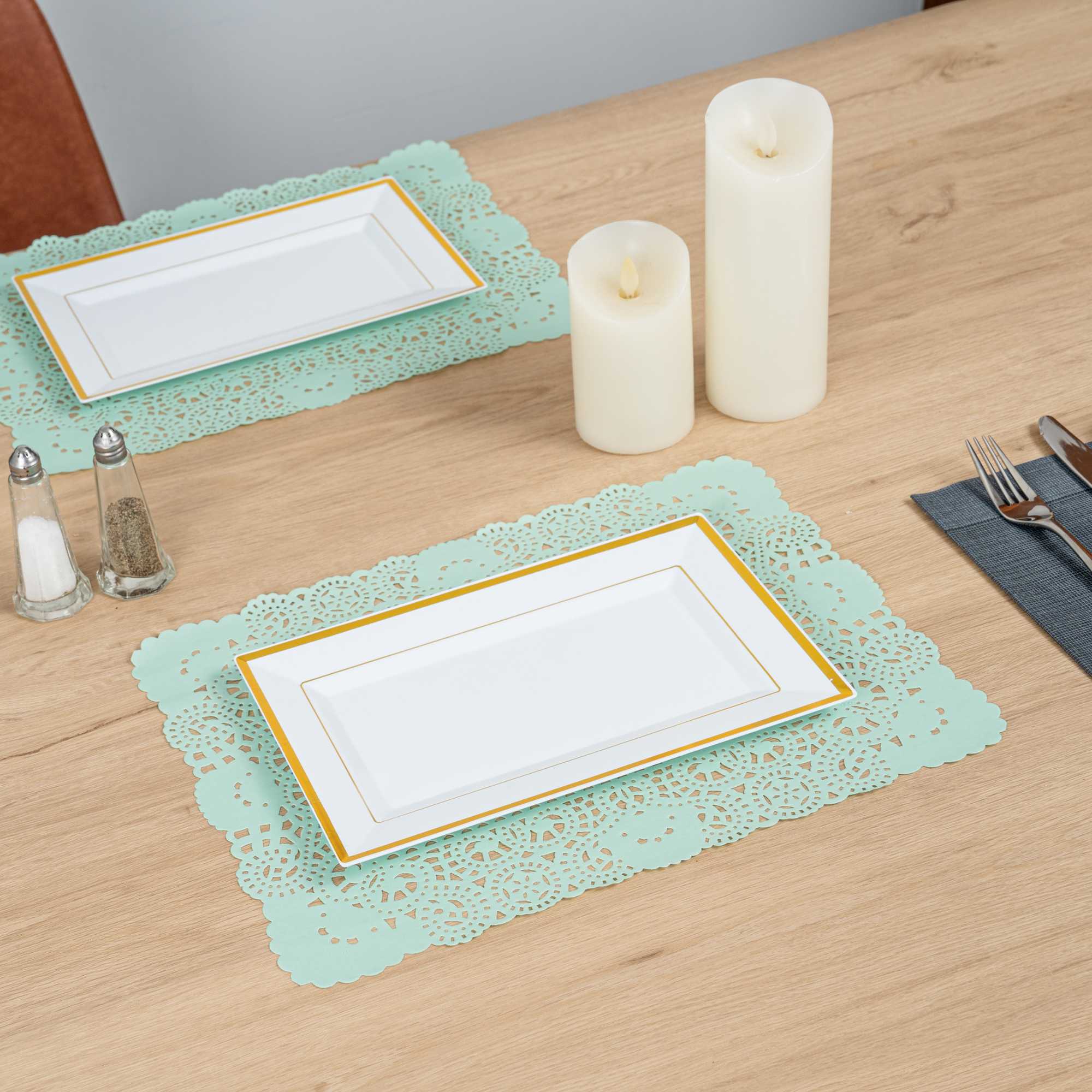 RECTANGLE TEAL PAPER DOILIES - LACE -