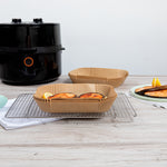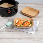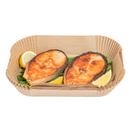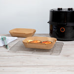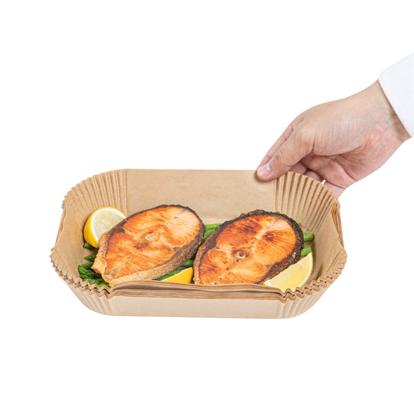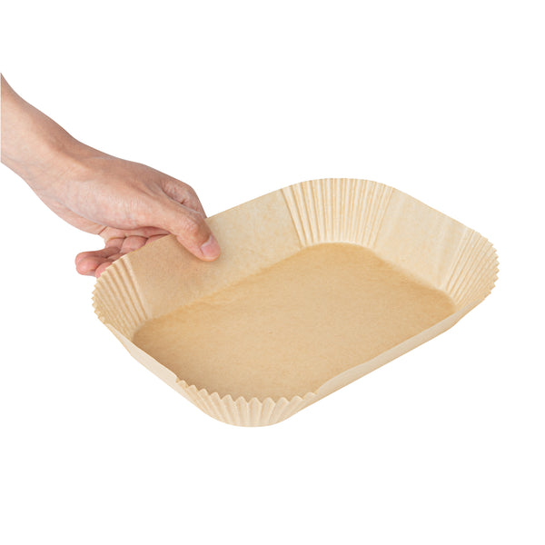 Elevate your cooking experience with our Pastry Tek Rectangle Unbleached Air Fryer Liners / Parchment Papers. Featuring a double-sided silicone coating, these air fryer liners prevent food from sticking, ensuring easy release and effortless cleanup. These air fryer paper liners are heat-resistant up to 445F and suitable for ovens, microwaves, instant pots, frying pans, and steamers. The greaseproof and waterproof design of these air fryer inserts prevent oil and liquids from soaking through, ensuring that food stays intact and your air fryer remains clean. Crafted from thick food-grade paper, these air fryer baskets are unbleached and ideal for cooking various types of food. To eliminate the need for cutting, these air fryer parchment papers are designed in a convenient rectangle bowl shape to fit your air fryer perfectly. These non-stick air fryer liners are freezer-safe and ideal for storing various foods in the refrigerator. To help minimize your carbon footprint, these air fryer disposable paper liners are recyclable and ideal for eco-conscious foodservice establishments. For an easy cleaning experience, these disposable parchment papers can be discarded after use. Measuring 8 inches in length by 5.5 inches in width by 1.75 inches in height, these disposable paper liners fit most air fryer baskets. Sold in a 100 count box.