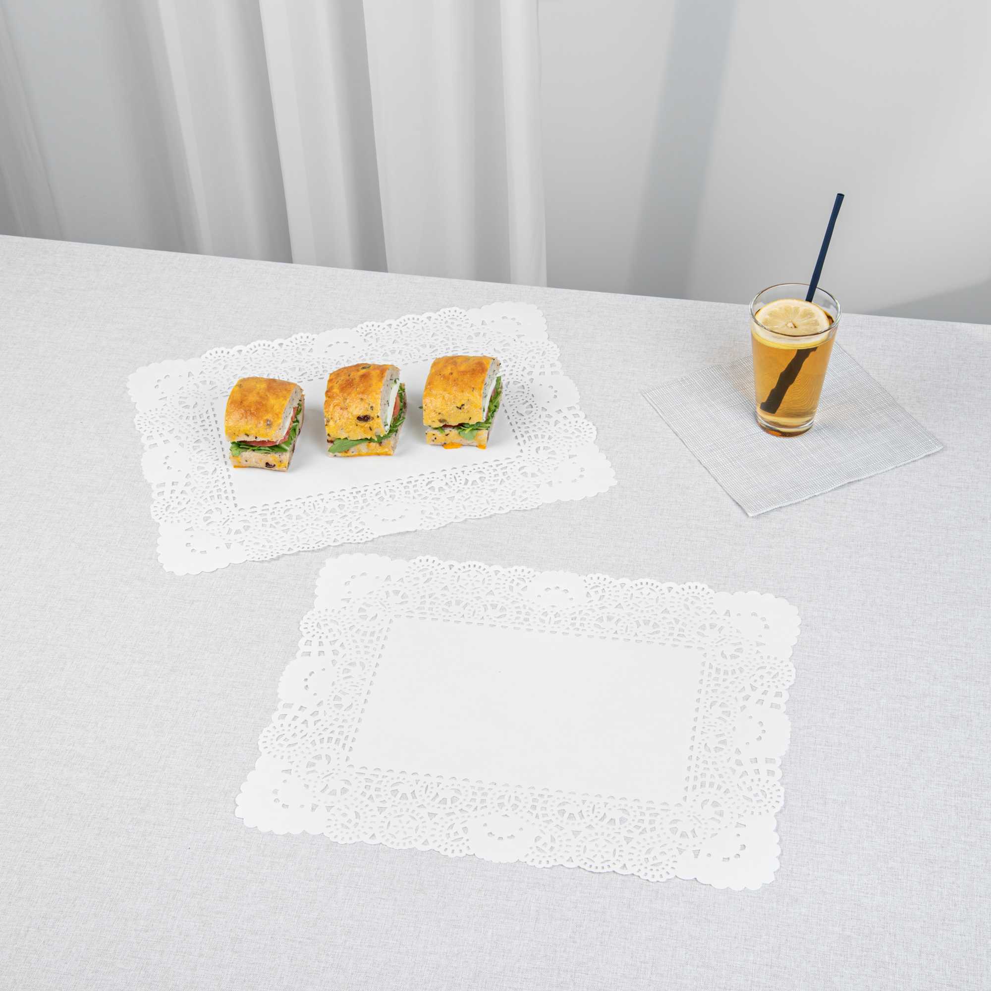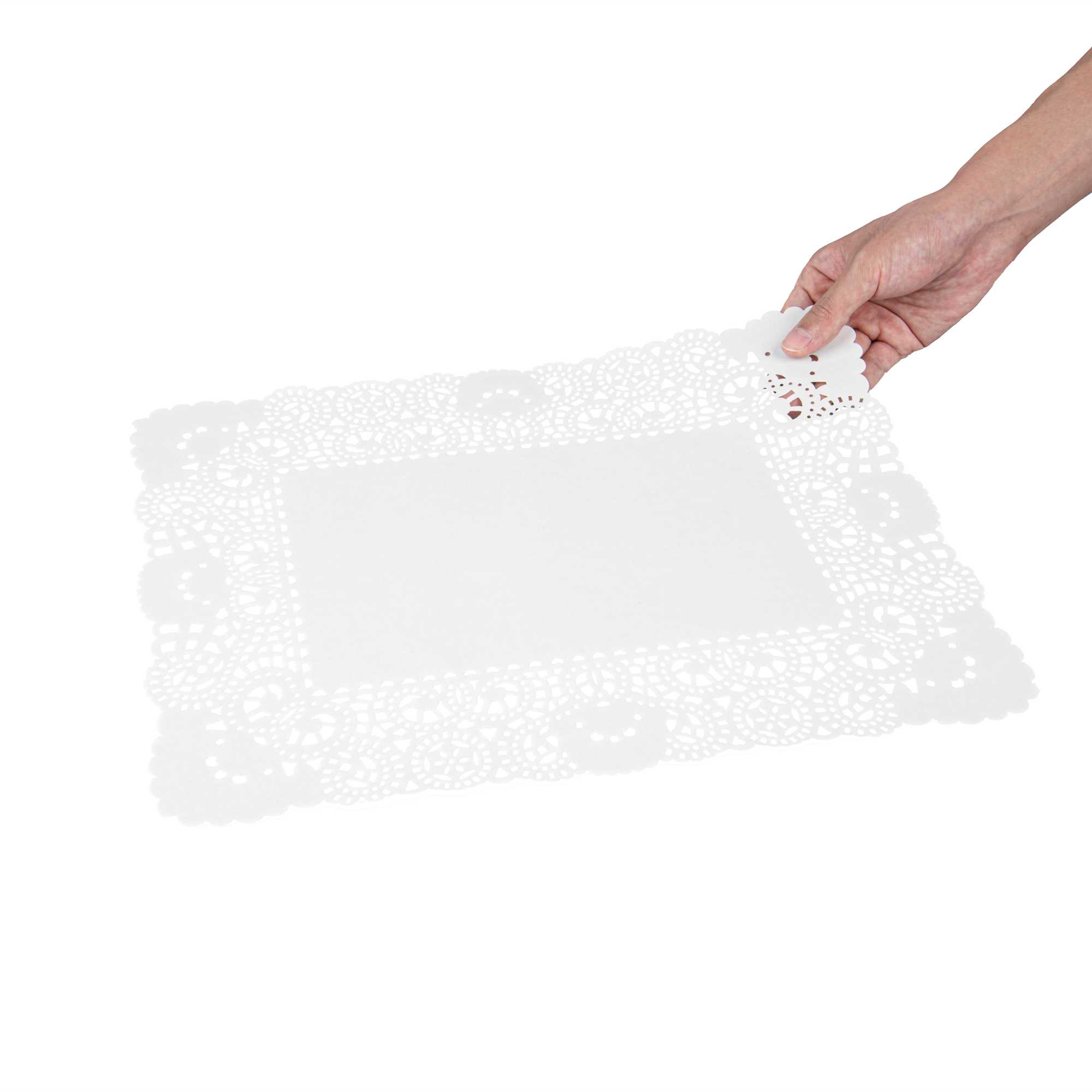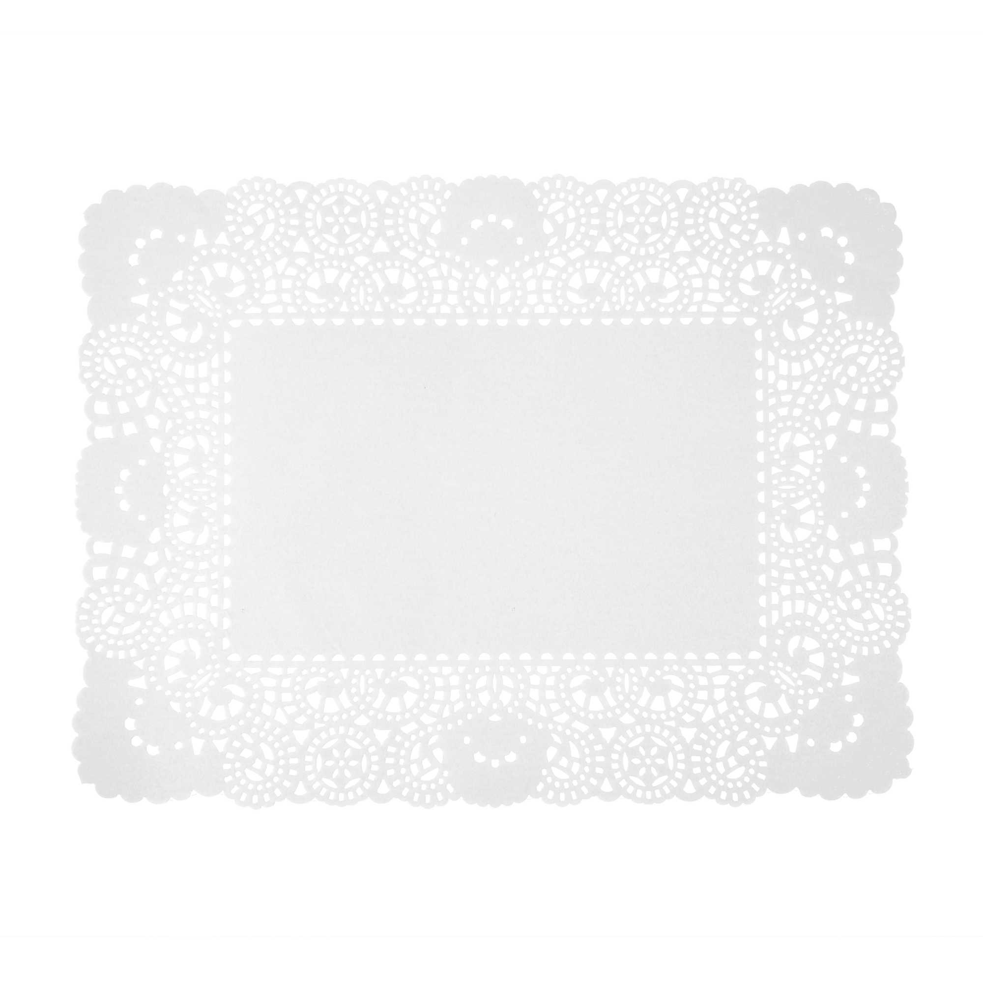 Elevate your dessert presentations with our Pastry Tek Rectangle White Paper Doilies, designed to add an elegant touch to any display. Crafted from high-quality paper, these lace doilies provide exceptional durability, ensuring that desserts and other treats at bakeries or catered luncheons remain perfectly presented without tearing or losing their structural integrity. Featuring intricate lace-like details, these table doilies not only enhance the visual appeal of your food presentations but also serve as functional barriers by protecting surfaces and absorbing moisture. The versatile white finish of these paper doilies allows them to complement a wide range of table settings and themes, making them an ideal choice for various events and occasions. Disposable by design, these small doilies offer a convenient and time-saving solution for busy hosts and food establishments, eliminating the hassle of post-event cleanup. Perfect for use under cupcakes, dessert platter, finger foods, and small treats, these paper doilies measure 15.75 inches in length by 12 inches in width. Sold in a 4,000 count box.