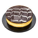 Provide a sturdy base to display cakes with our Pastry Tek Round Black Cardboard Cake Drum Board. With a grease-resistant cardboard material, this cake drum protects frosting designs without trapping excess in crevices. The sleek black finish with the covered edges of this cake board complements vibrant cake colors for stunning presentations. With a round design, this thick cake base provides a versatile, balanced, and aesthetically pleasing foundation for various cake sizes and styles. This cake display board is disposable and simplifies cleaning operations at food service establishments. The study construction of this cake mounting board provides a reliable base to transport cake securely or hold it steady for decoration. This cake base measures 10 inches in diameter by 0.5 inches in height. Sold in a 1 count box.