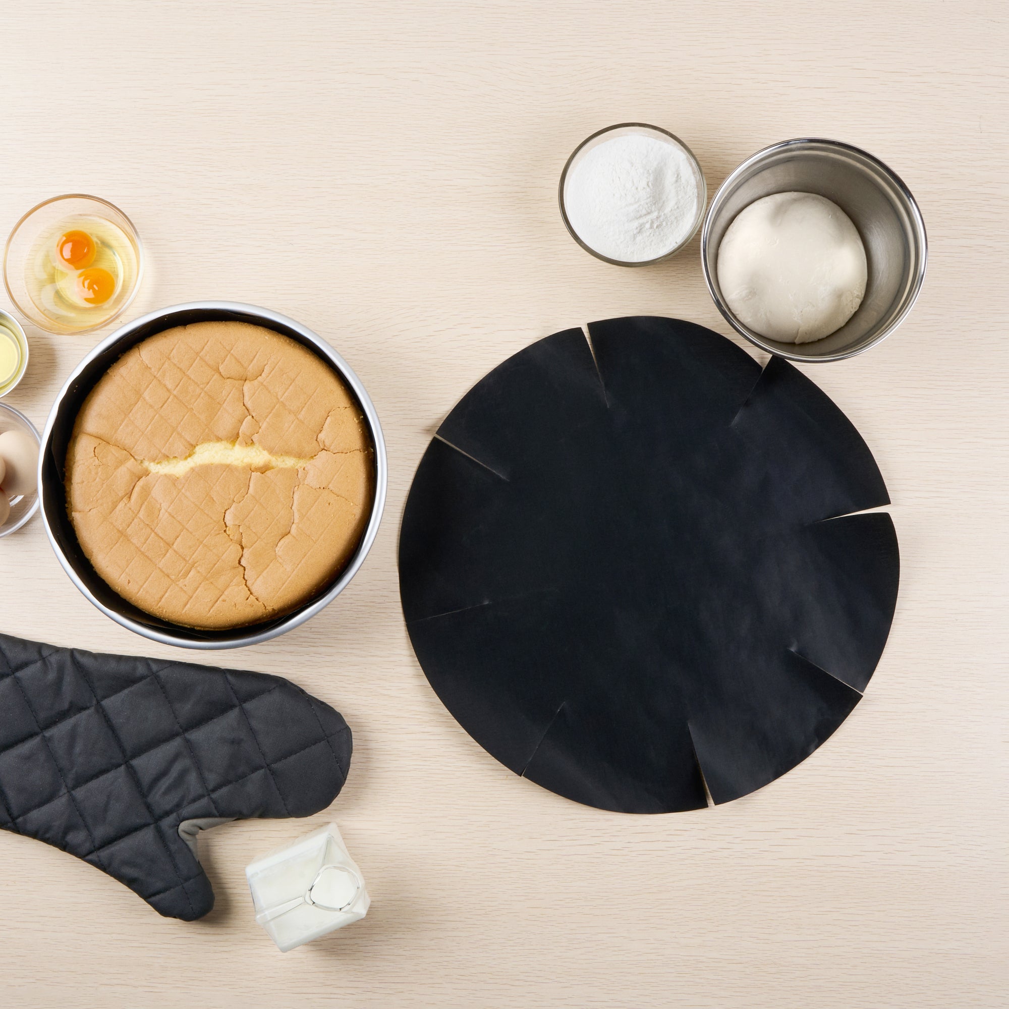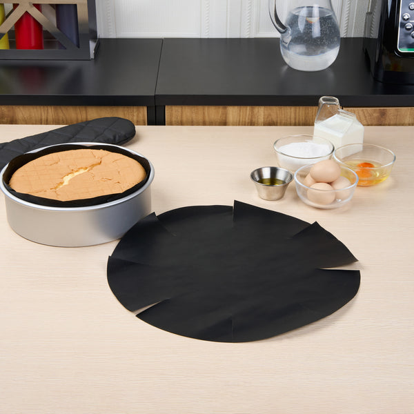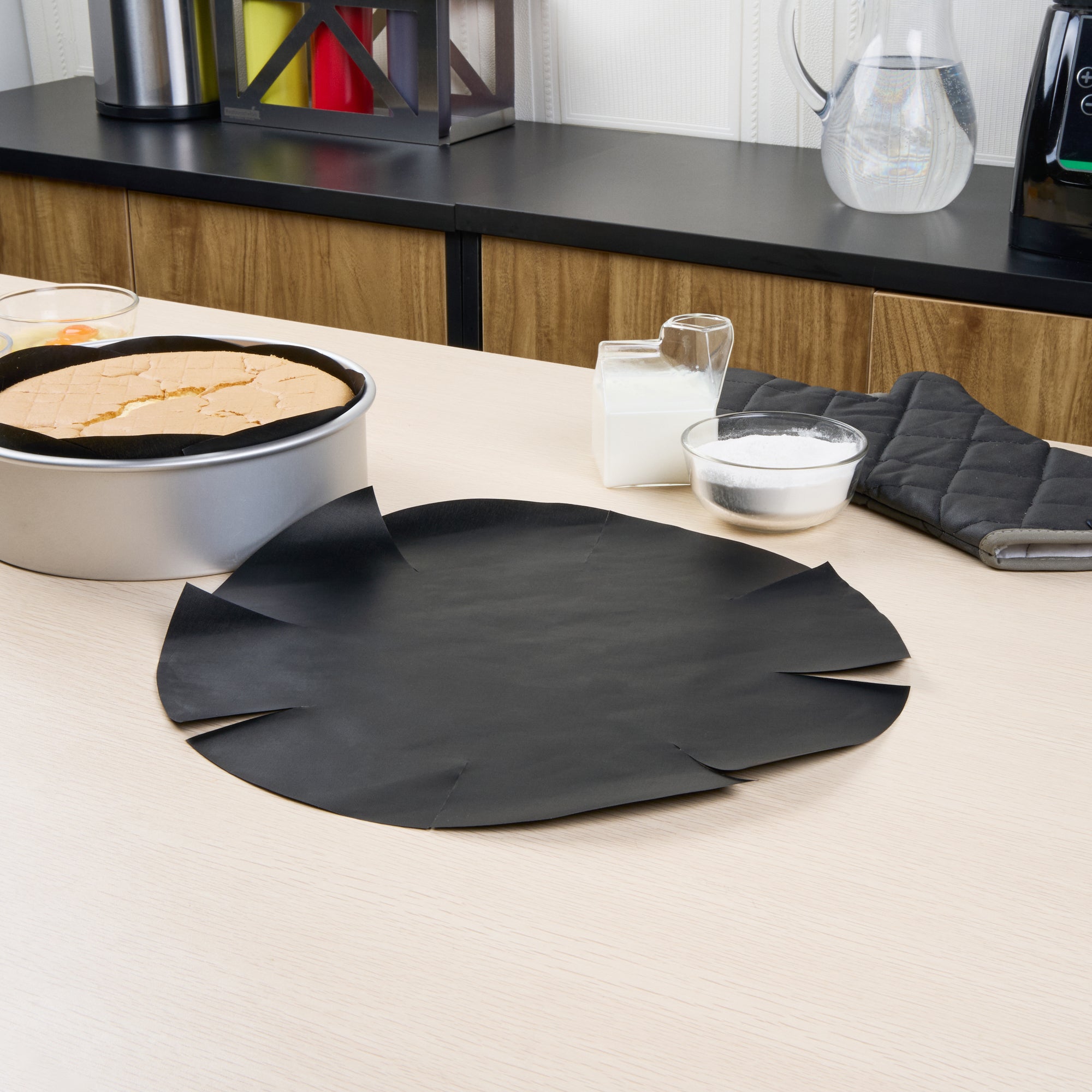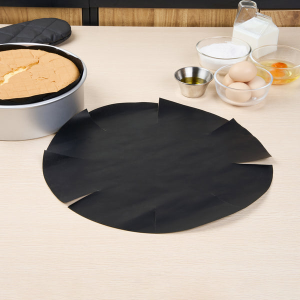 ROUND BLACK FIBERGLASS CAKE TIN LINER - NON-STICK, FOLDABLE