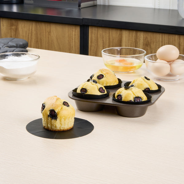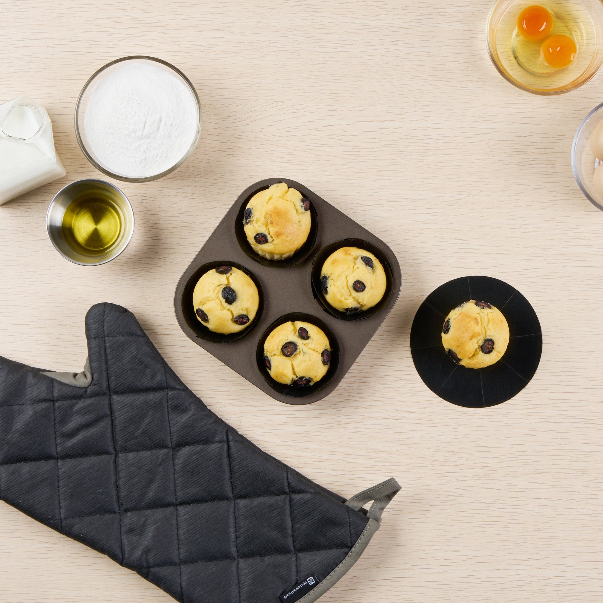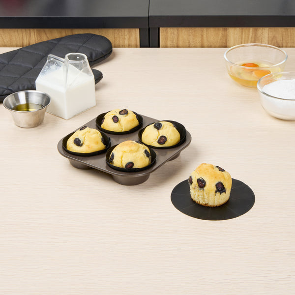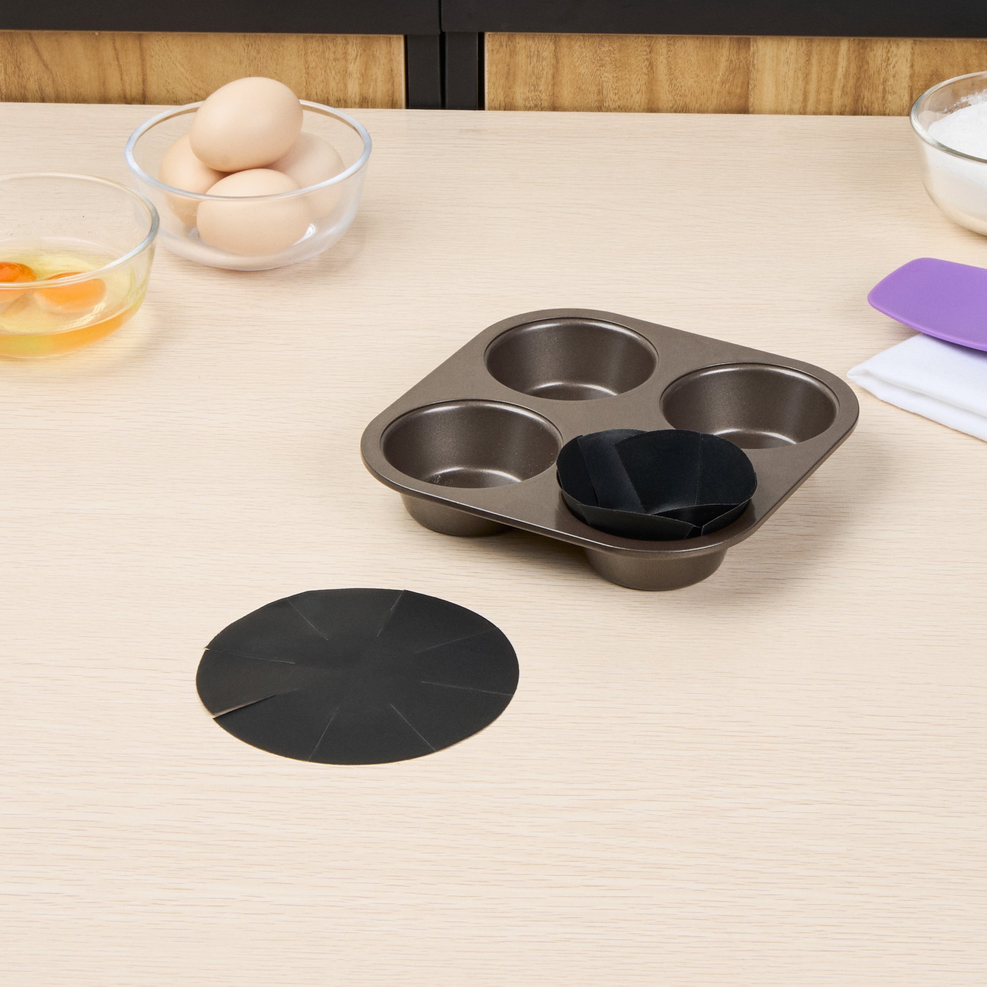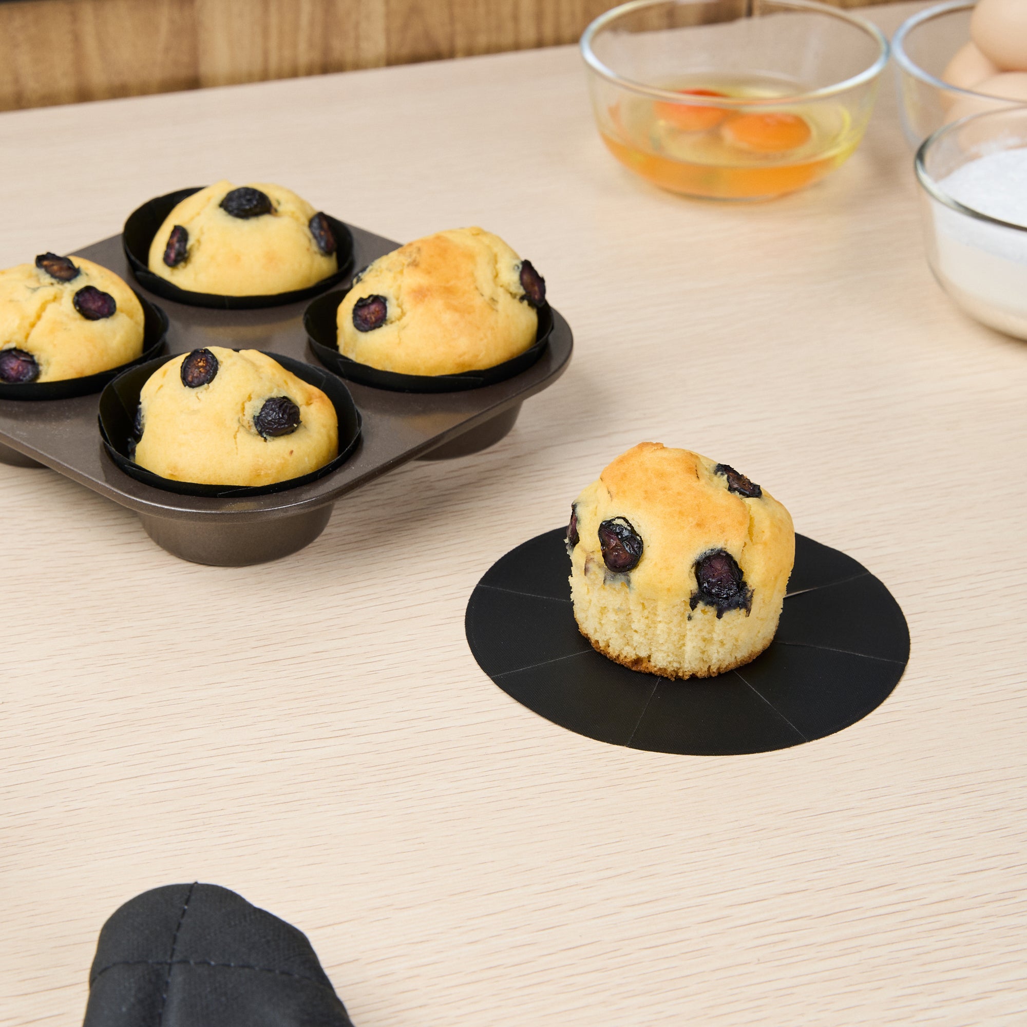 ROUND BLACK FIBERGLASS CUPCAKE / MUFFIN LINER - NON-STICK, FOLDABLE
