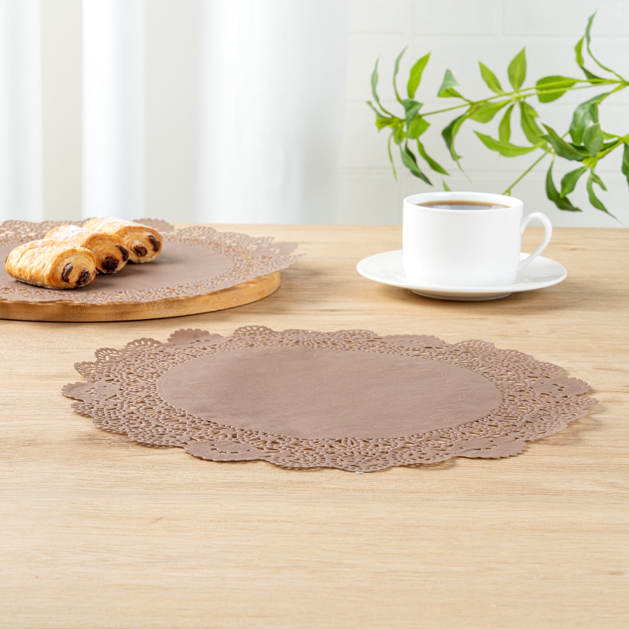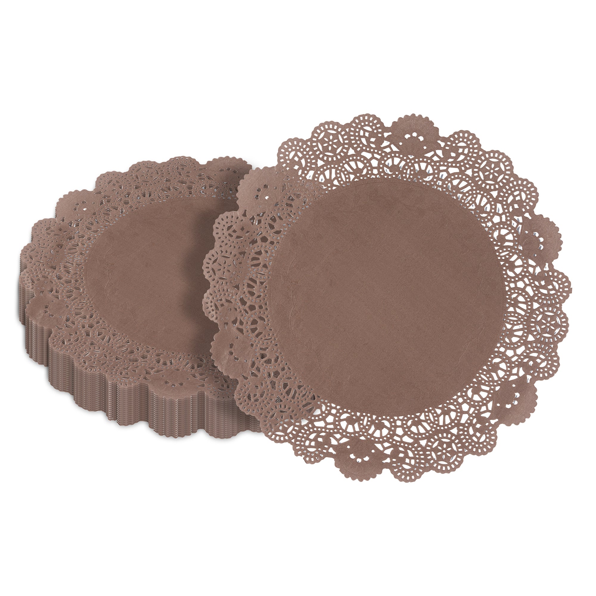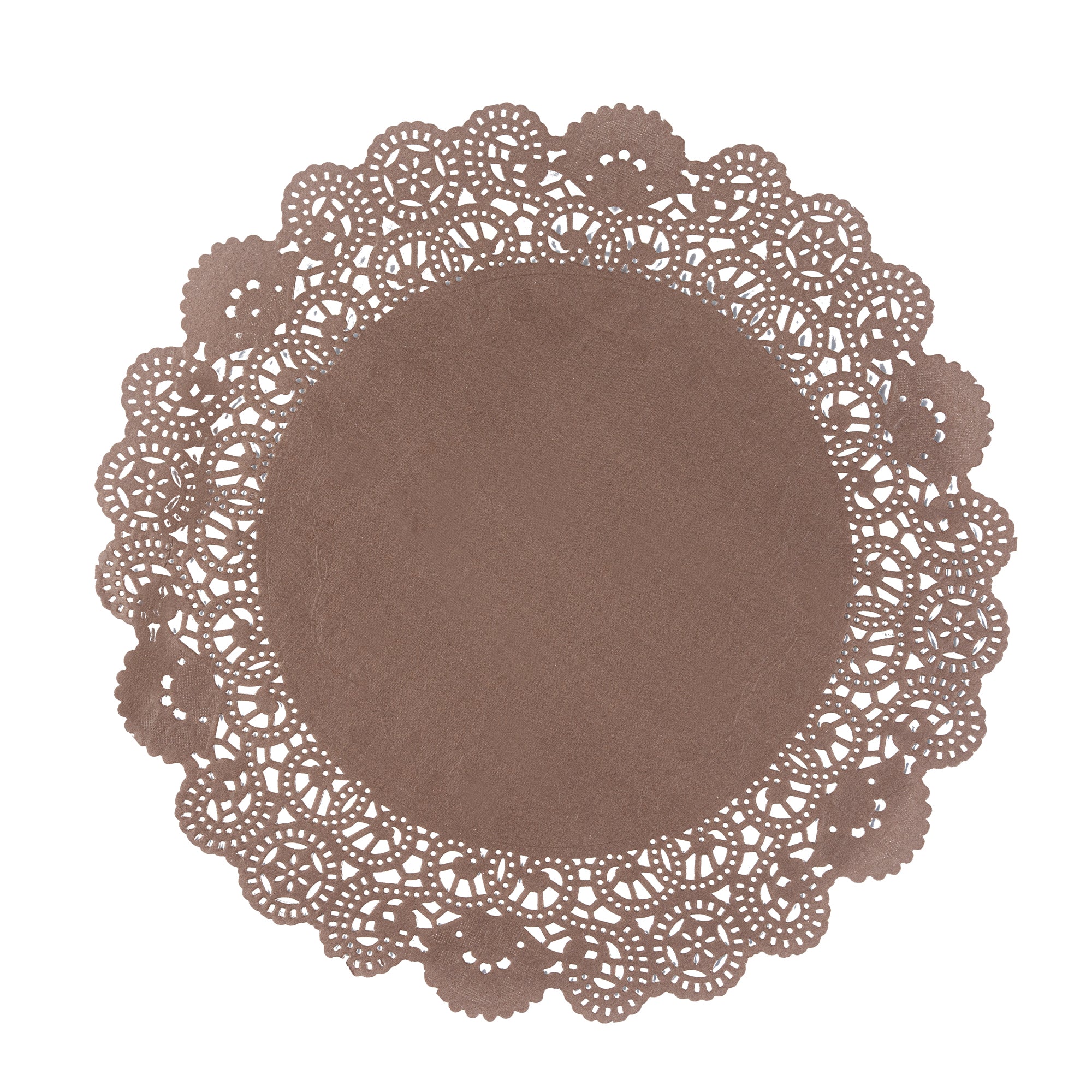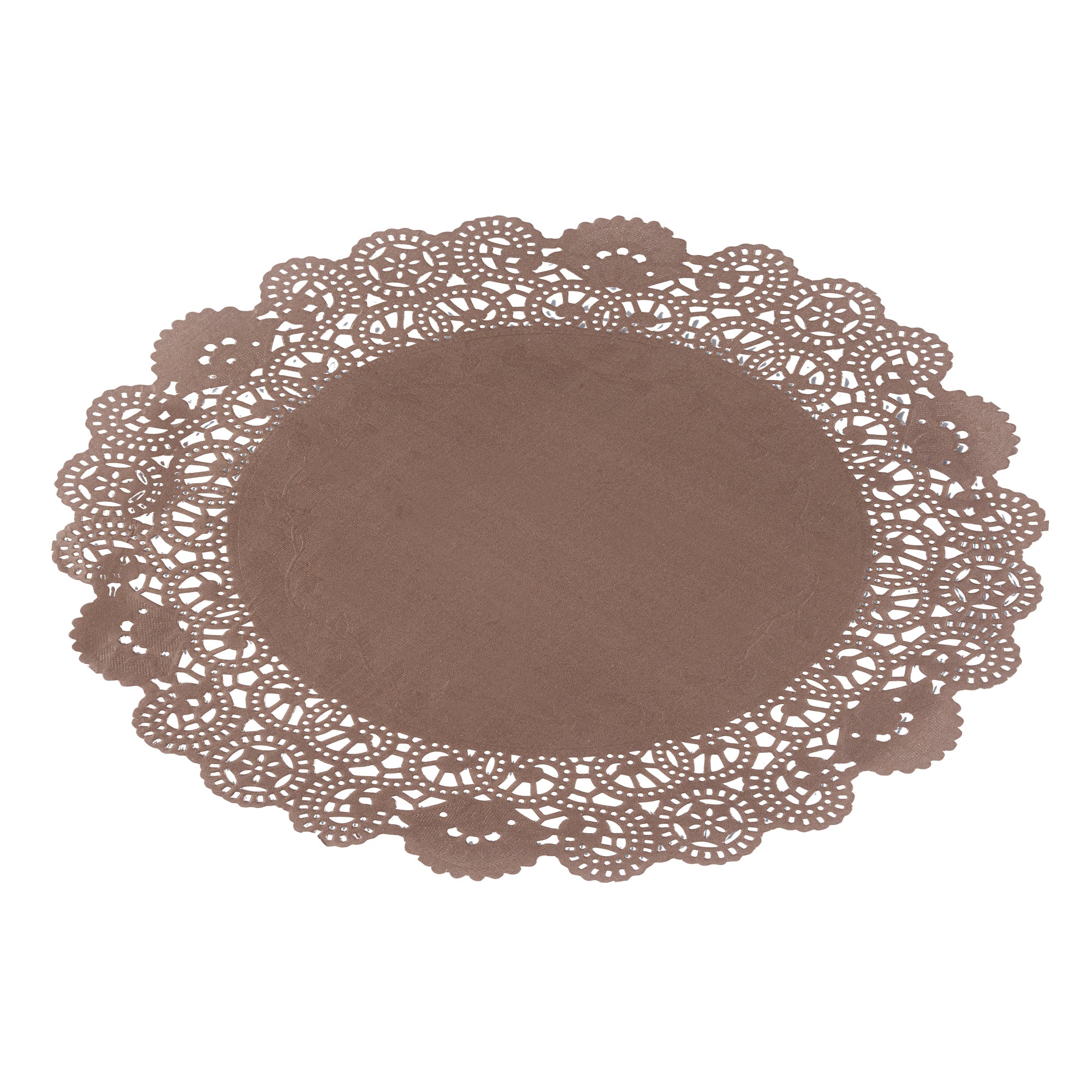 Elevate your dessert displays with our Pastry Tek Round Brown Paper Doilies. Crafted from high-quality paper, these table doilies provide unmatched durability while showcasing your desserts at bakeries or catered luncheons without tearing or losing their structural integrity. Featuring intricate lace-like details, these lace doilies increase the visual appeal of food presentations while serving as functional barriers, protecting surfaces, and absorbing moisture. The brown colored paper doilies complement a wide range of table settings and themes, making them an ideal choice for various events and occasions. Disposable by design, these small doilies eradicate the hassle of post-event cleanup, offering a convenient and time-saving solution for busy hosts and food establishments. Perfectly sized at 12 inches in diameter, these paper doilies can be used under cupcakes, petit fours, macarons, and other small treats. Sold in a 100 count box.