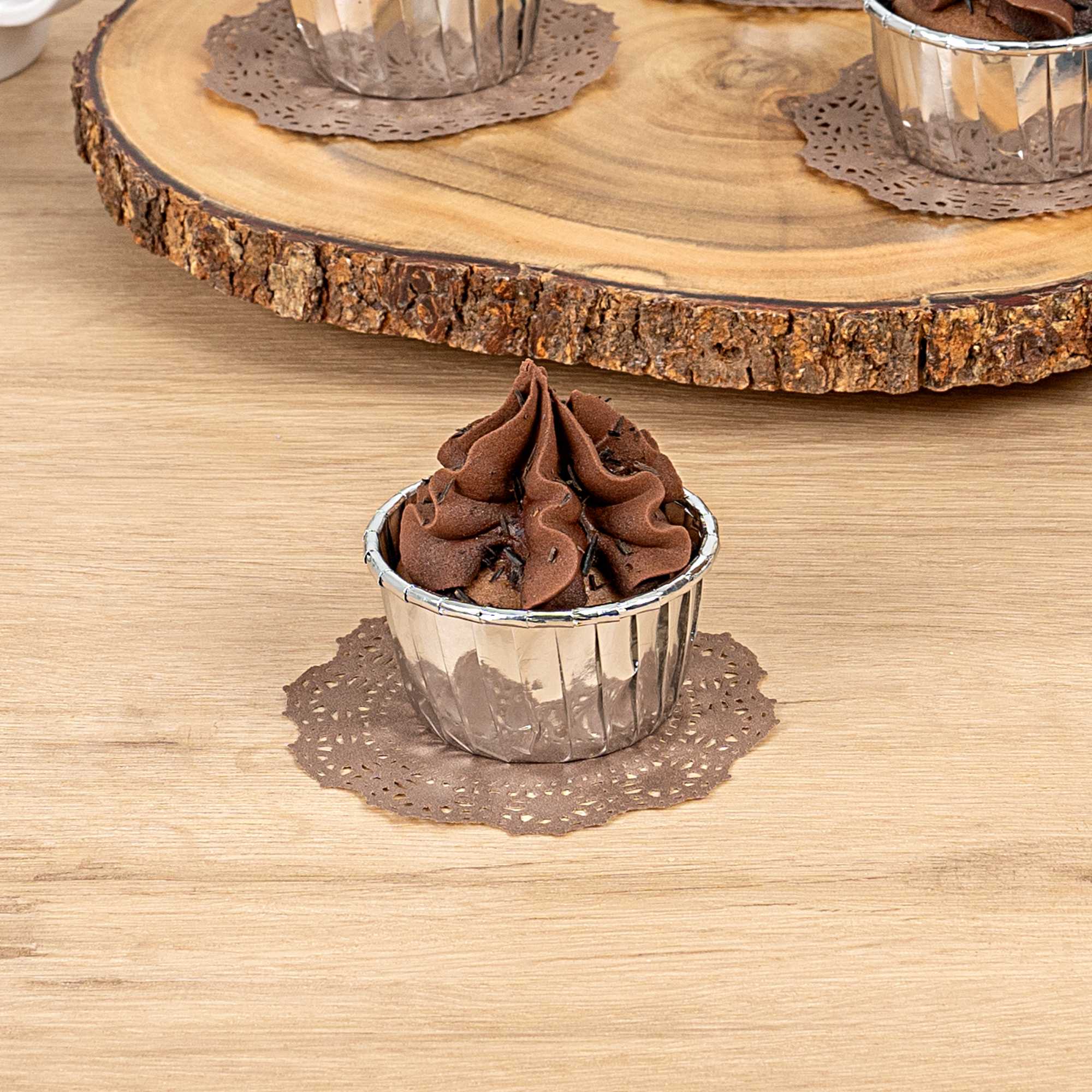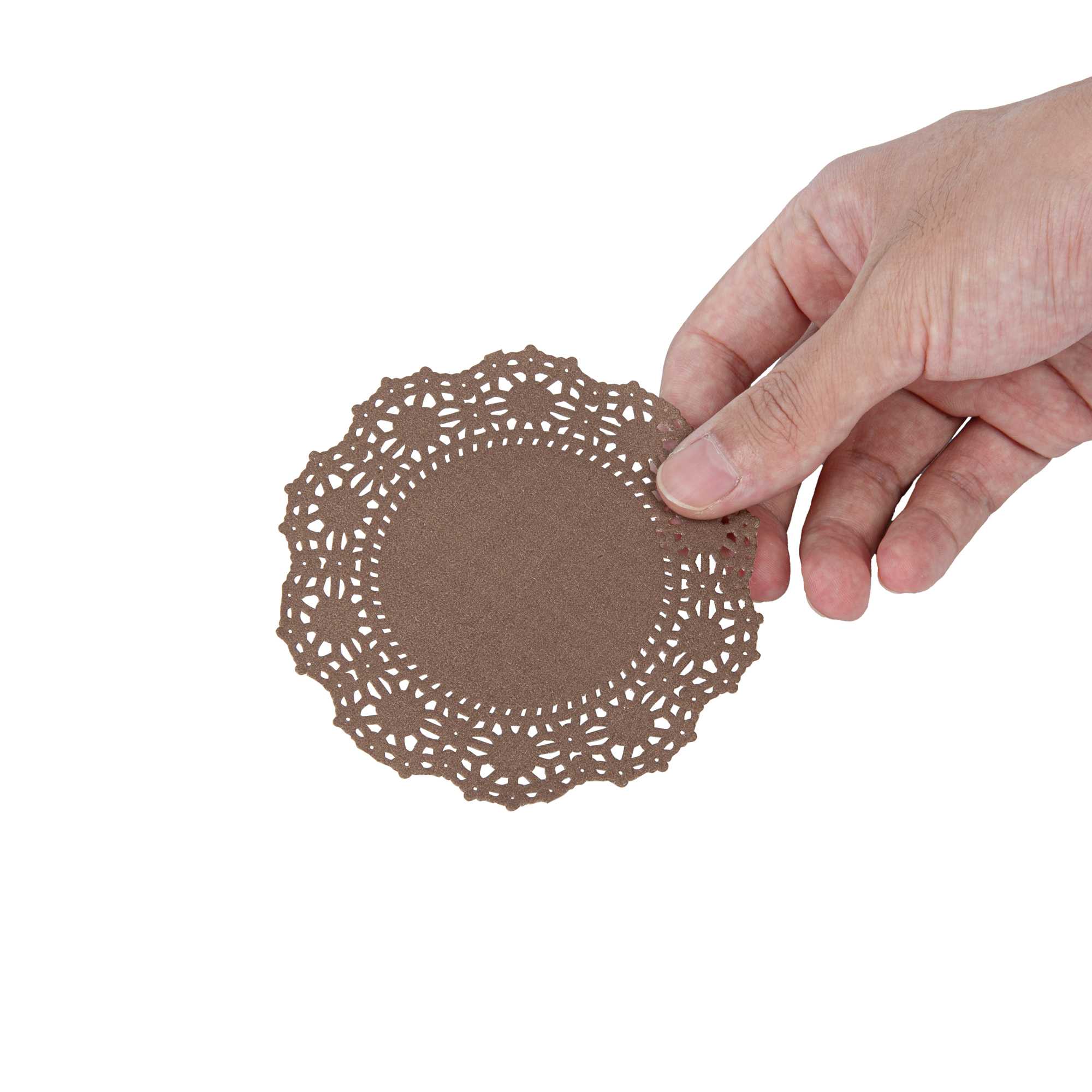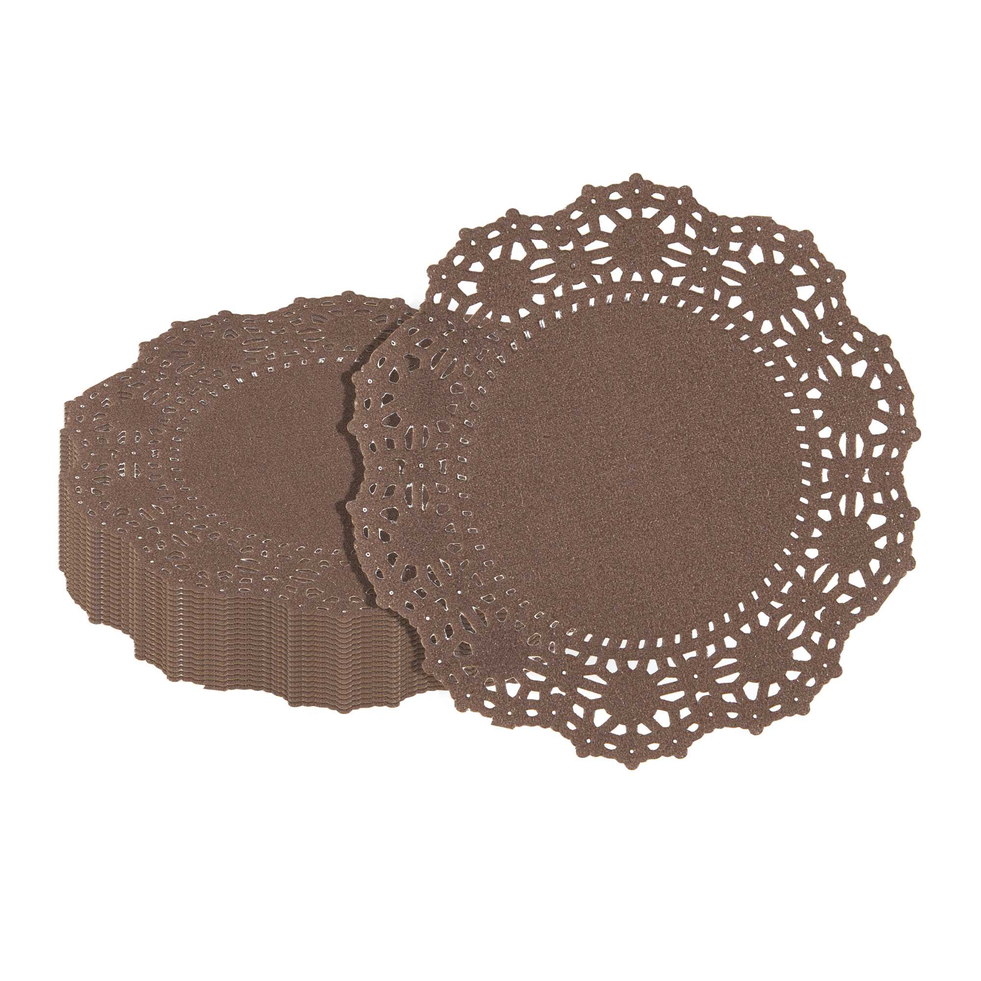 Elevate your dessert displays with our Pastry Tek Round Brown Paper Doilies. Adding an elegant touch to your table settings, these paper doilies are perfect for showcasing double chocolate brownies without compromising durability. Crafted from high-quality paper, these lace doilies maintain their structural integrity, ensuring your treats remain presentable. The intricate lace-like details enhance the visual appeal of food presentations while acting as functional barriers to protect surfaces and absorb moisture. These brown colored paper doilies complement a wide range of table settings and themes, making them ideal for various events and occasions. Designed for convenience, These disposable doilies eradicate the hassle of post-event cleanup, saving time for busy hosts and food establishments. Perfect for small treats like cupcakes, petit fours, and macarons, these small doilies measure 4 inches in diameter. Sold in a 100 count box.