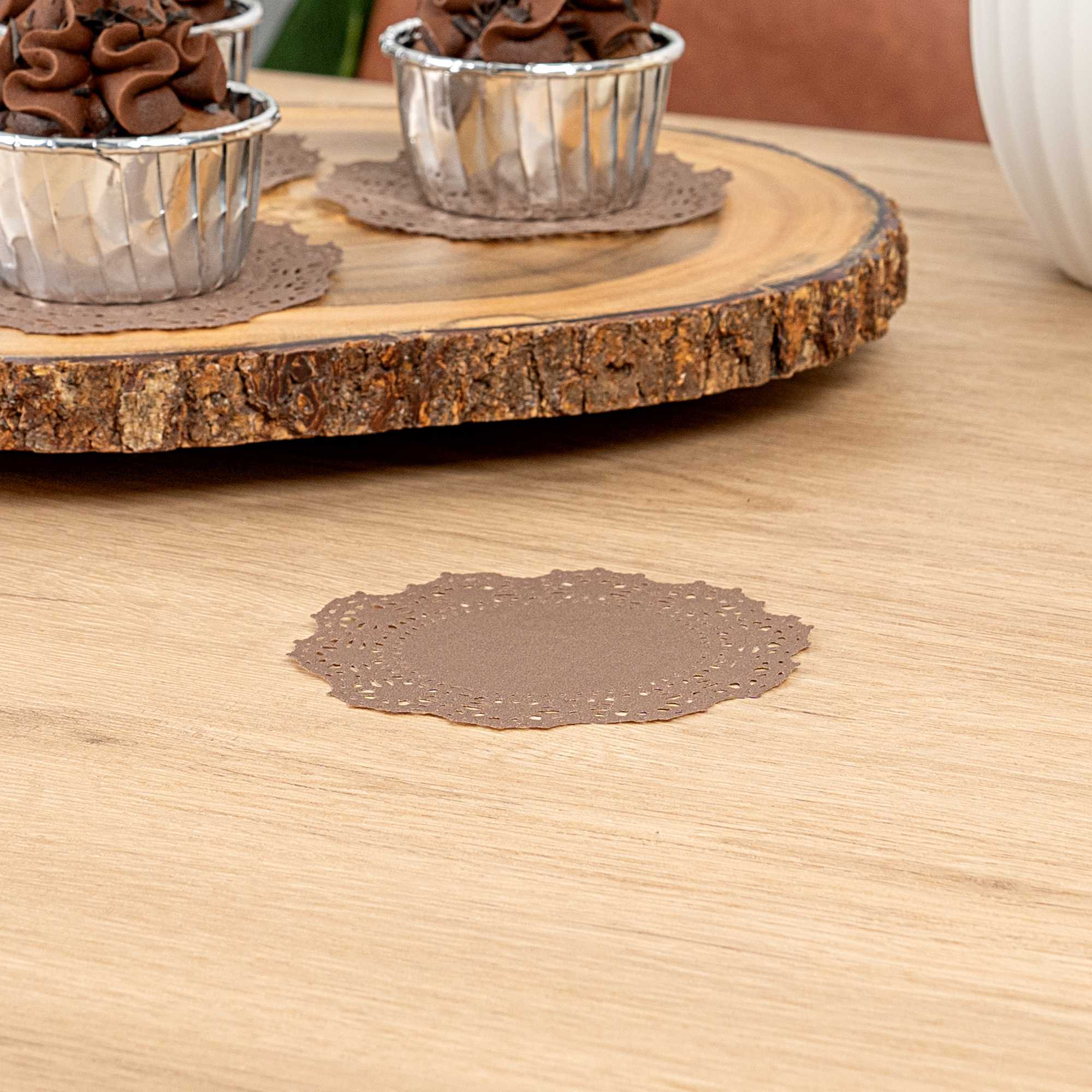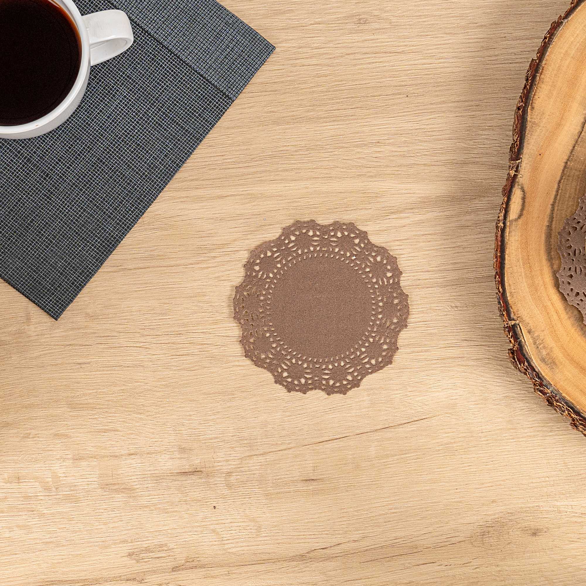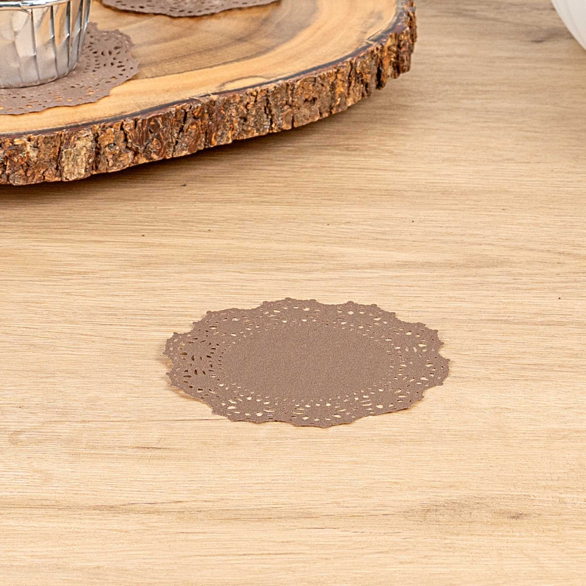 ROUND BROWN PAPER DOILIES - LACE