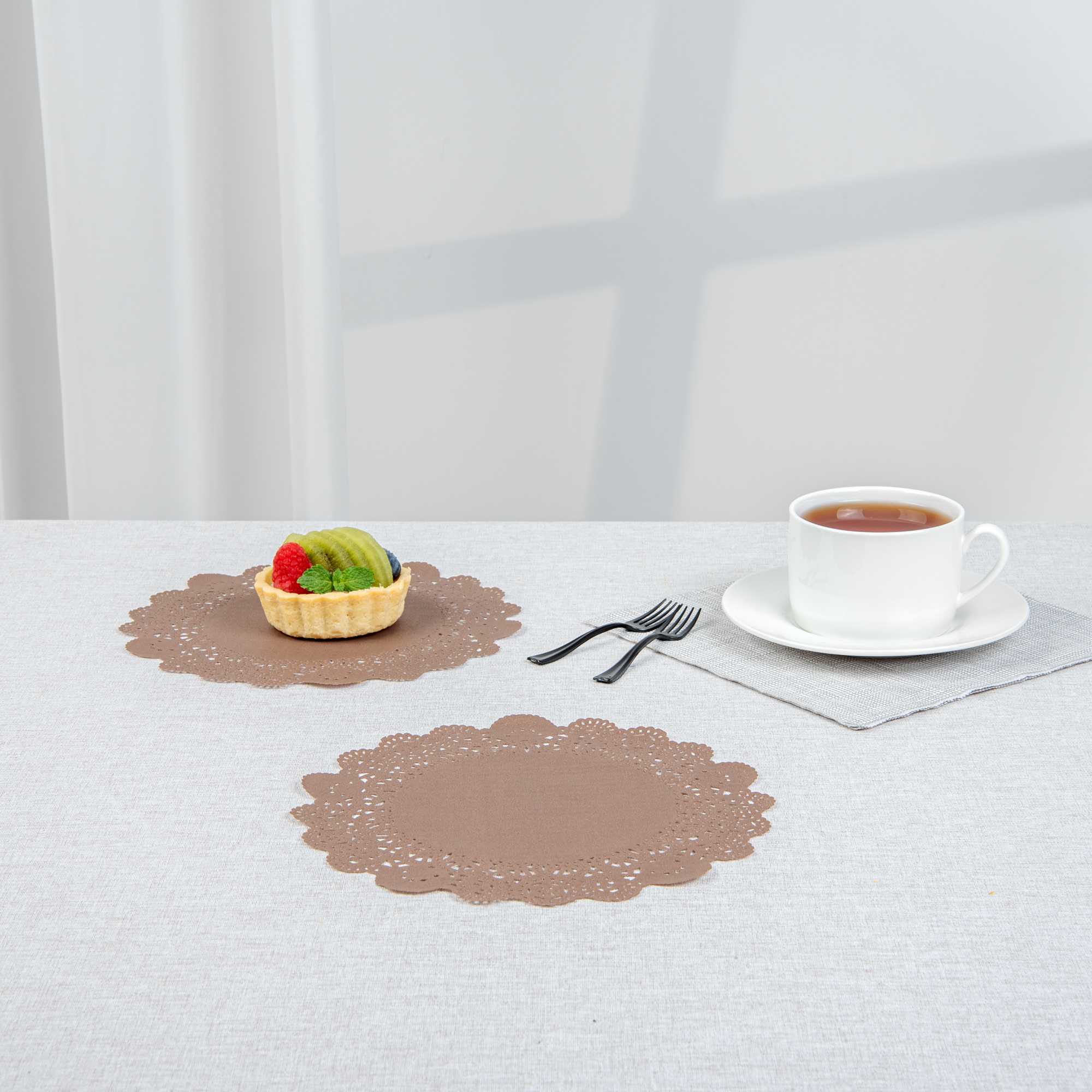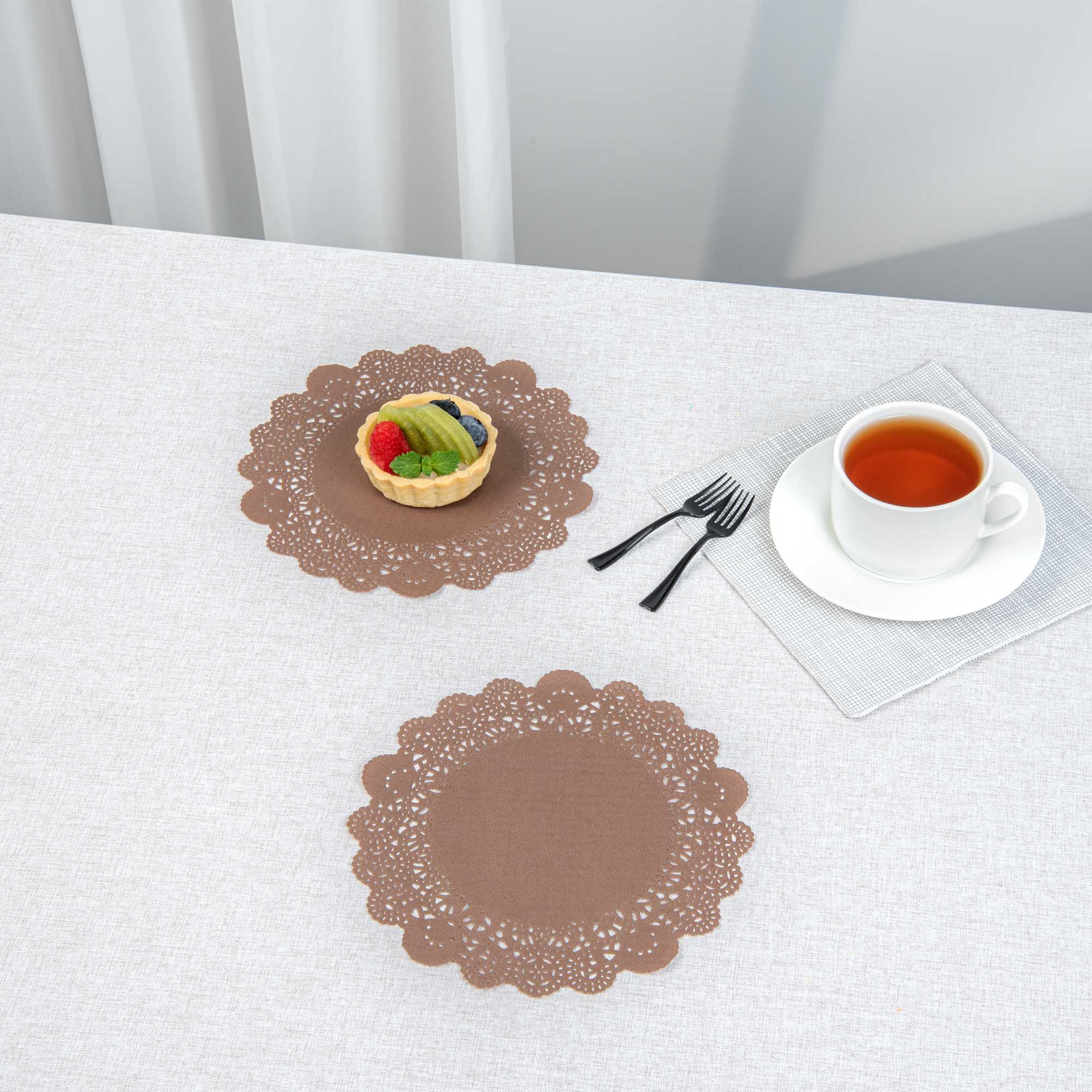 ROUND BROWN PAPER DOILIES - LACE