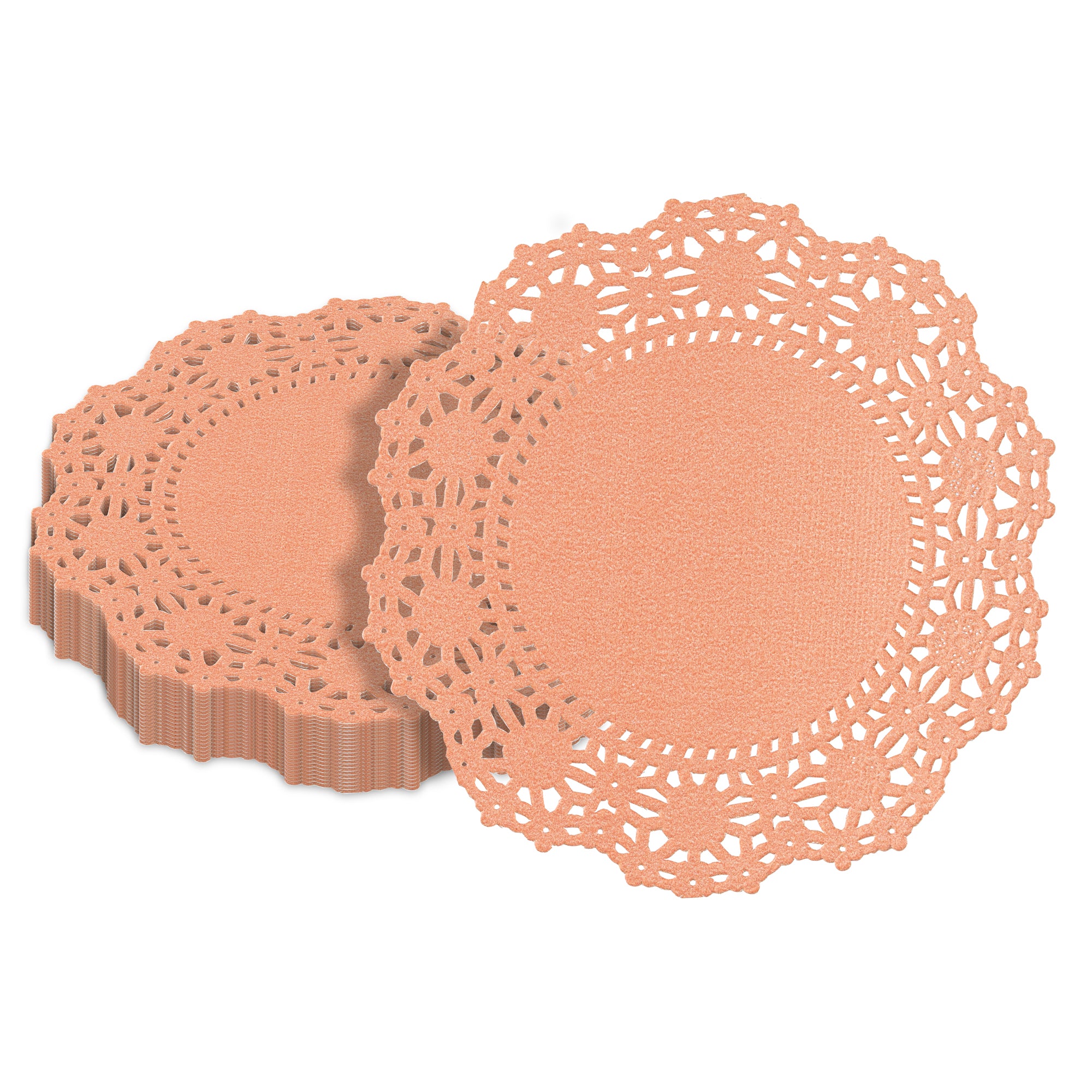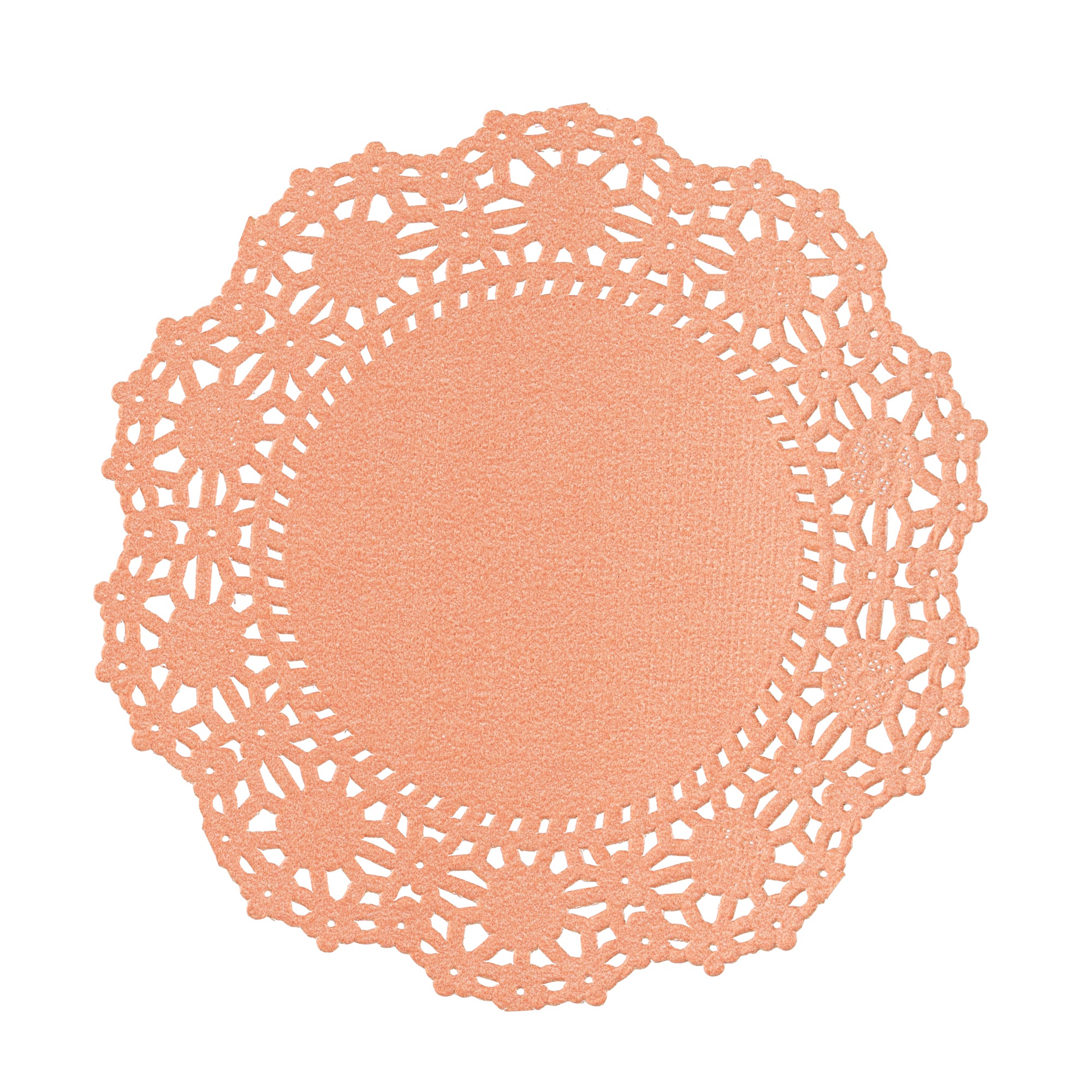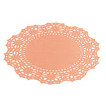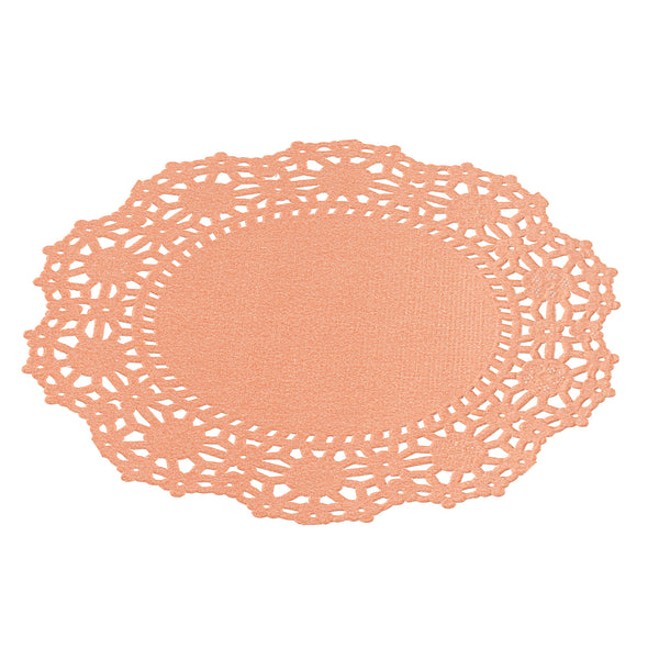 Enhance your dessert displays with our Pastry Tek Round Coral Paper Doilies, adding an elegant touch to any presentation. Crafted from high-quality paper, these lace doilies provide exceptional durability while showcasing desserts at bakeries or catered luncheons without tearing. Featuring intricate lace-like details, these table doilies not only increase the visual appeal of food presentations but also serve as functional barriers by protecting surfaces and absorbing moisture. The versatile coral finish of these colored paper doilies allows them to complement a wide range of table settings and themes, making them perfect for various events and occasions. Designed for convenience, these disposable paper doilies eradicate the hassle of post-event cleanup, offering a time-saving solution for busy hosts and food establishments. Ideal for use under cupcakes, petit fours, macarons, and other small treats, these small doilies provide both functionality and style. Measuring 4 inches in diameter, these lace doilies fit seamlessly into any setup. Sold in a 100 count box.