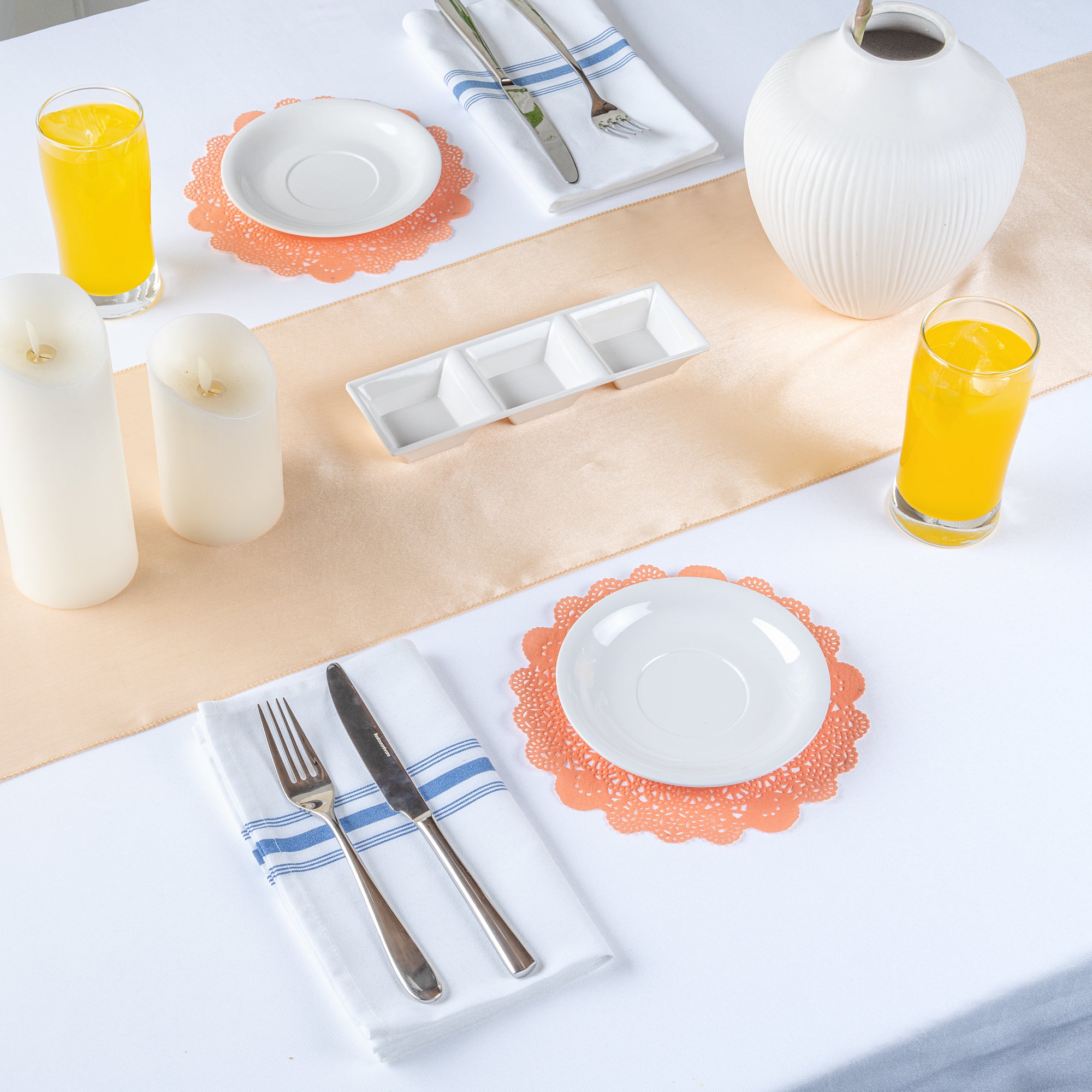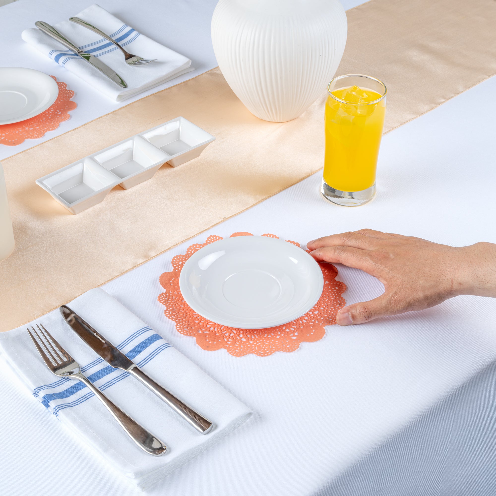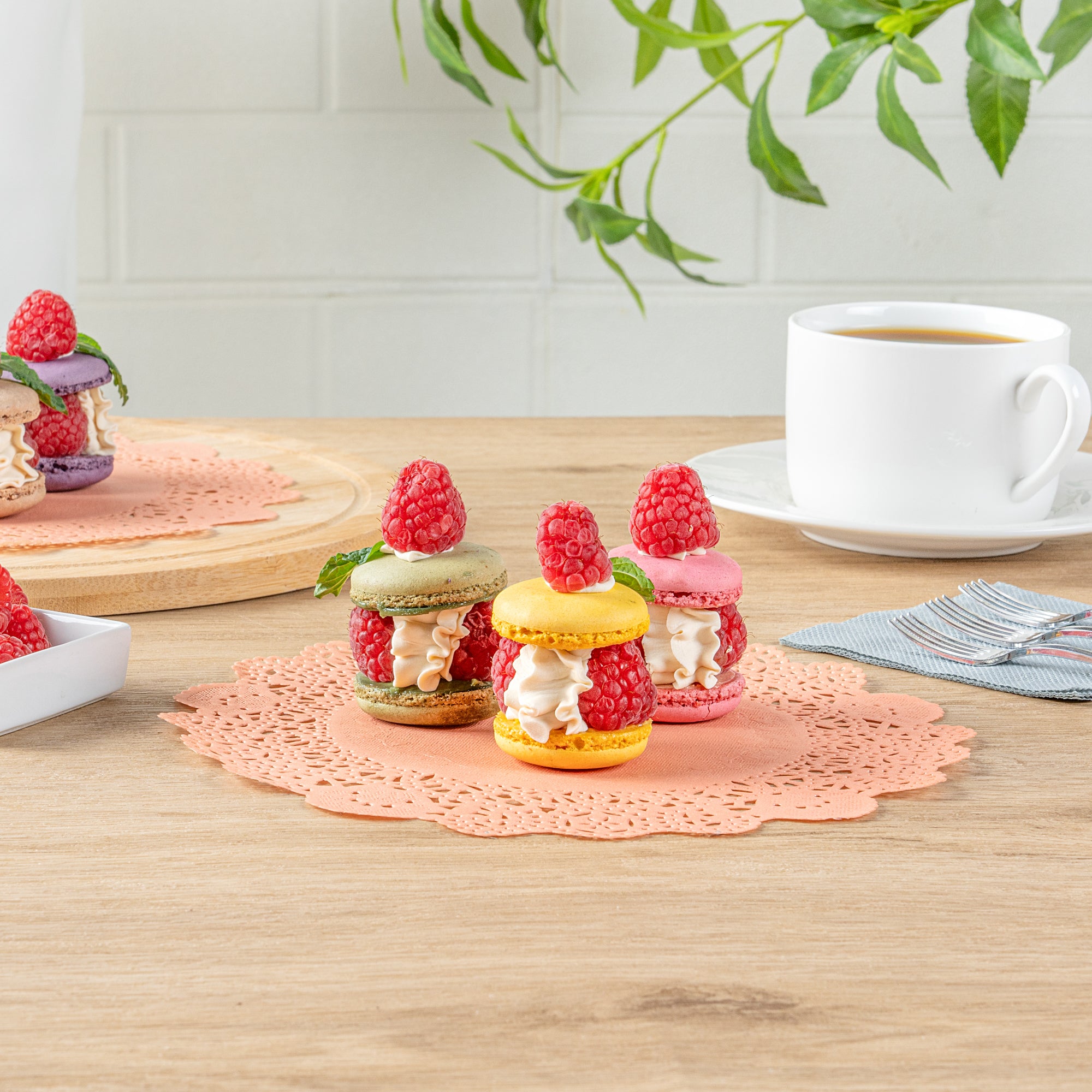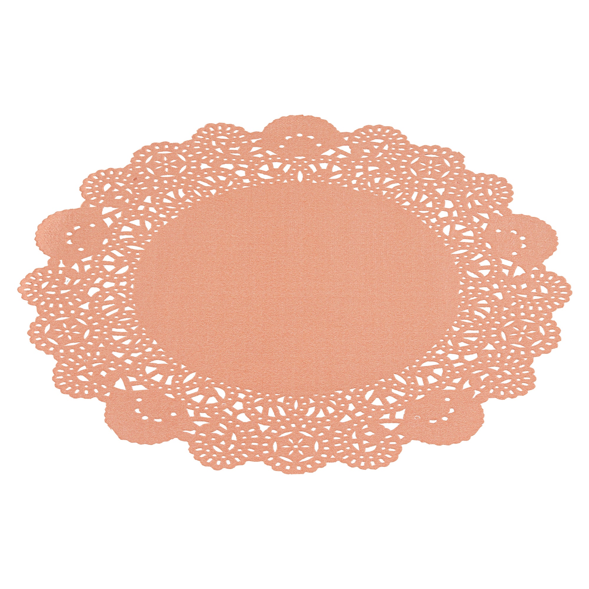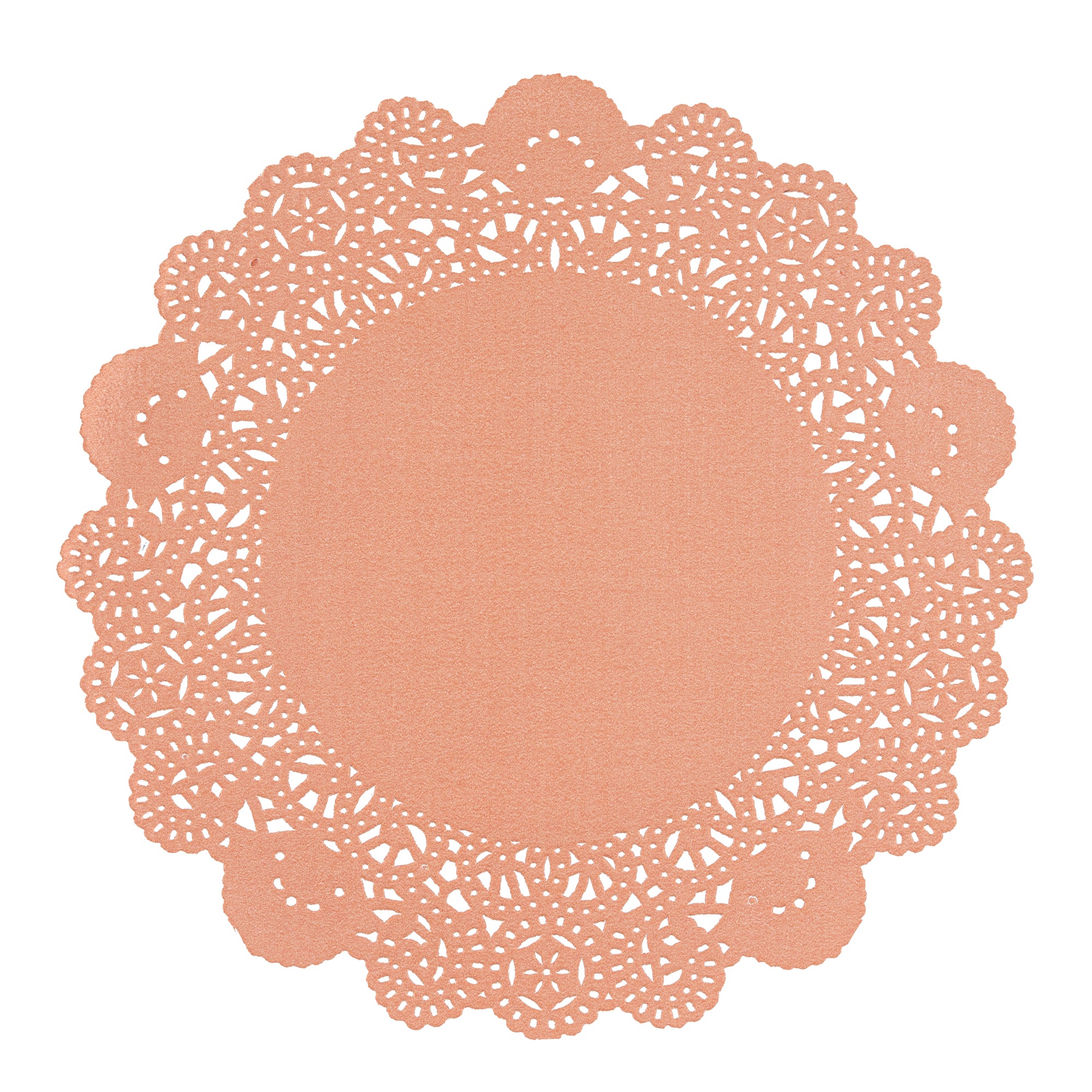 Elevate your dessert displays with our Pastry Tek Round Coral Paper Doilies, perfect for adding an elegant touch to any presentation. Crafted from high-quality paper, these lace doilies provide unparalleled durability, ensuring your desserts remain intact without tearing. Featuring intricate lace-like details, these table doilies not only enhance the visual appeal of your food presentations but also serve as functional barriers, protecting surfaces and absorbing moisture. The coral colored paper doilies complement a wide range of table settings and themes, making them an ideal choice for various events and occasions. These small doilies are disposable, offering a convenient and time-saving solution for busy hosts and food establishments, eliminating the hassle of post-event cleanup. Use these lace doilies under cupcakes, petit fours, macarons, and other small treats to impress your guests. Measuring 8 inches in diameter, these paper doilies fit perfectly into your display settings. Sold in a 100 count box.