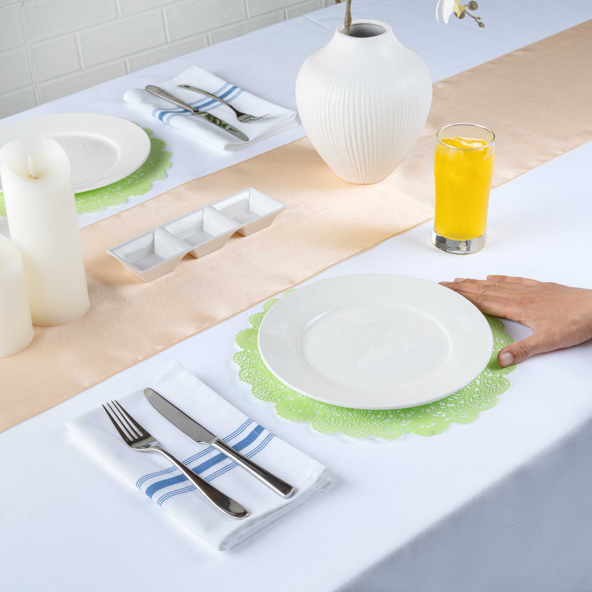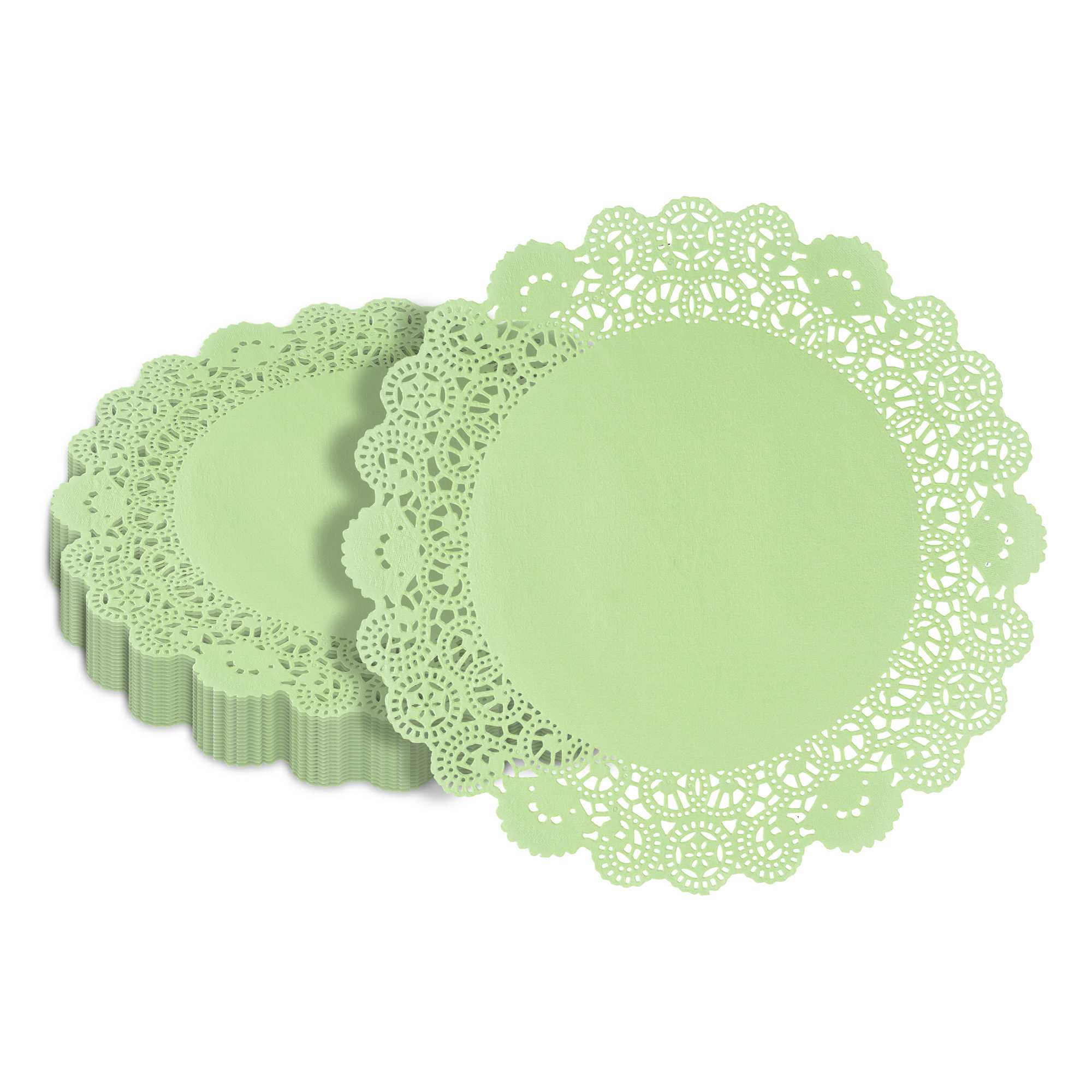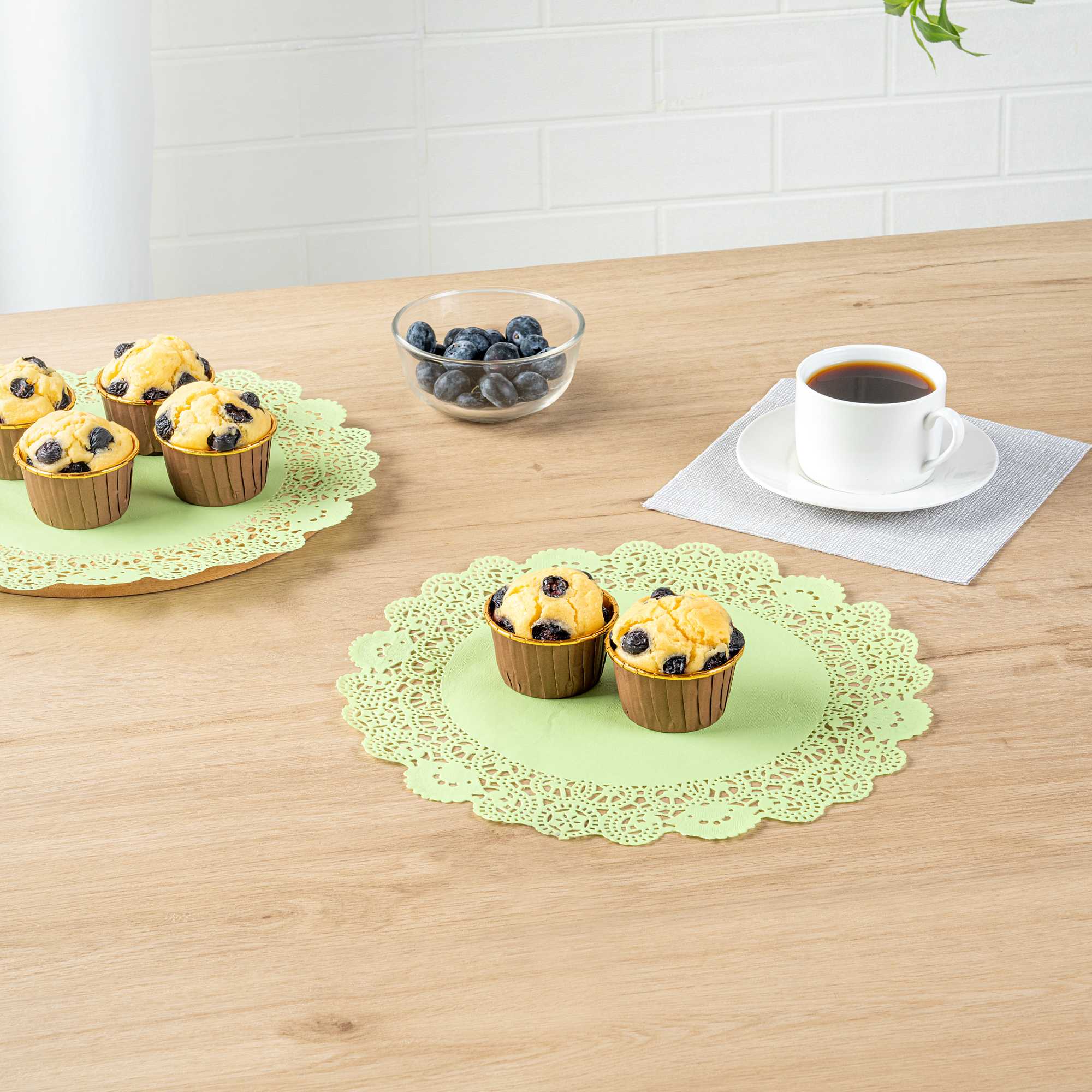 Elevate your dessert displays with our Pastry Tek Round Green Paper Doilies. These paper doilies add an elegant touch to any table setting, making them perfect for showcasing desserts at bakeries or catered luncheons. Crafted from high-quality paper, these table doilies provide durability without tearing or losing their structural integrity. Featuring intricate lace-like details, these lace doilies not only increase the visual appeal of food presentations but also serve as functional barriers by protecting surfaces and absorbing moisture. The green colored finish of these doilies is versatile, allowing them to complement a wide range of table settings and themes, making them an ideal choice for various events and occasions. With their disposable nature, these colored paper doilies eradicate the hassle of post-event cleanup, offering a convenient and time-saving solution for busy hosts and food establishments. Measuring 12 inches in diameter, these small doilies can be used under cupcakes, petit fours, macarons, and other small treats. Sold in a 4,000 count box.