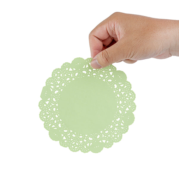 ROUND GREEN PAPER DOILIES - LACE